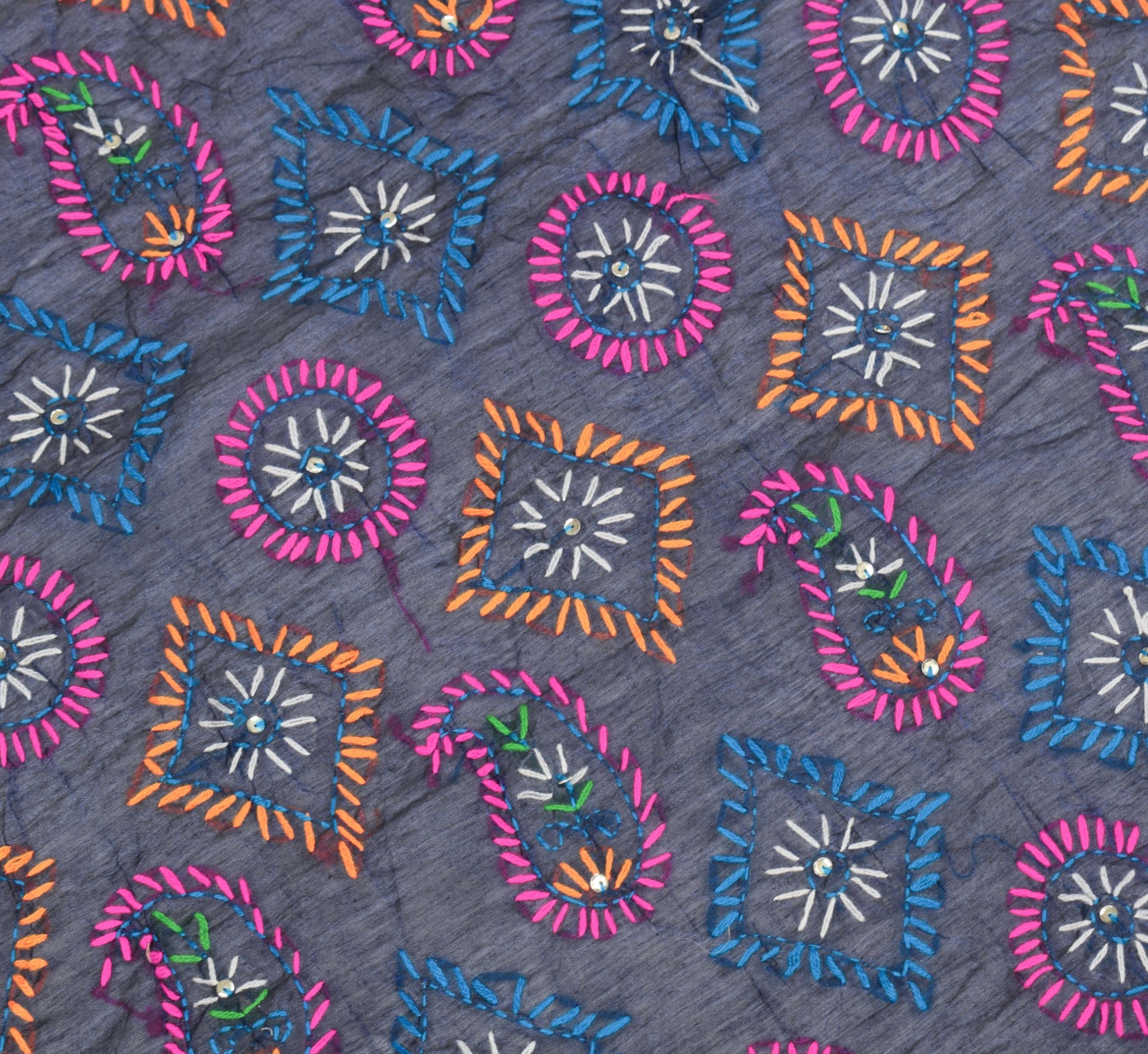 Sushila Vintage Dark Blue Dupatta Art Silk Handmade Phulkari OOAK Long Stole