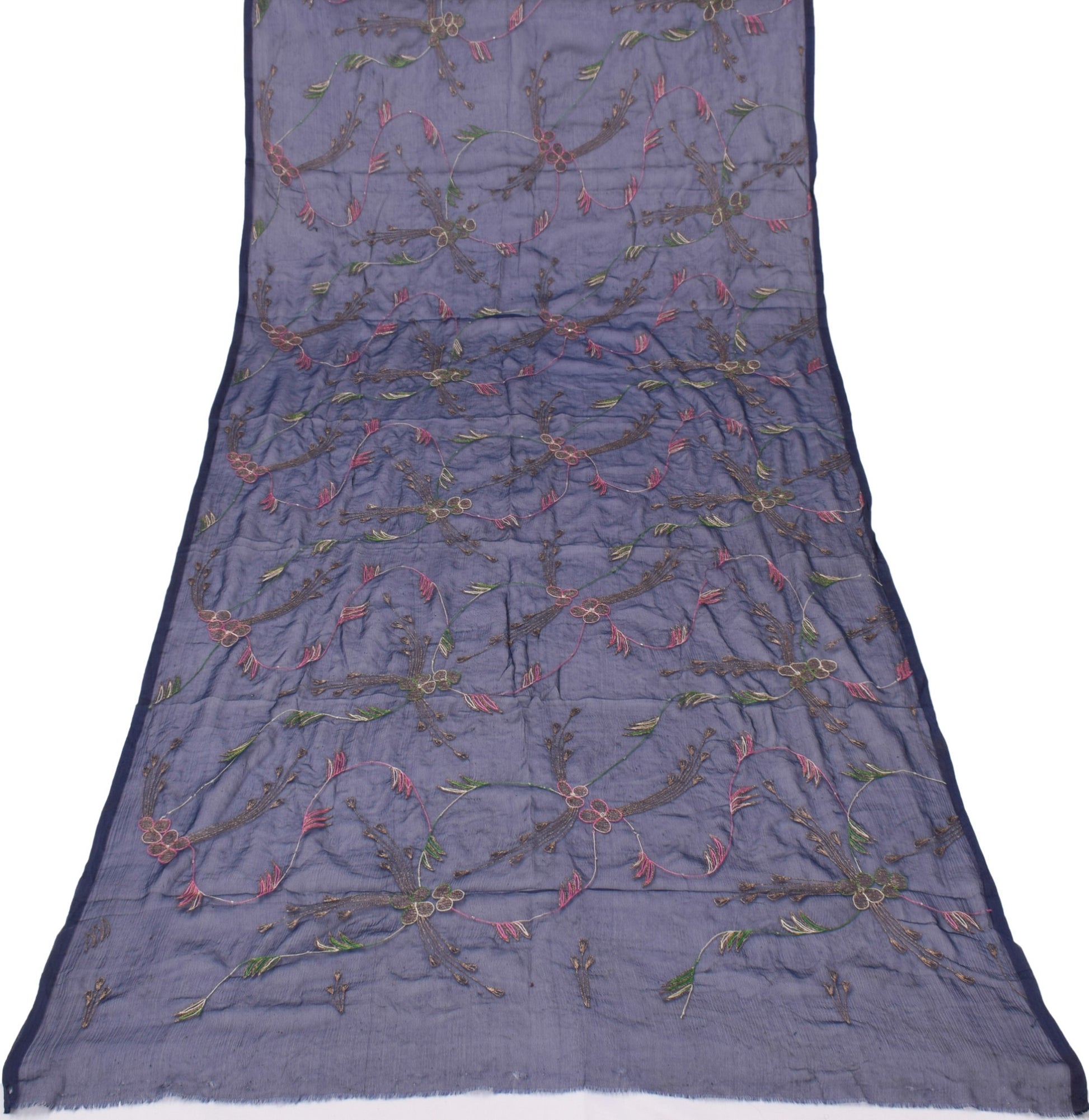 Sushila Vintage Dark Blue Dupatta Blend Chiffon Silk Embroidered Long Stole Veil