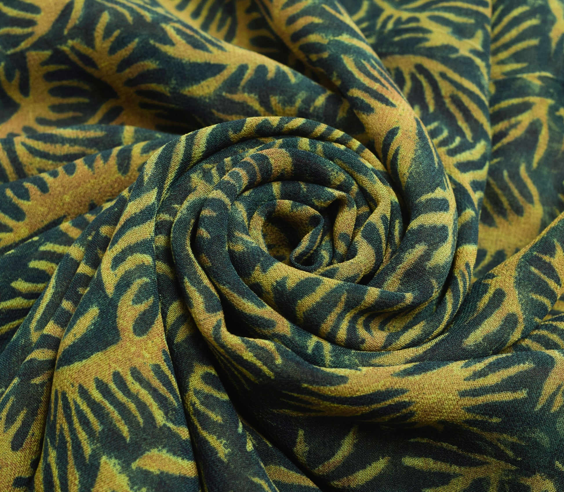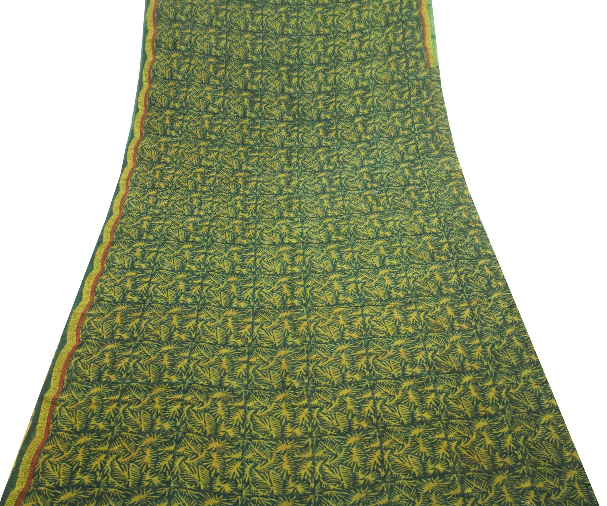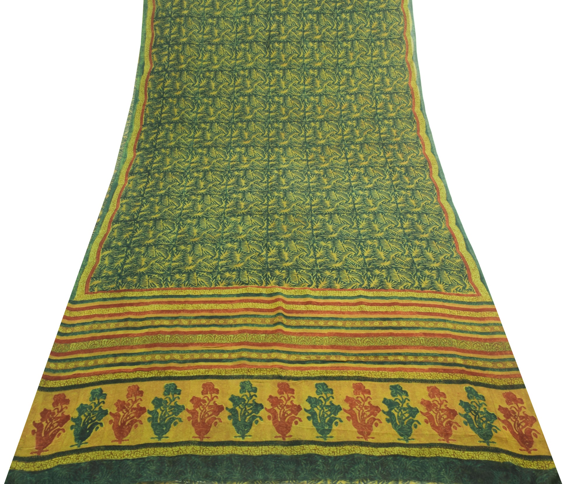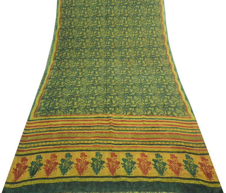 Sushila Vintage Dark Green Saree 100% Pure Georgette Silk Printed Craft Fabric