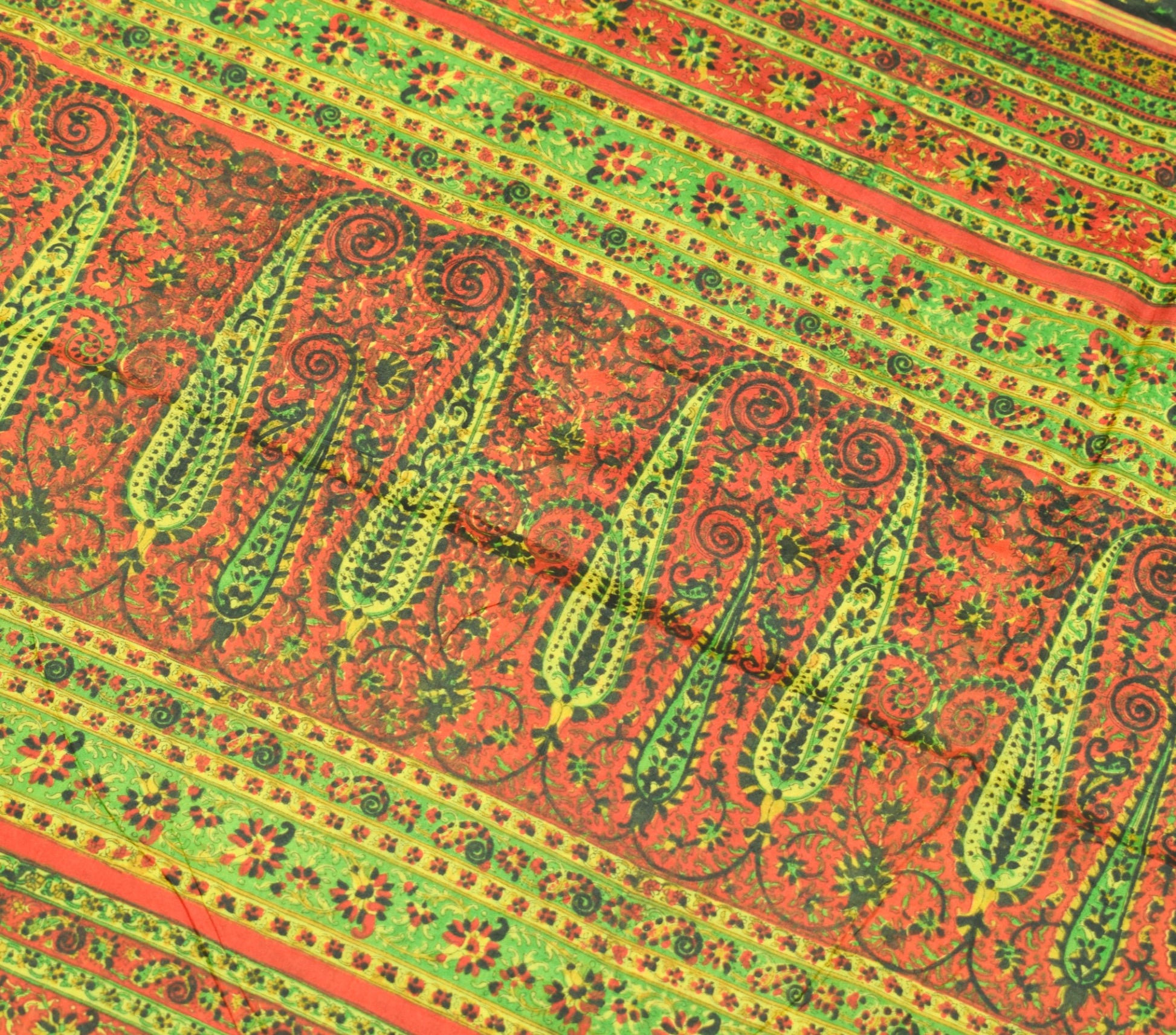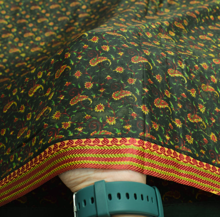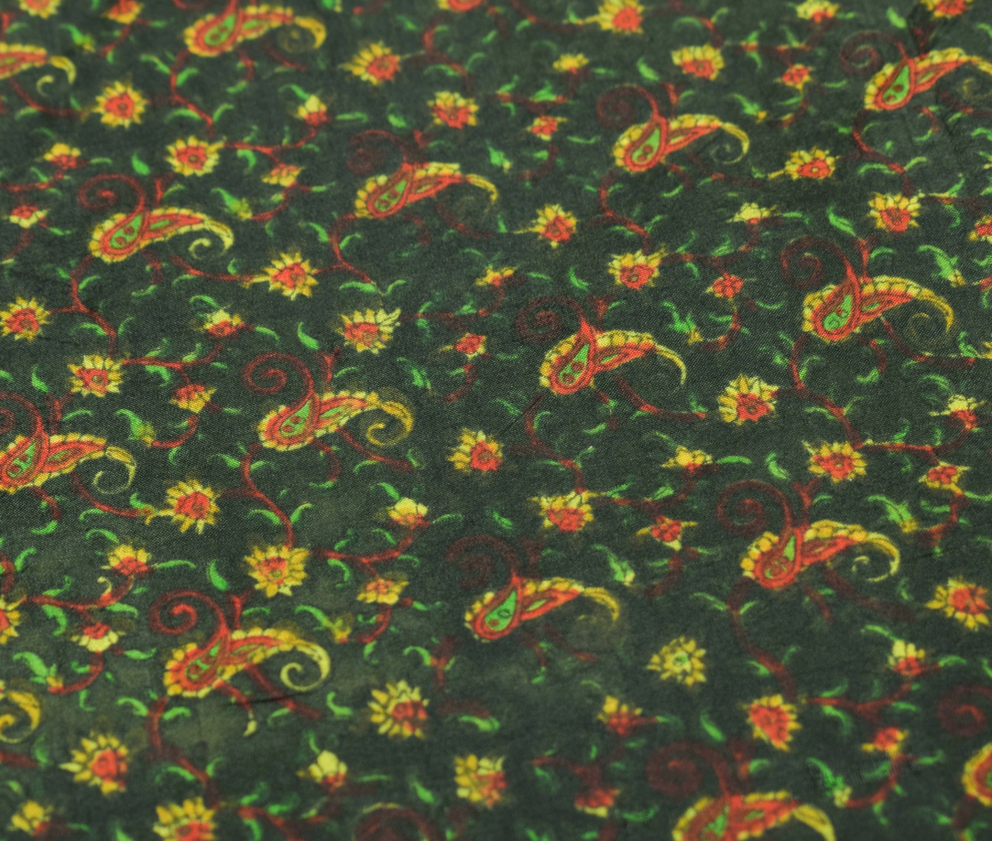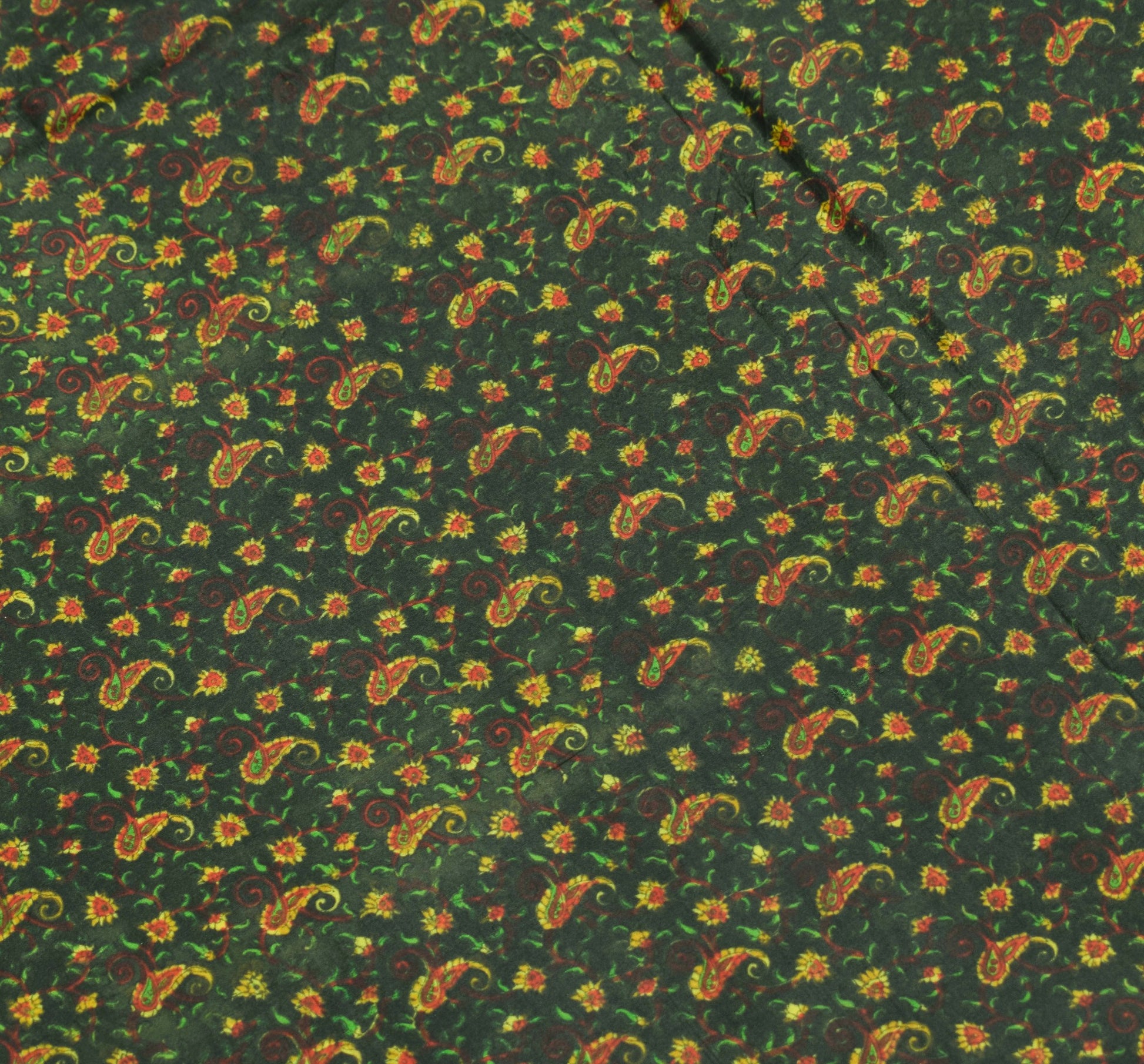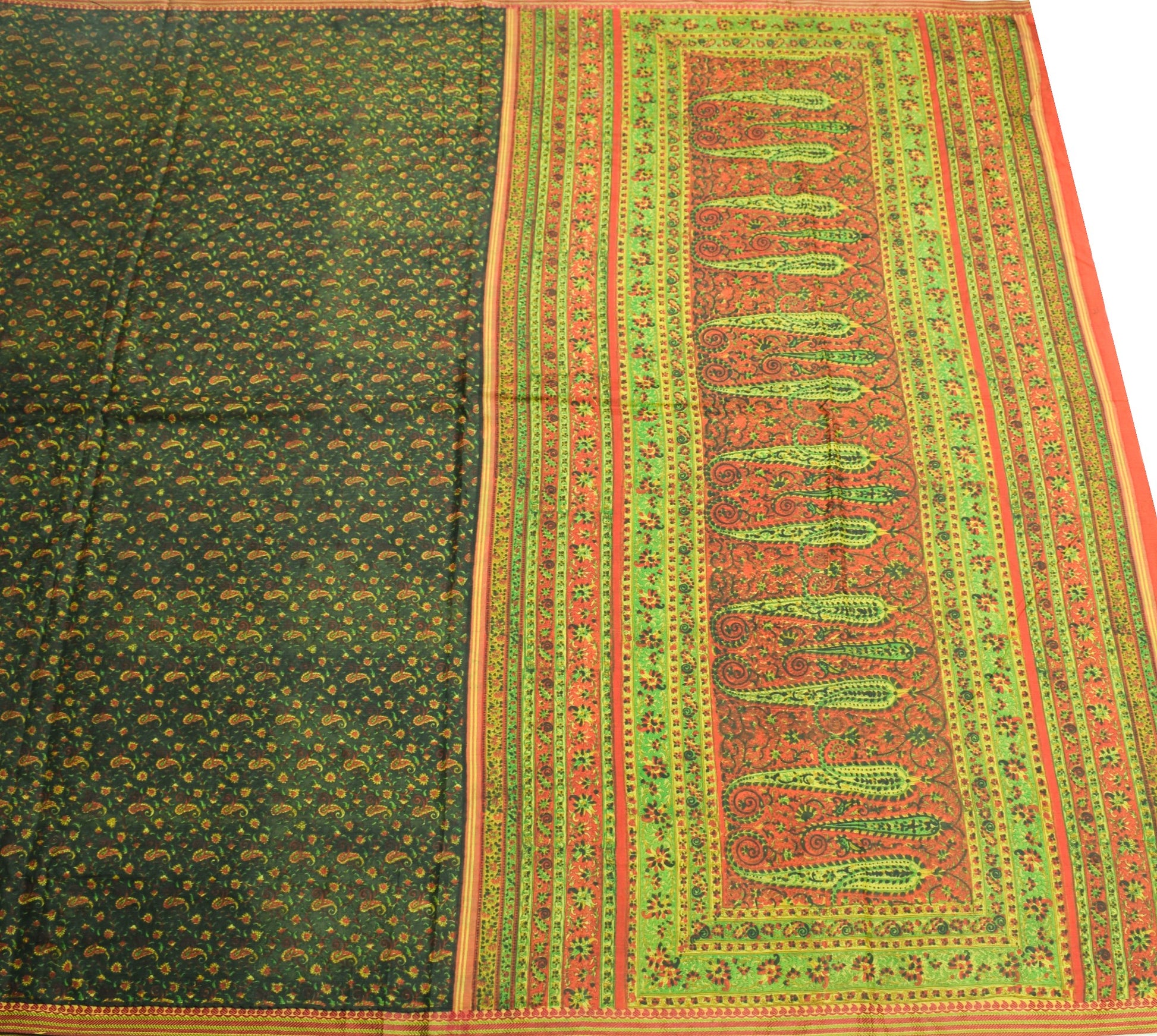 Sushila Vintage Dark Green Saree 100%Pure Silk Printed Paisley Soft Craft Fabric