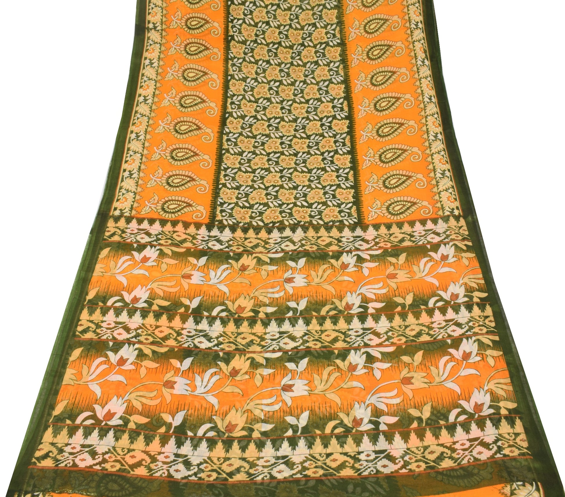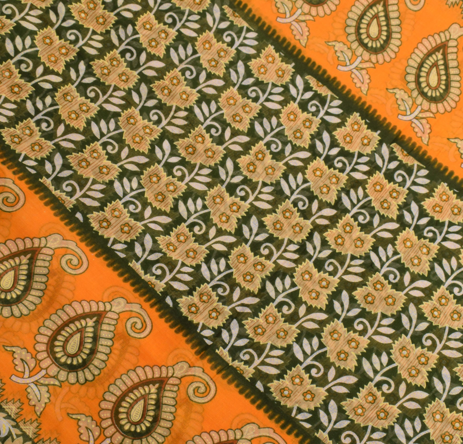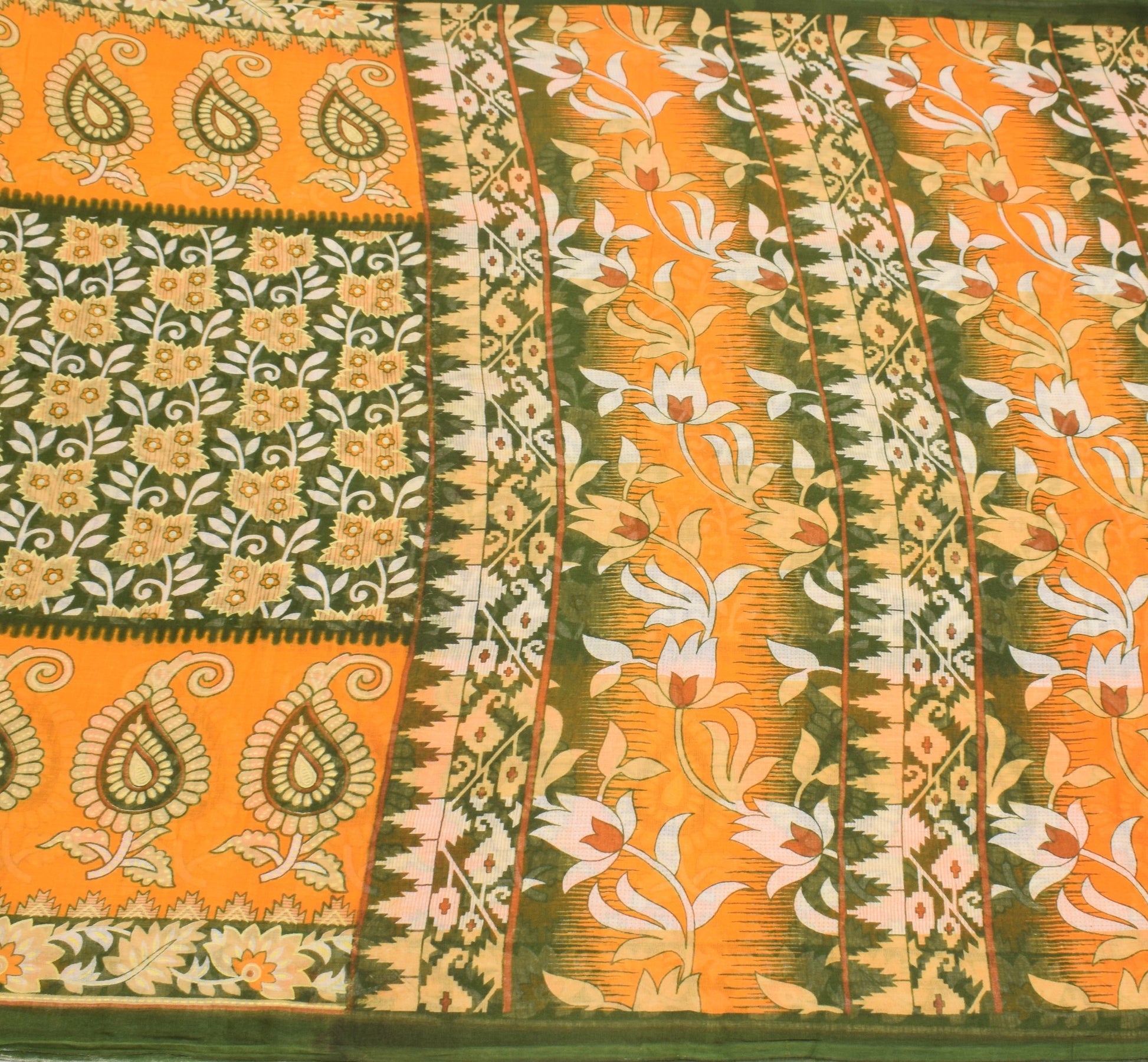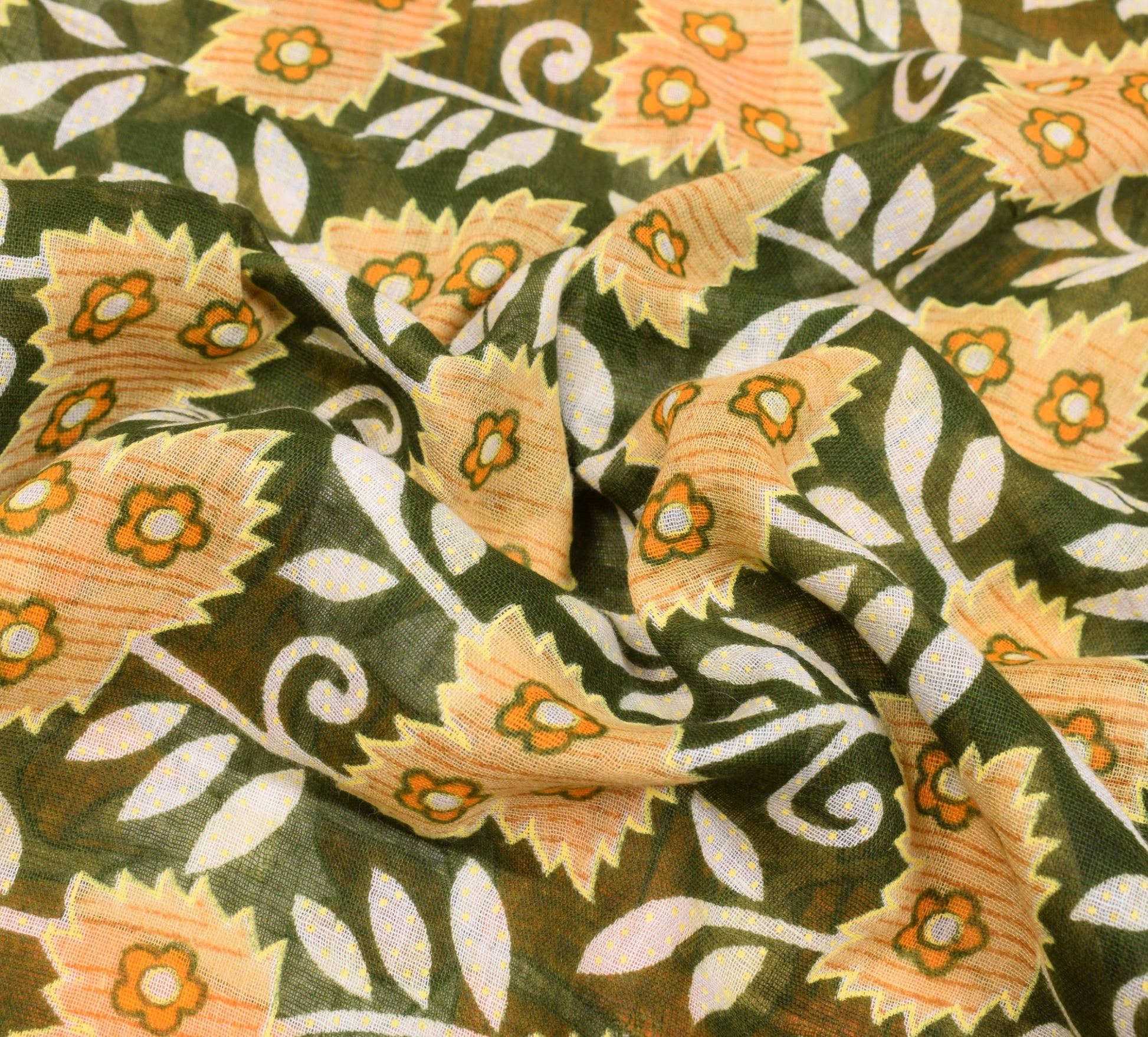 Sushila Vintage Dark Green Saree Floral Pure Cotton Printed Soft Craft Fabric