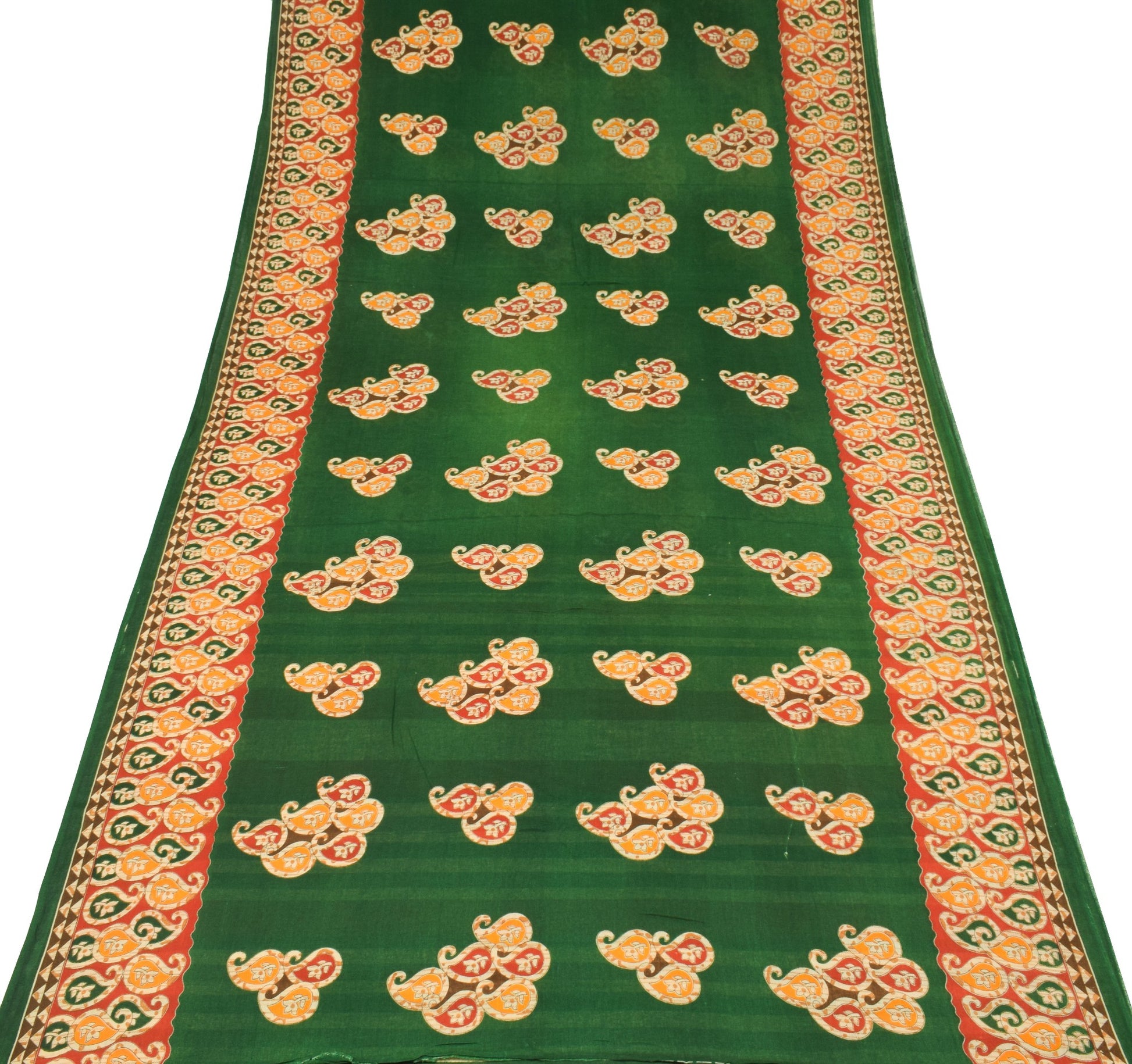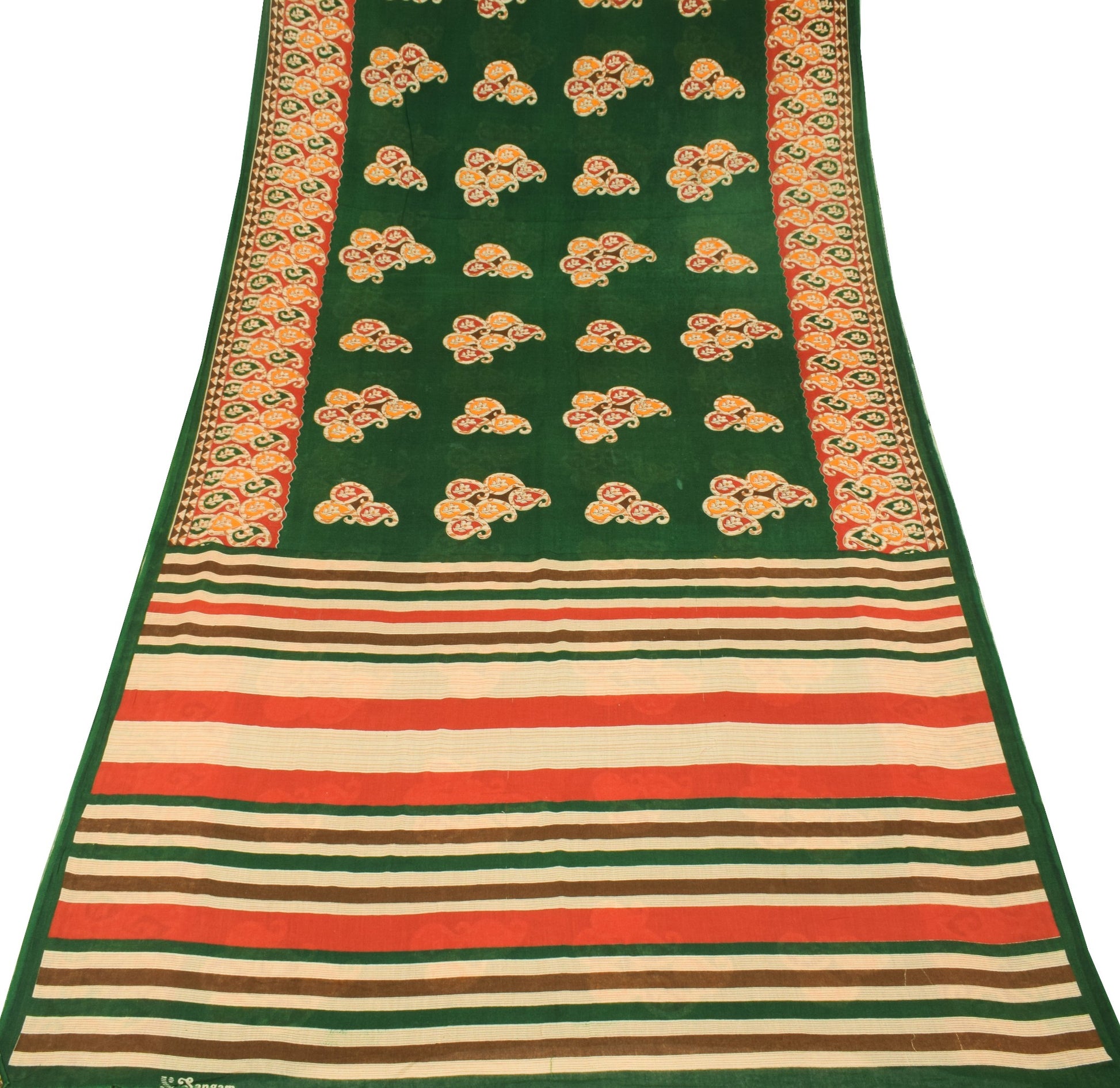 Sushila Vintage Dark Green Saree Pure Cotton Printed Soft Paisley Craft Fabric