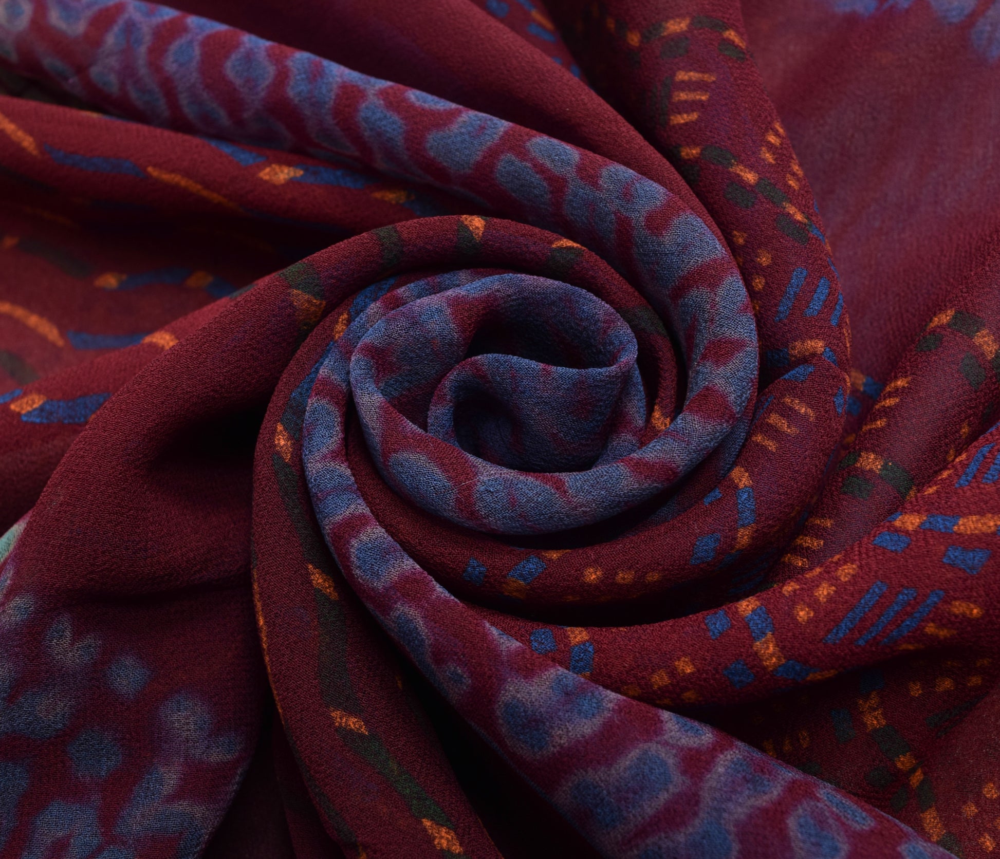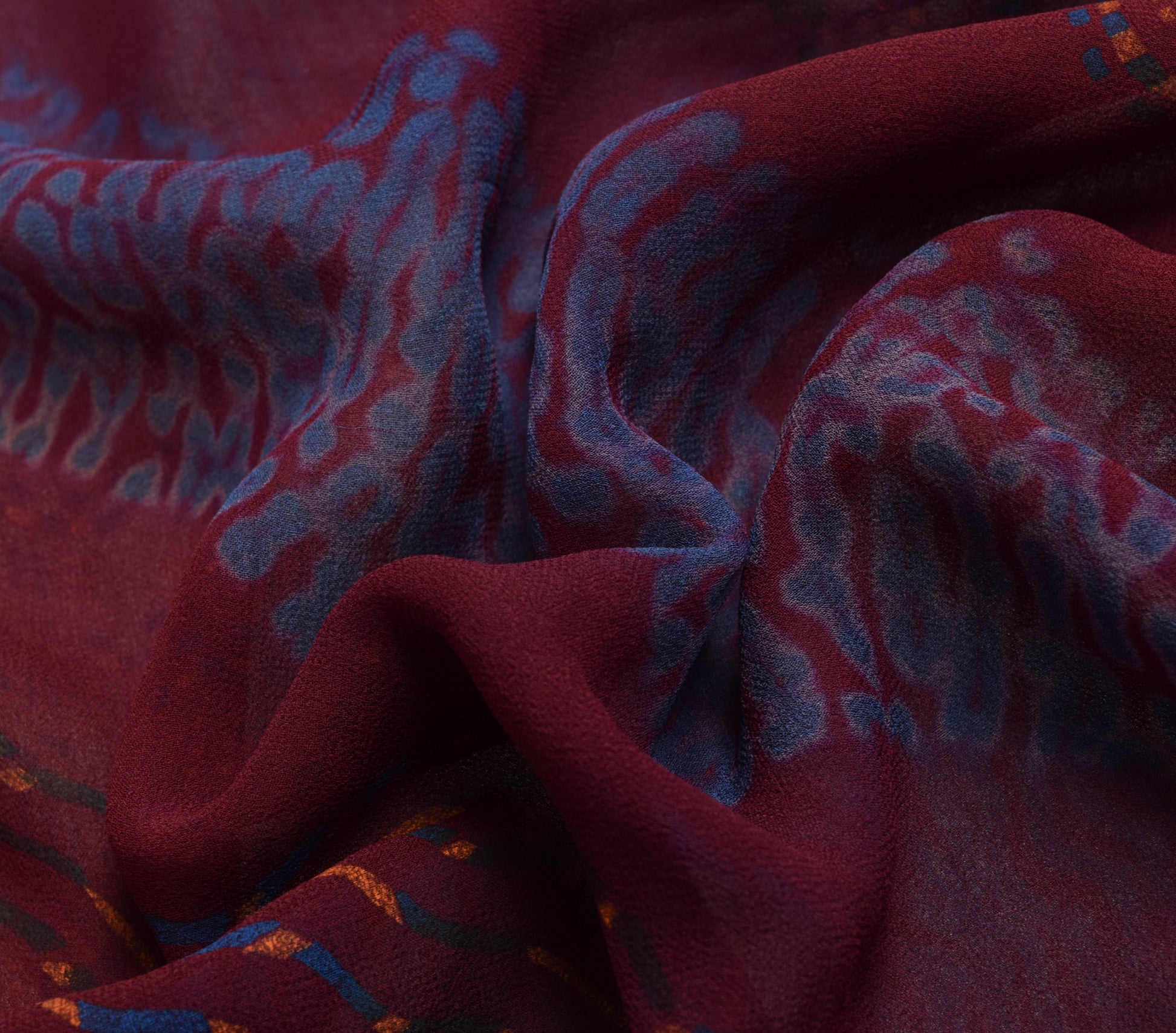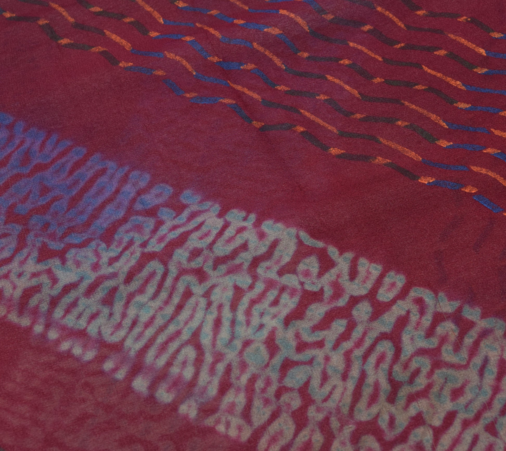 Sushila Vintage Dark Maroon Saree 100% Pure Georgette Silk Printed Craft Fabric