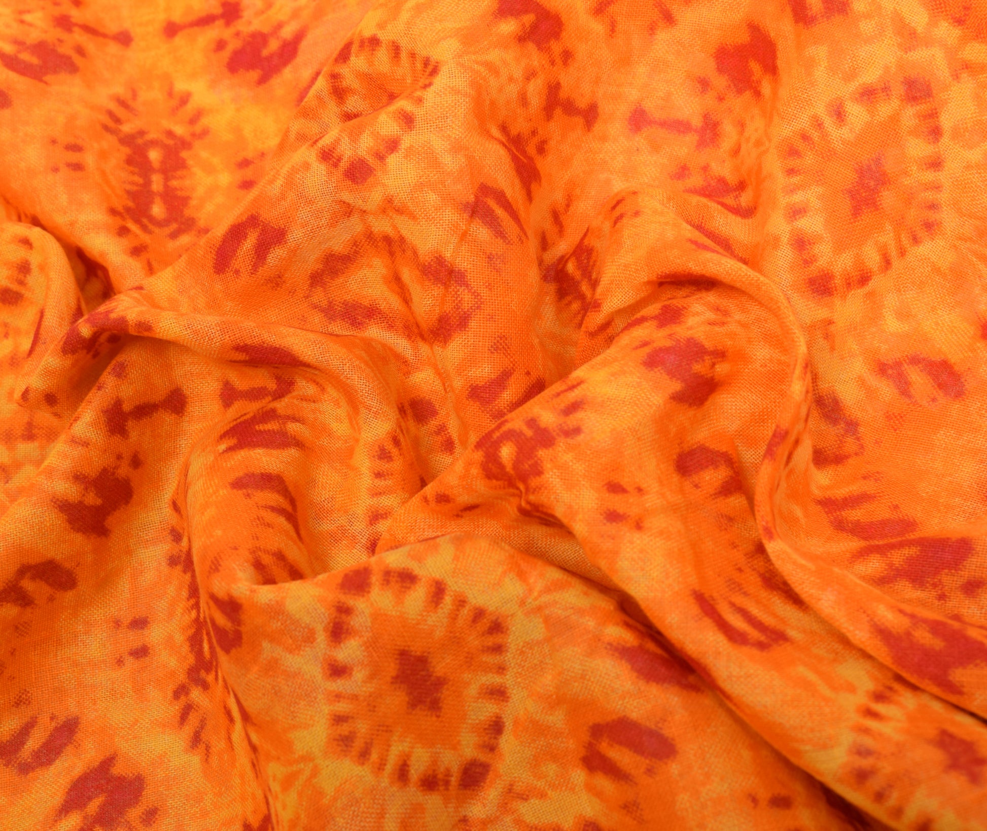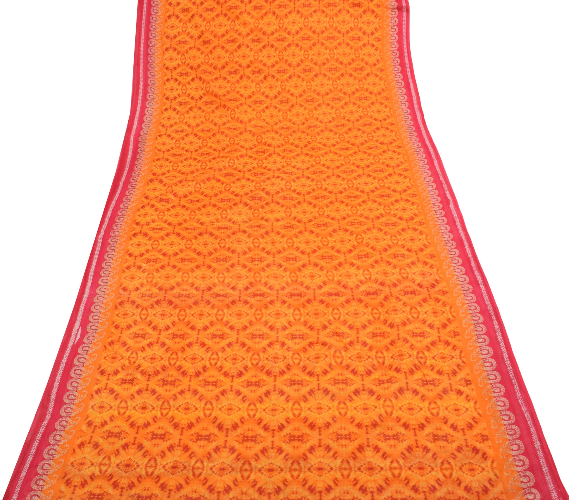 Sushila Vintage Dark Orange Indian Saree 100% Pure Cotton Printed Craft Fabric