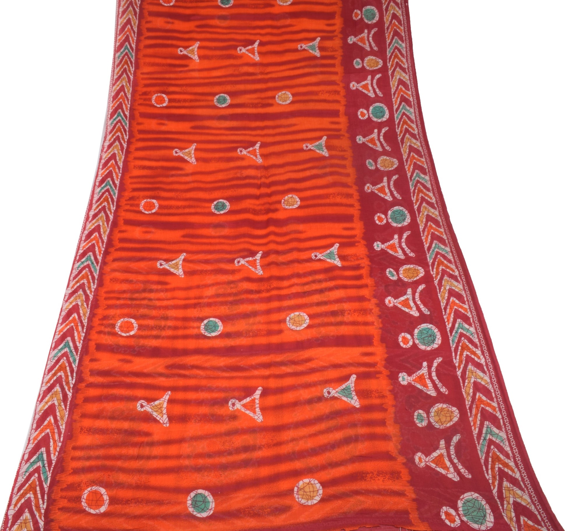 Sushila Vintage Dark Orange Saree 100% Pure Cotton Printed 5YD Soft Craft Fabric