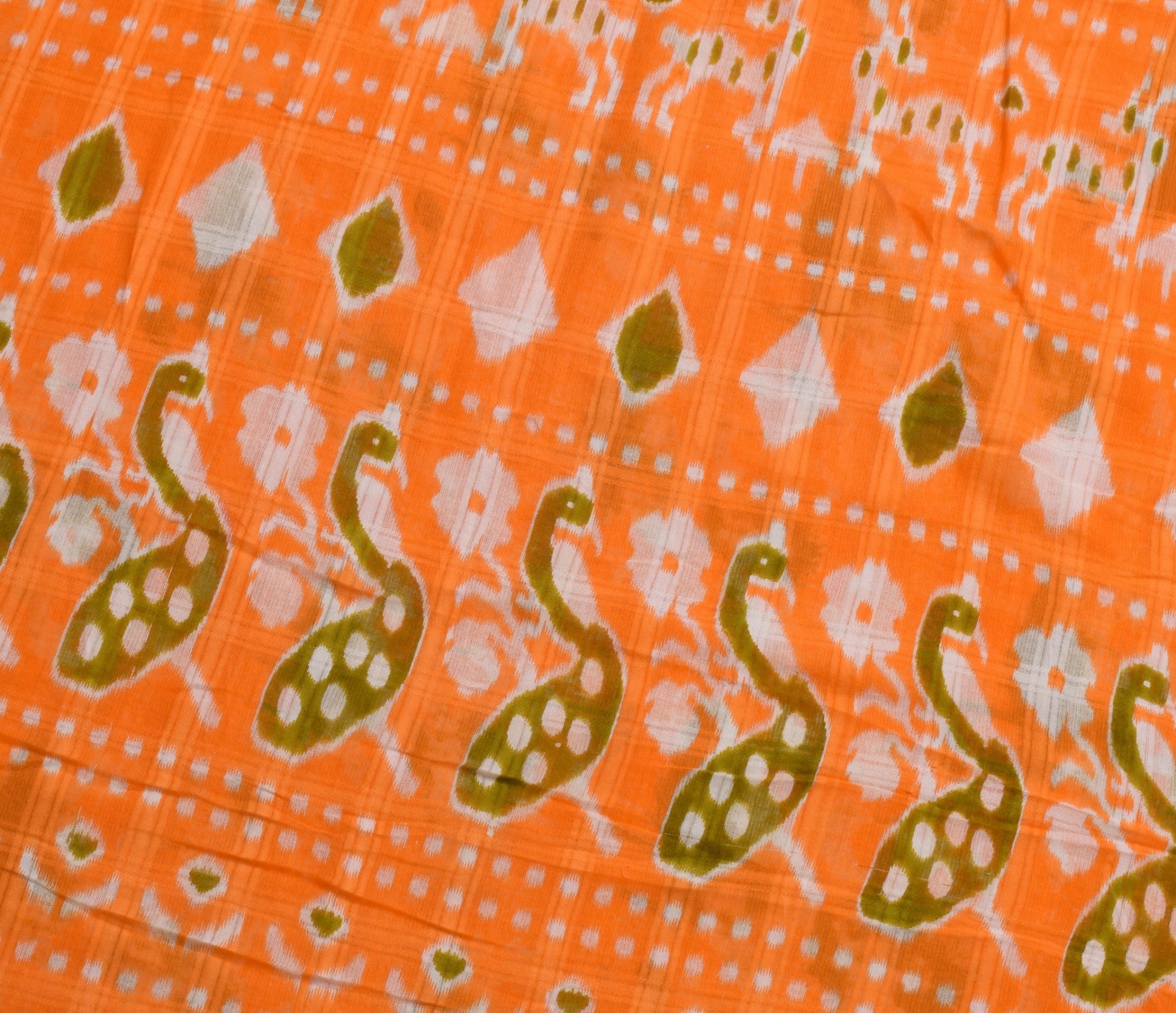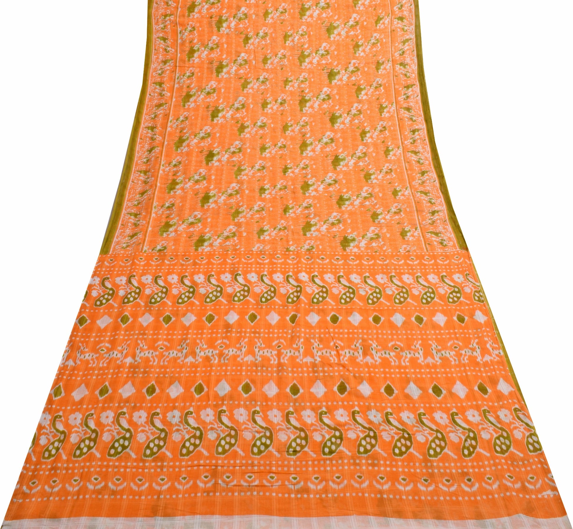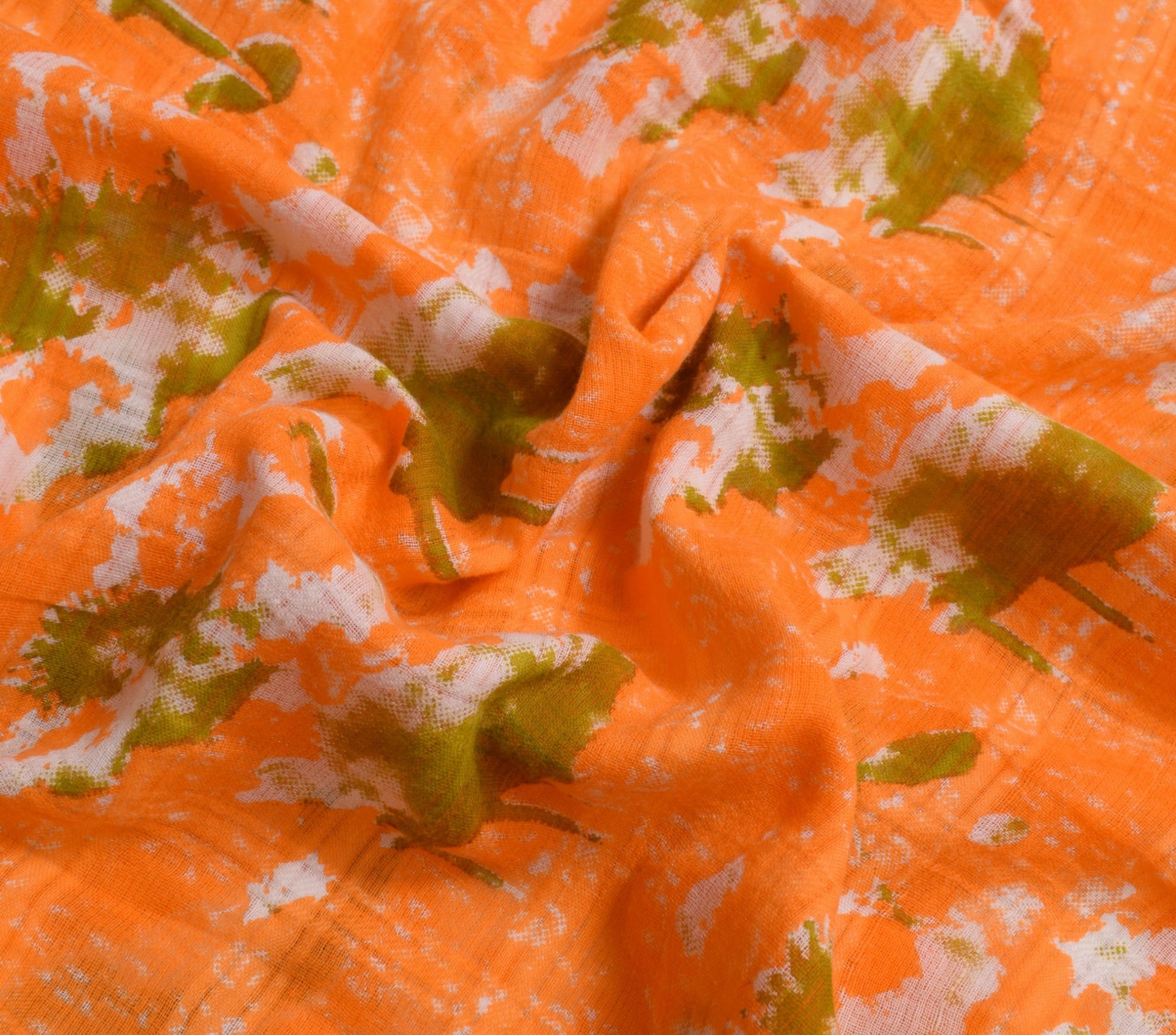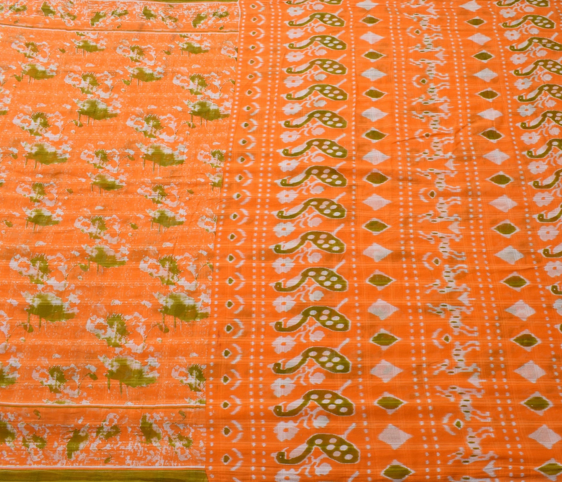 Sushila Vintage Dark Orange Saree 100% Pure Cotton Printed Soft Craft Fabric