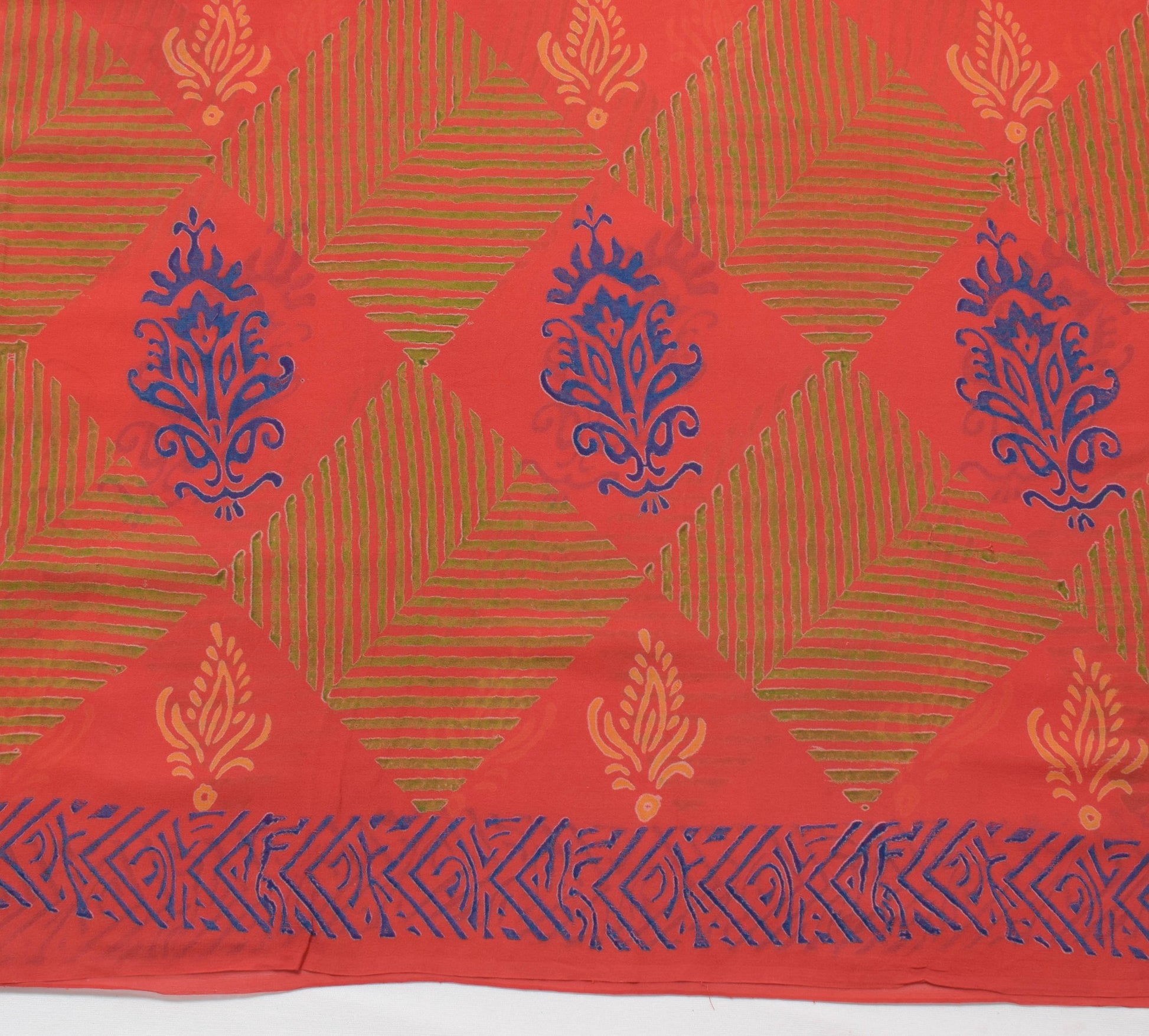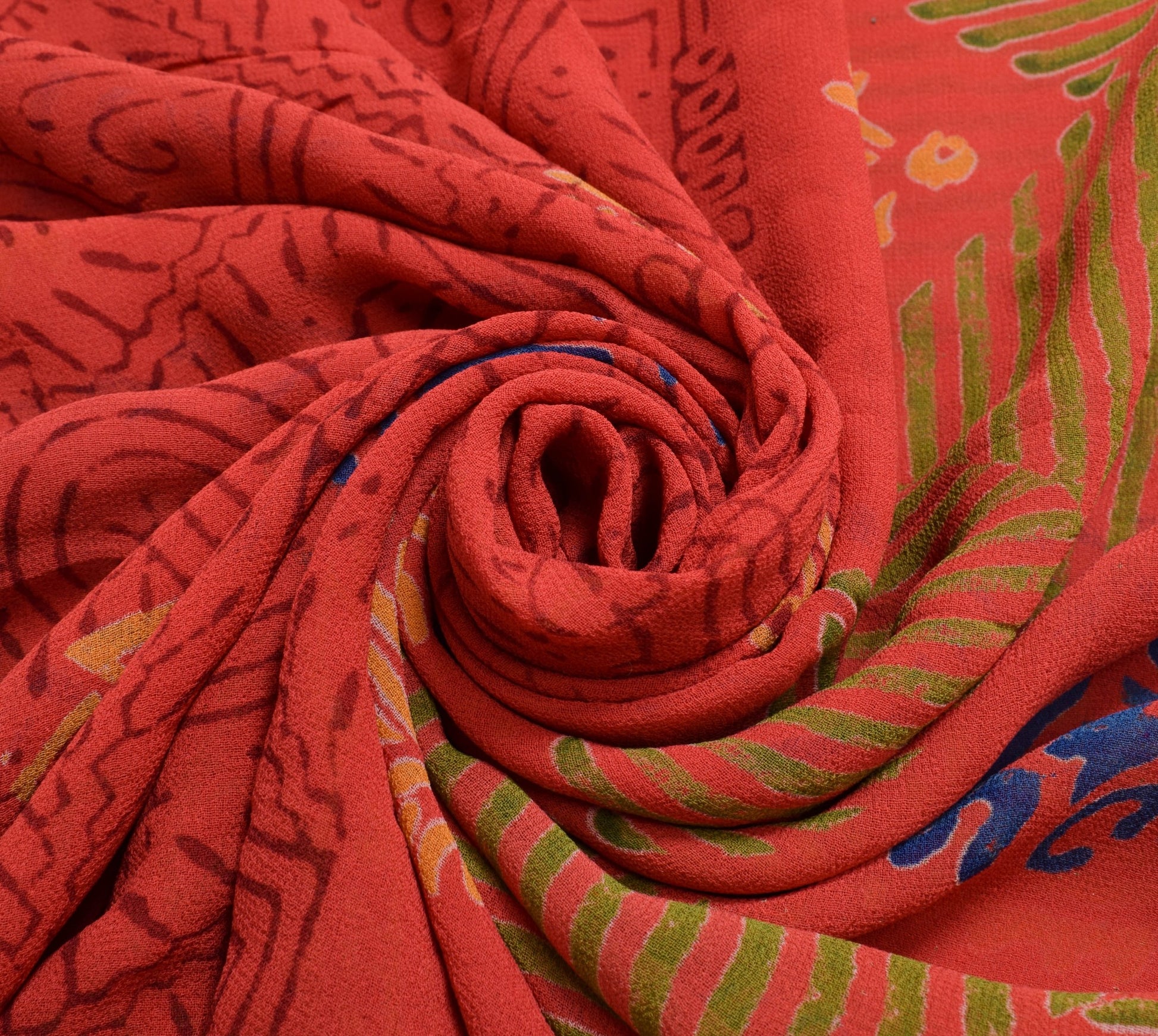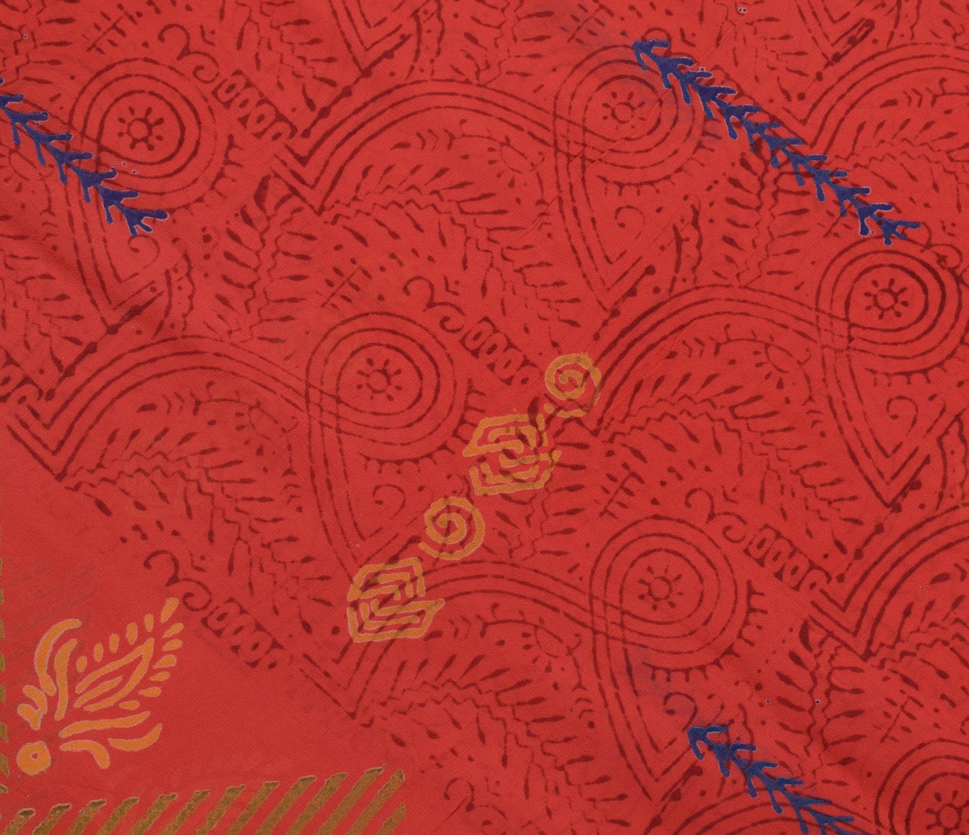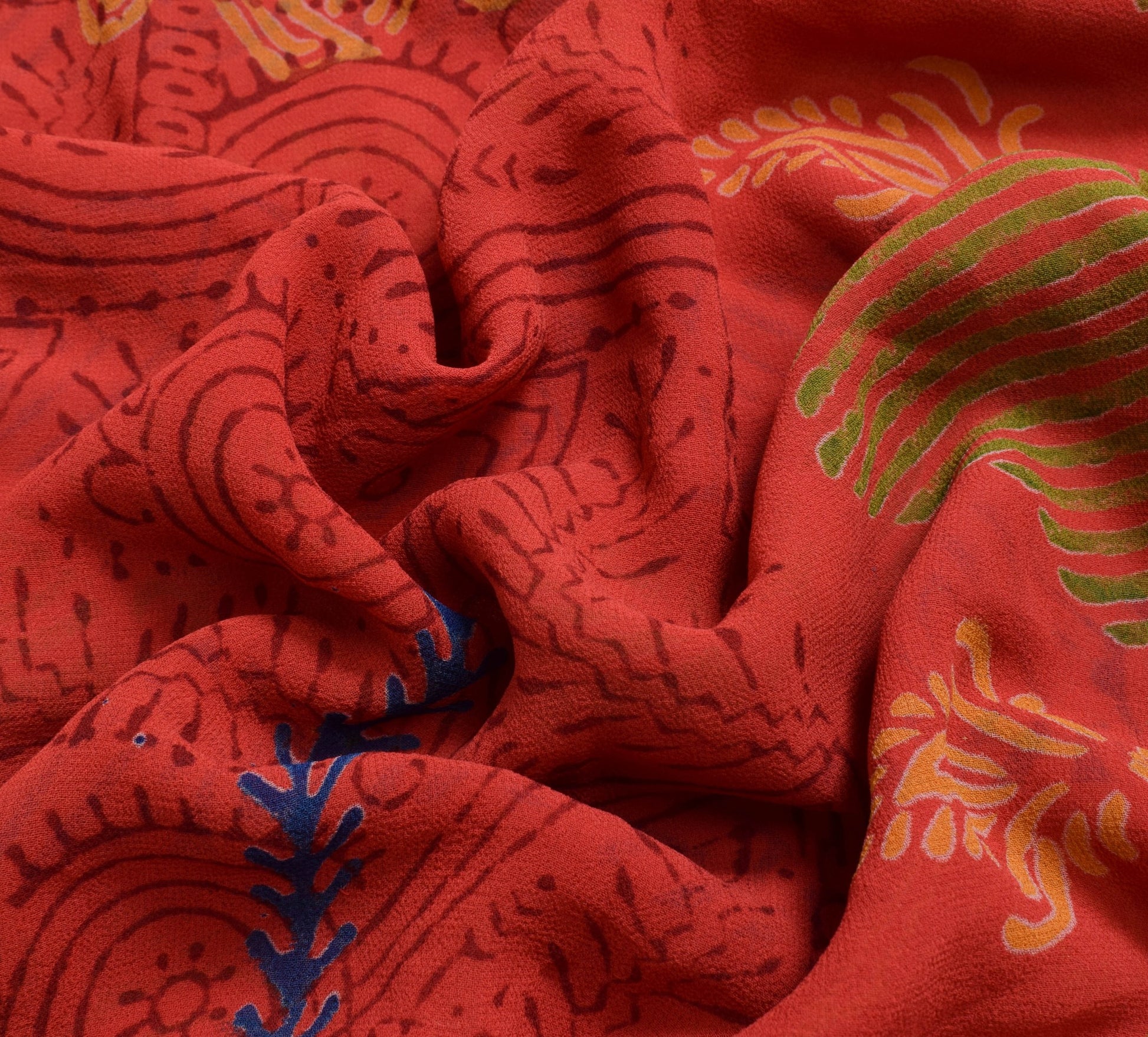 Sushila Vintage Dark Orange Saree 100% Pure Georgette Silk Printed Craft Fabric