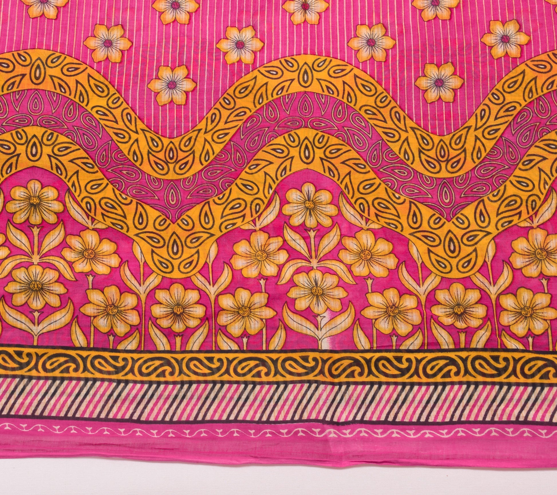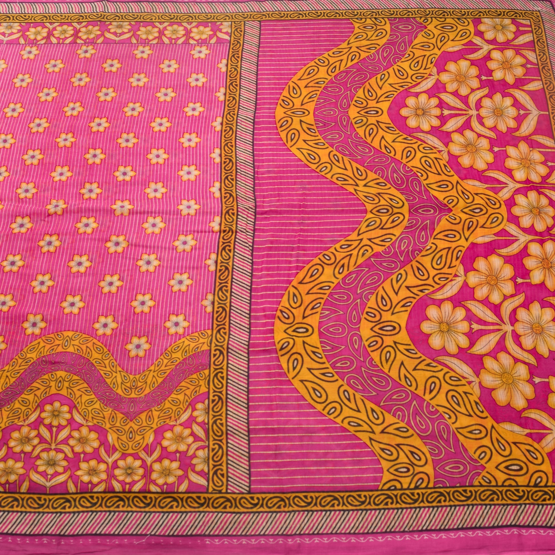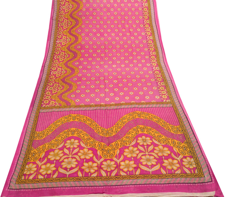 Sushila Vintage Dark Pink Saree 100%Pure Cotton Printed Floral Soft Craft Fabric