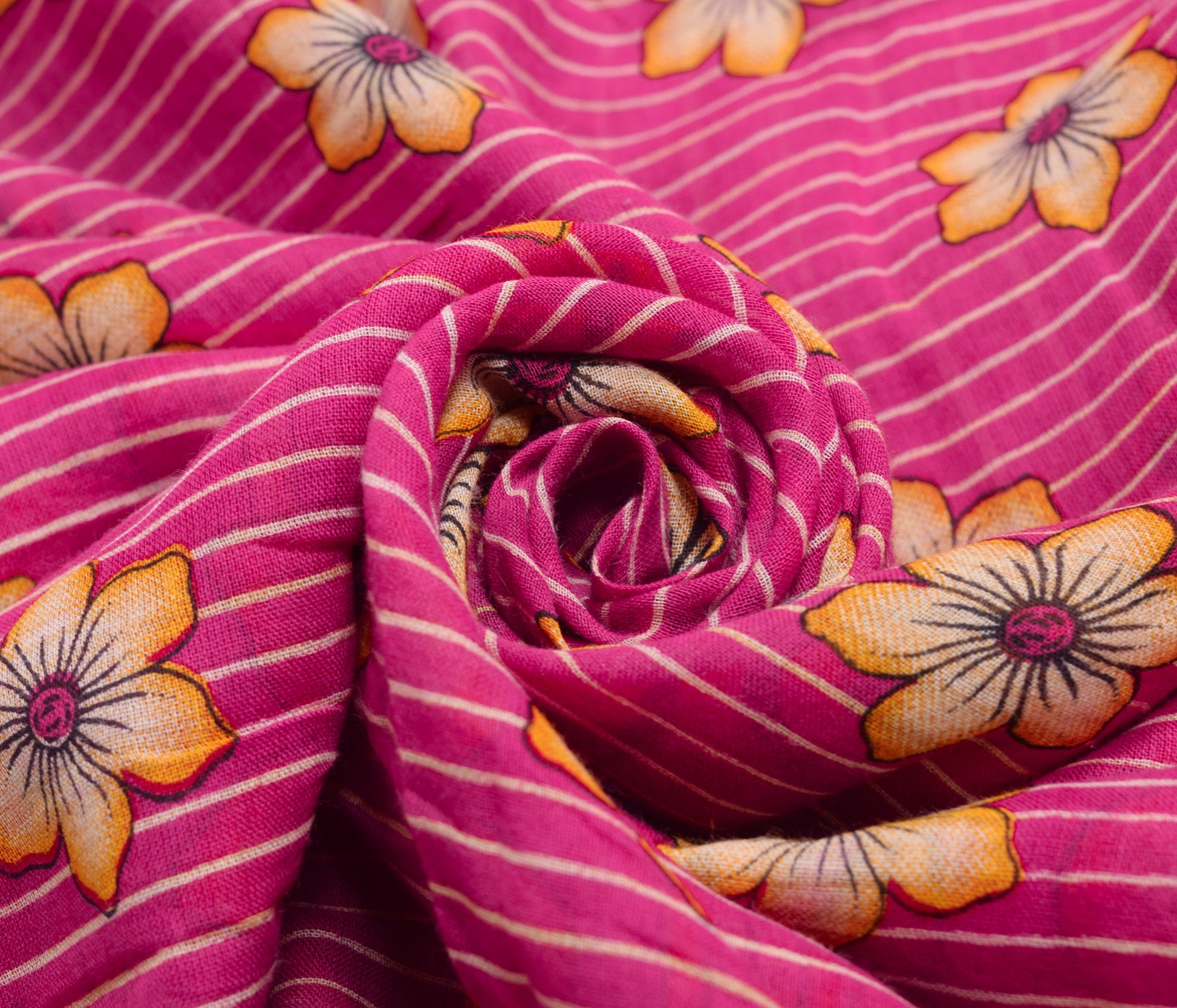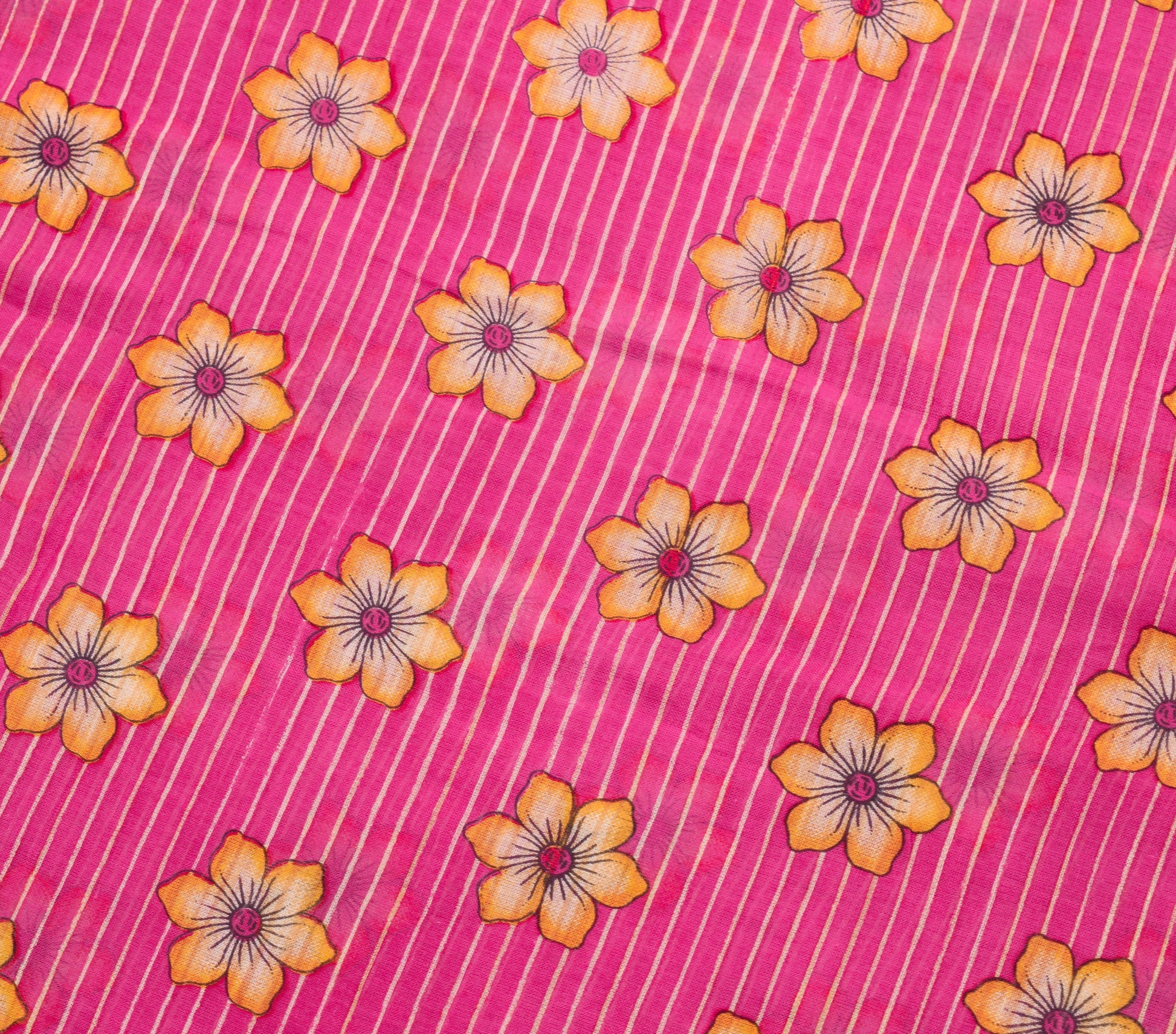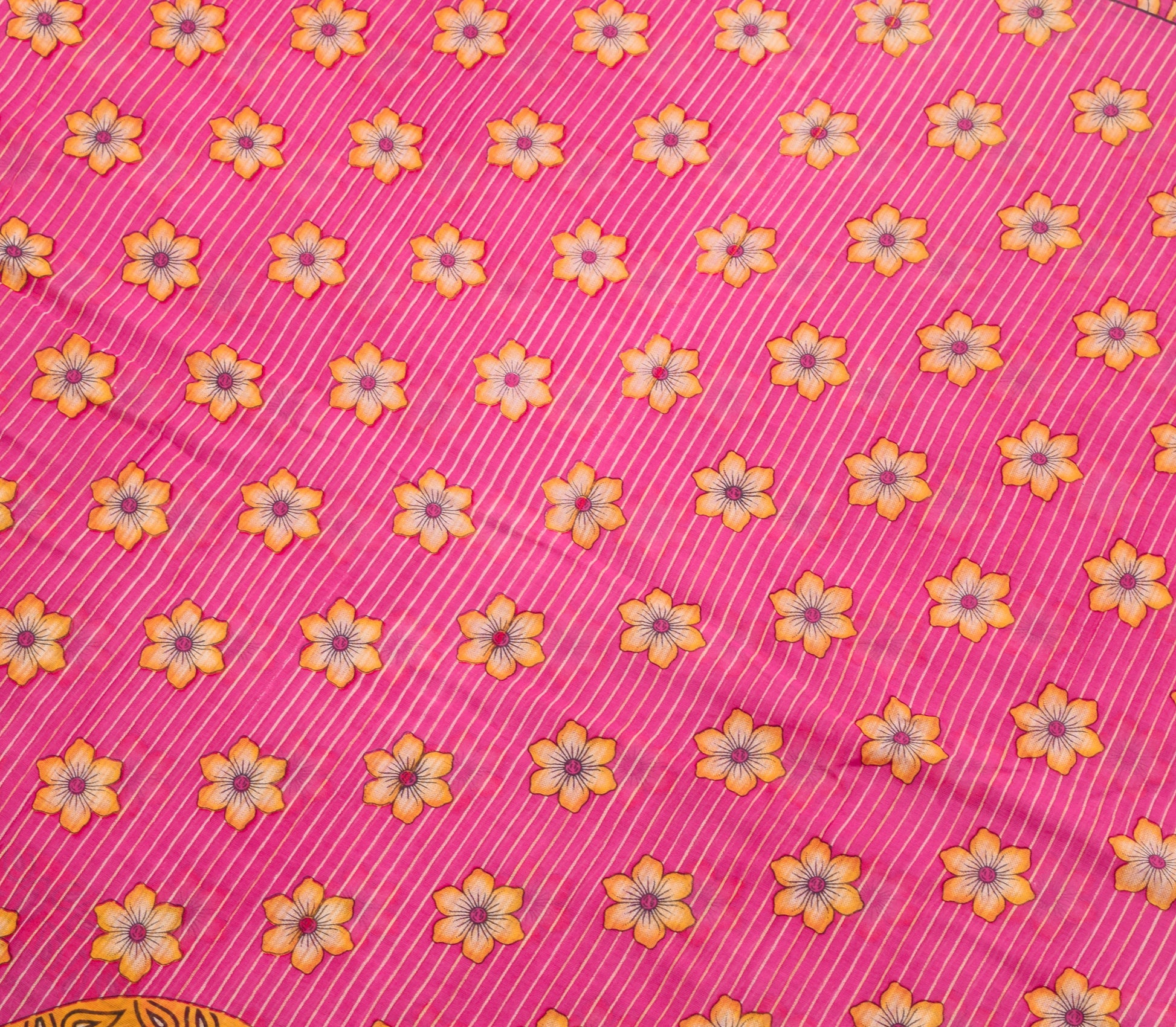 Sushila Vintage Dark Pink Saree 100%Pure Cotton Printed Floral Soft Craft Fabric