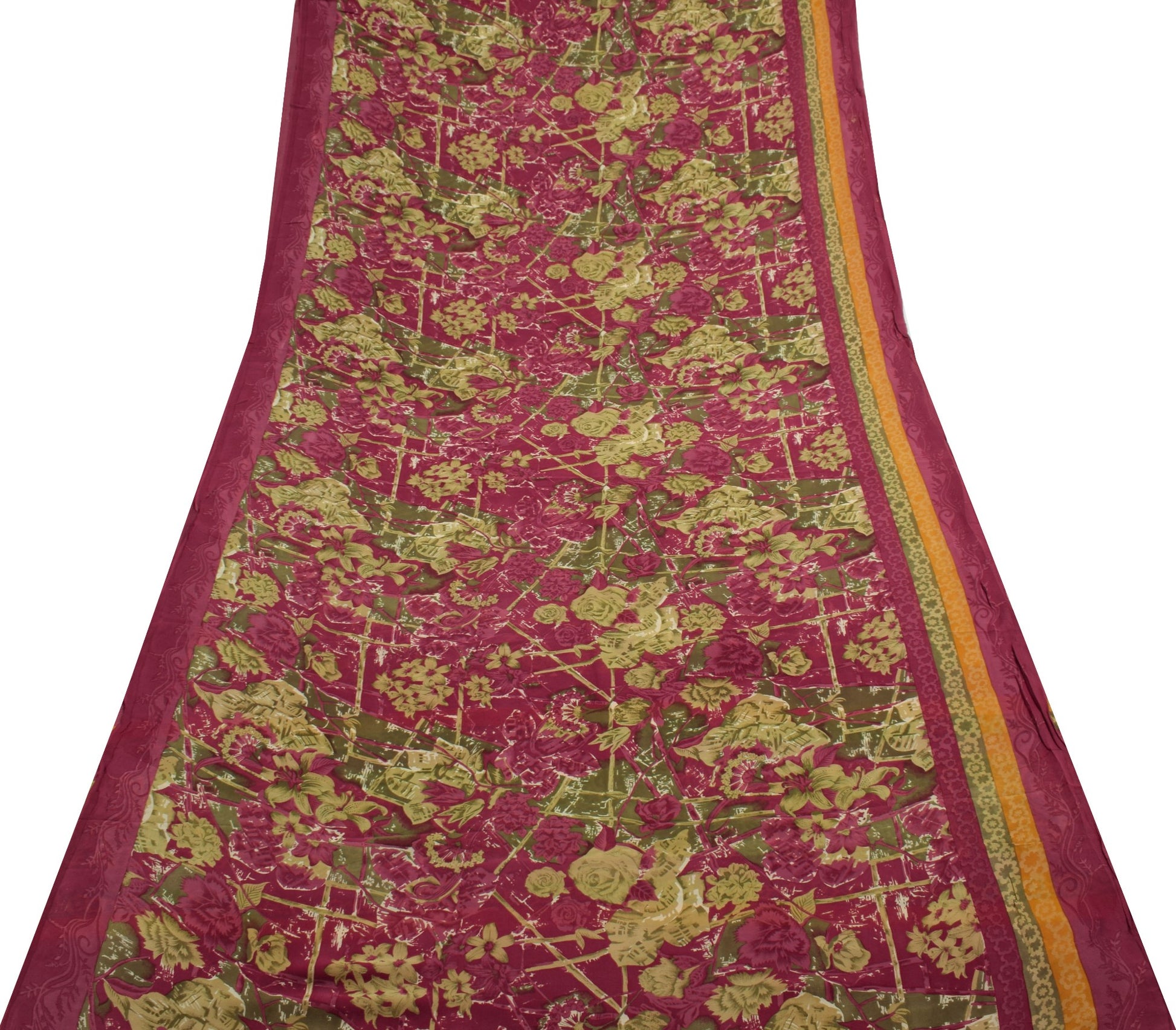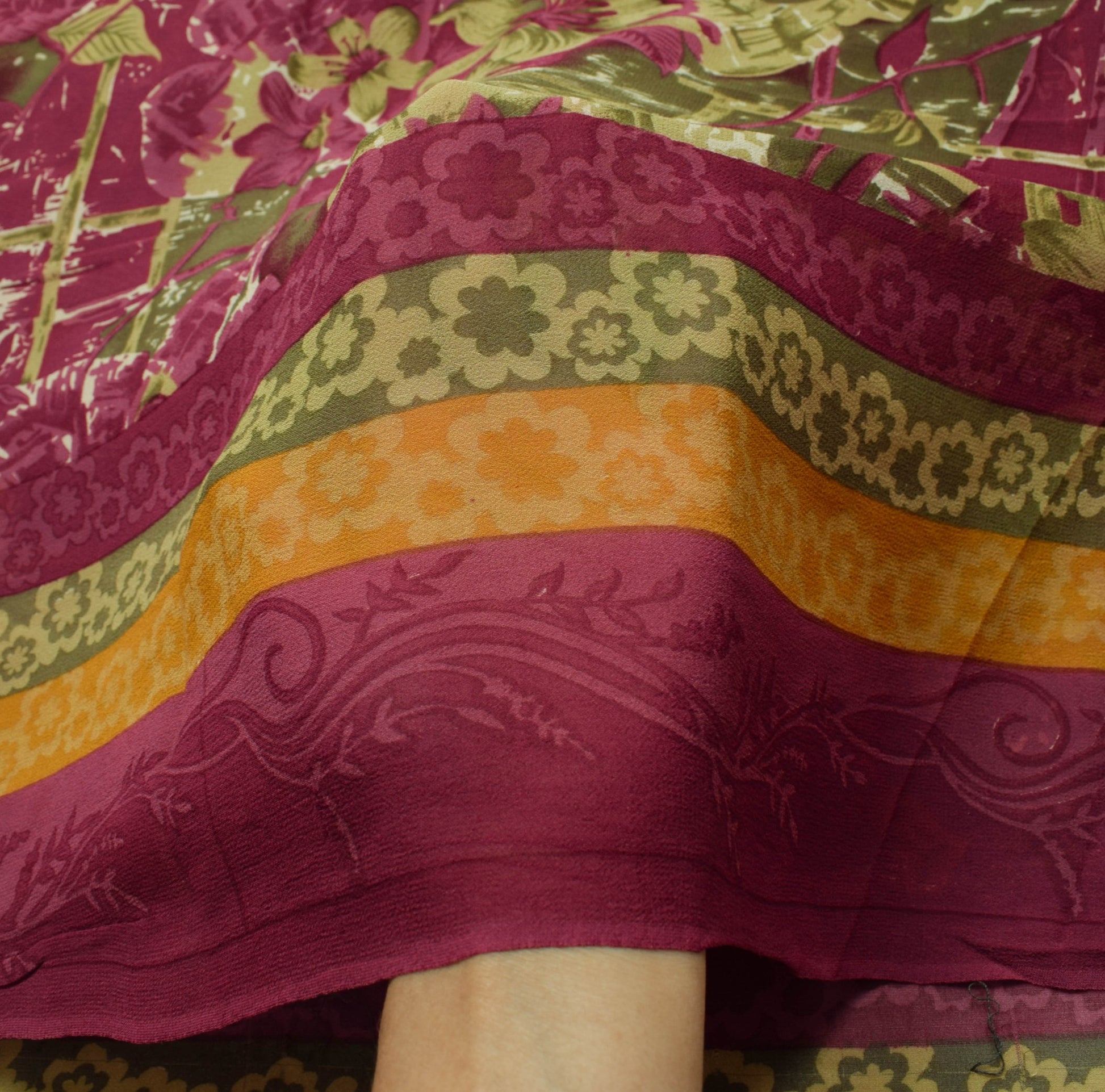 Sushila Vintage Dark Pink Saree Pure Georgette Silk Printed Floral Craft Fabric