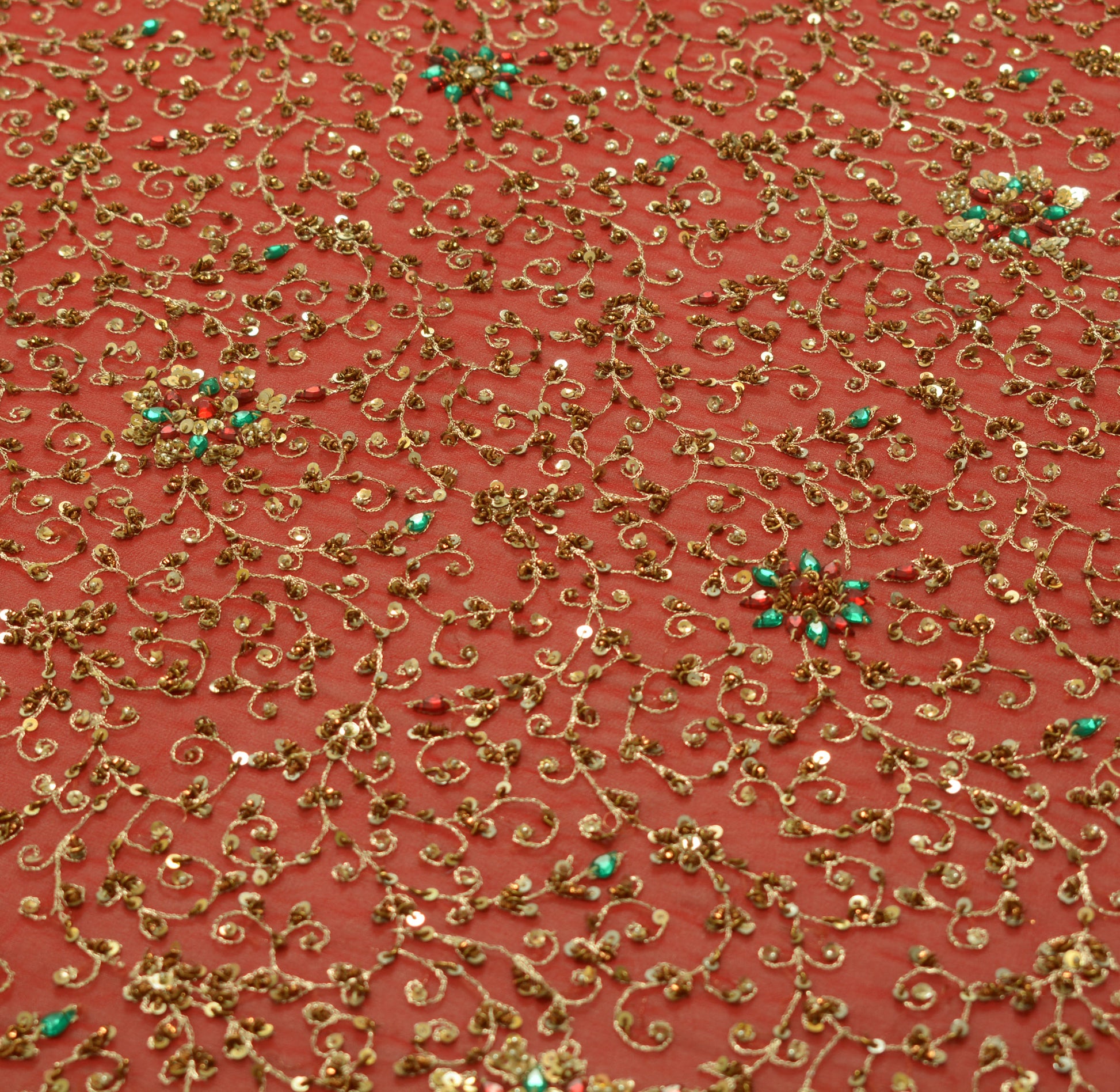 Elevate your style with this intricately crafted Dark Red (Maroon) Floral Dupatta, Scarf, Indian Long Stole, Veil, or Hijab, perfect for special occasions and everyday elegance. Made from premium 100% Pure Georgette Silk, this piece features intricate Hand Beaded, Embroidered, Zardozi, Rhine Stone, Sequins Work work, adding a touch of traditional charm to any outfit. The Dark Red (Maroon) base beautifully complements the delicate Floral detailing, creating a truly timeless accessory.