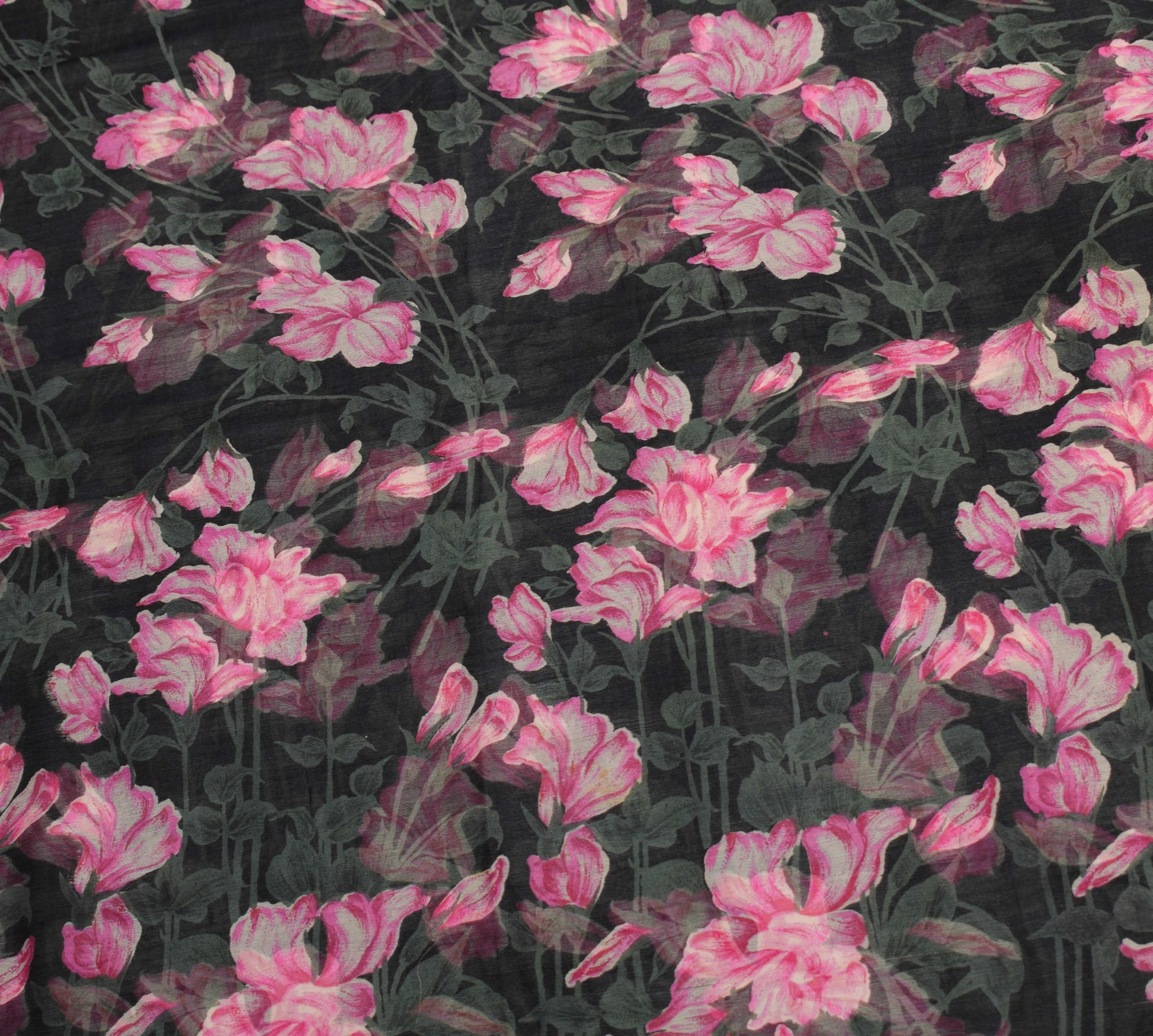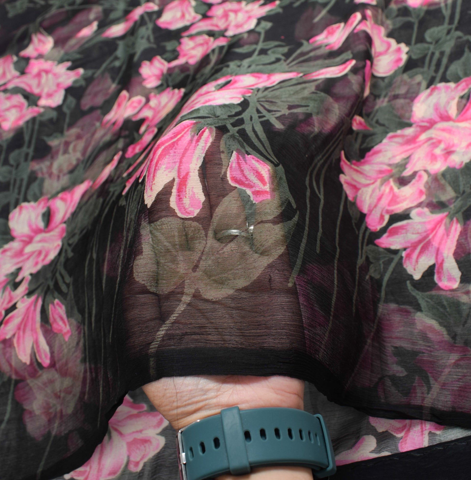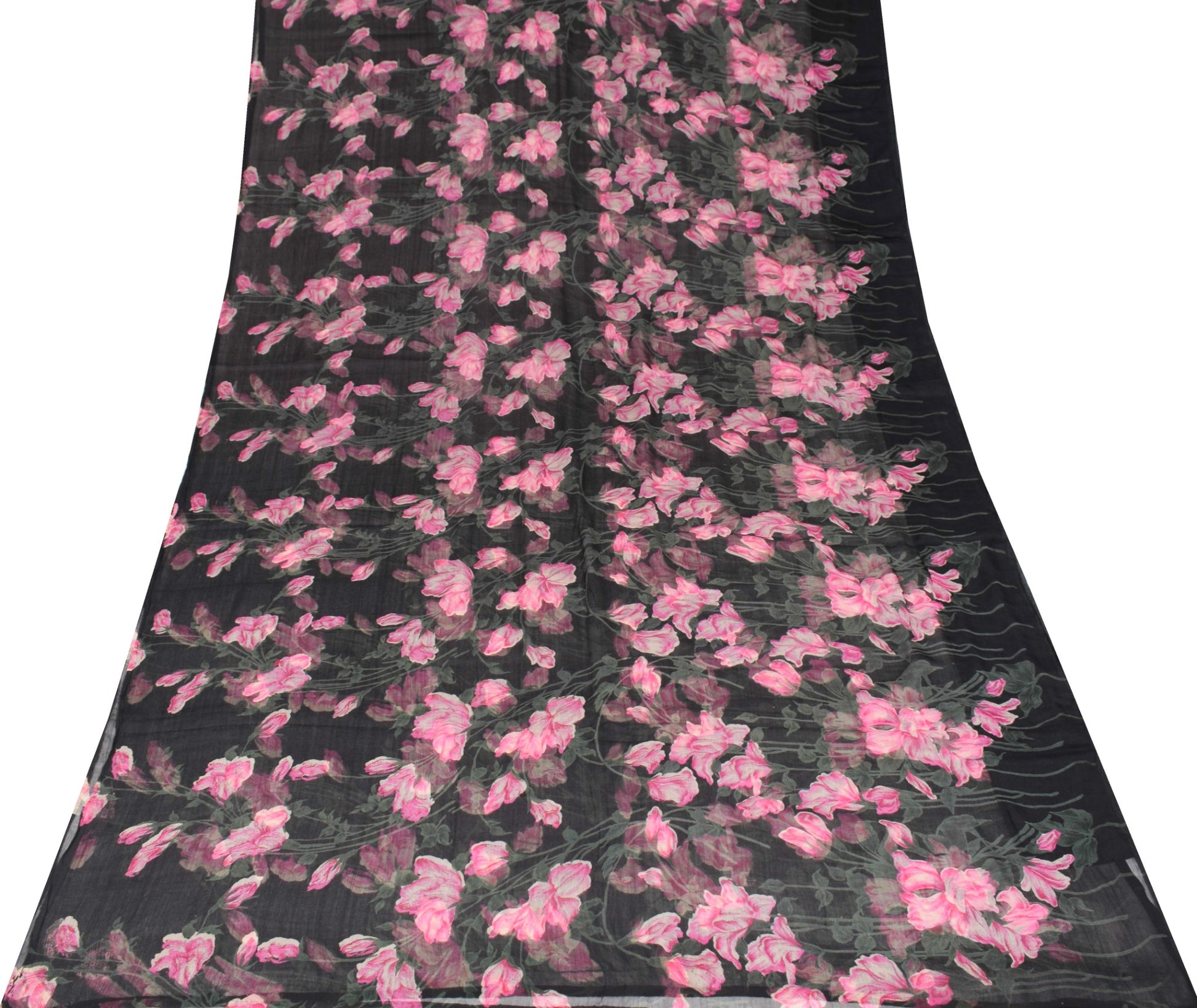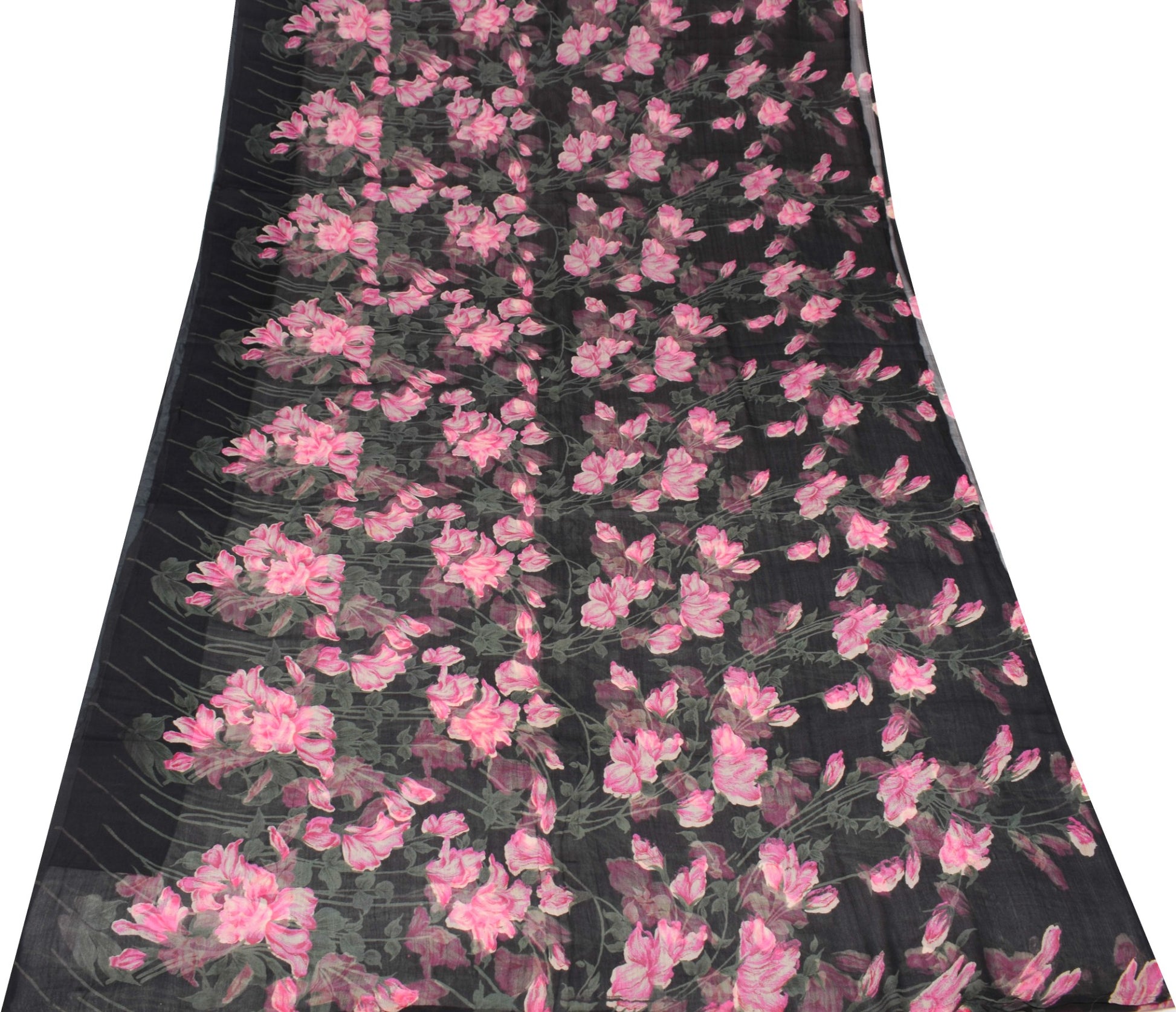 Sushila Vintage Floral Black Saree Pure Chiffon Silk Printed Soft Craft Fabric