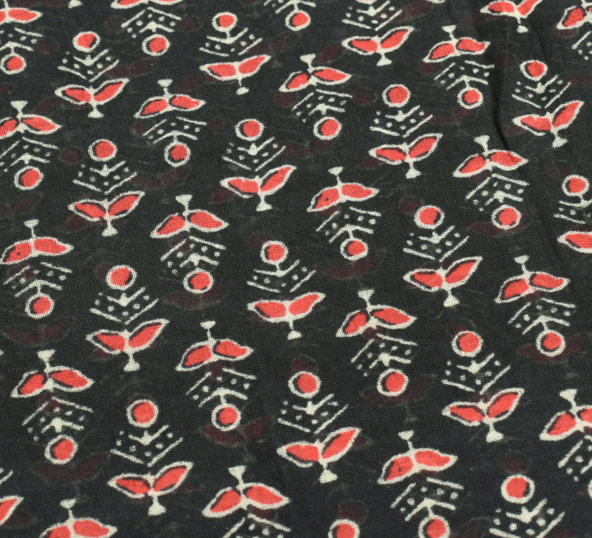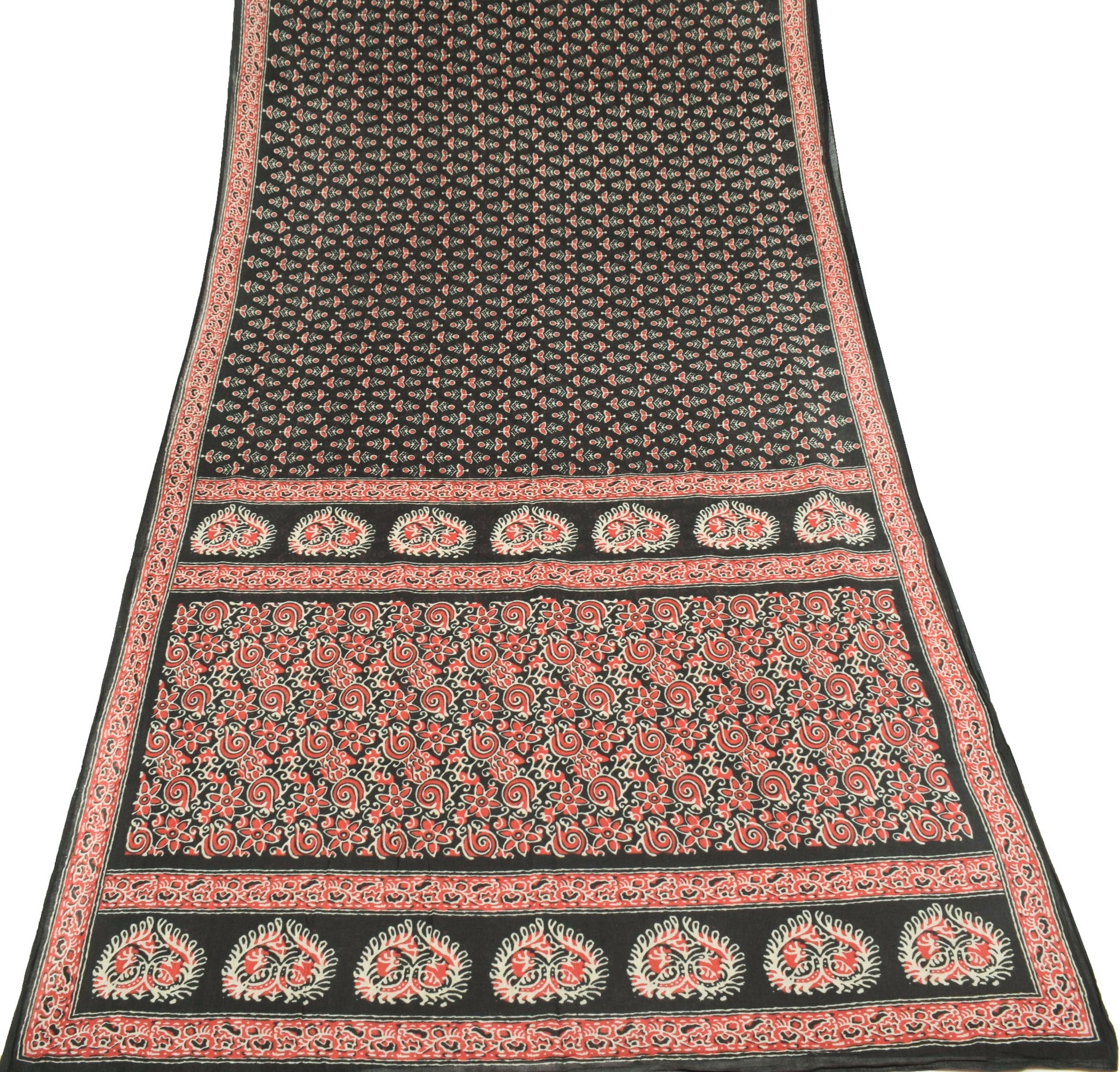 Sushila Vintage Floral Black Saree Pure Cotton Hand Block Printed Soft Fabric