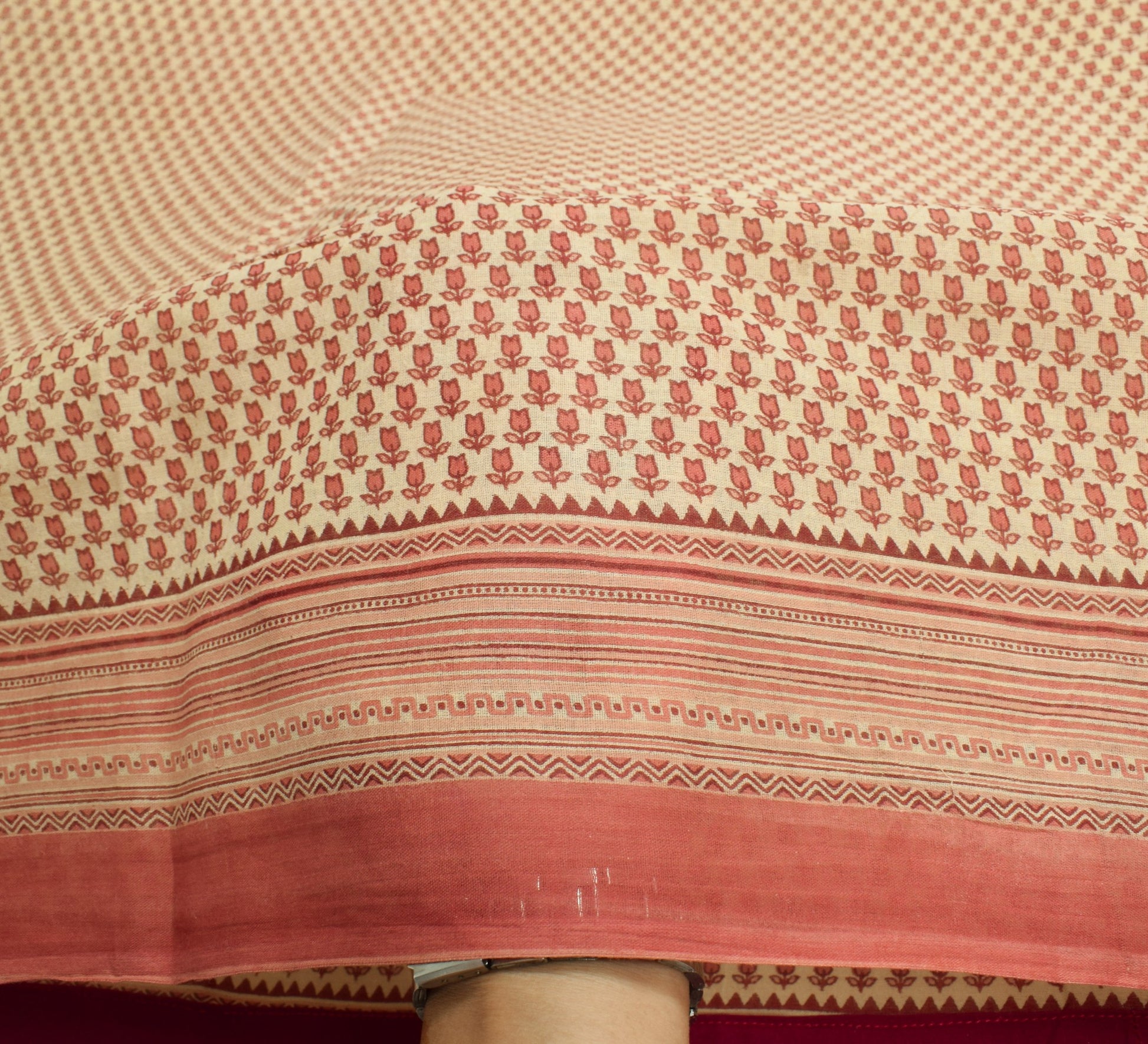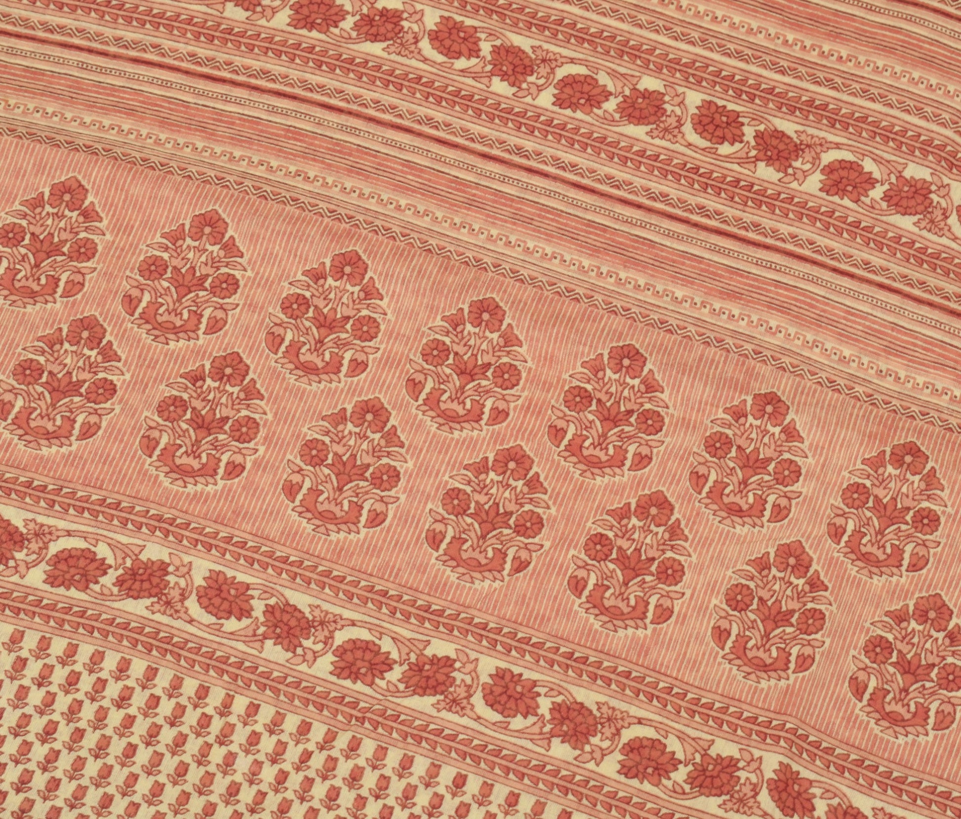 Sushila Vintage Floral Cream Saree 100% Pure Cotton Printed Soft Craft Fabric