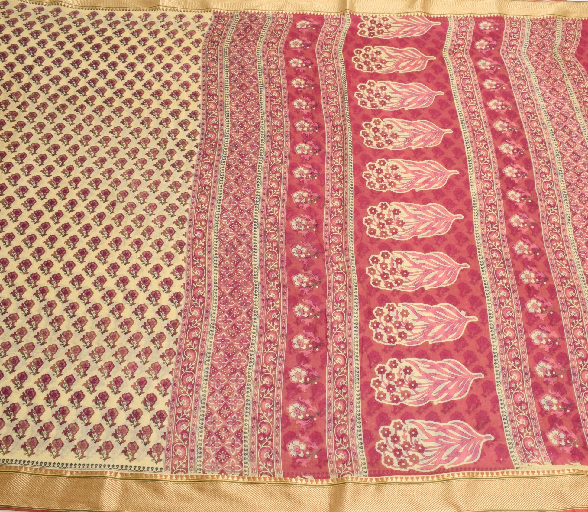 Sushila Vintage Floral Cream Saree with Border Pure Cotton Printed Soft Fabric