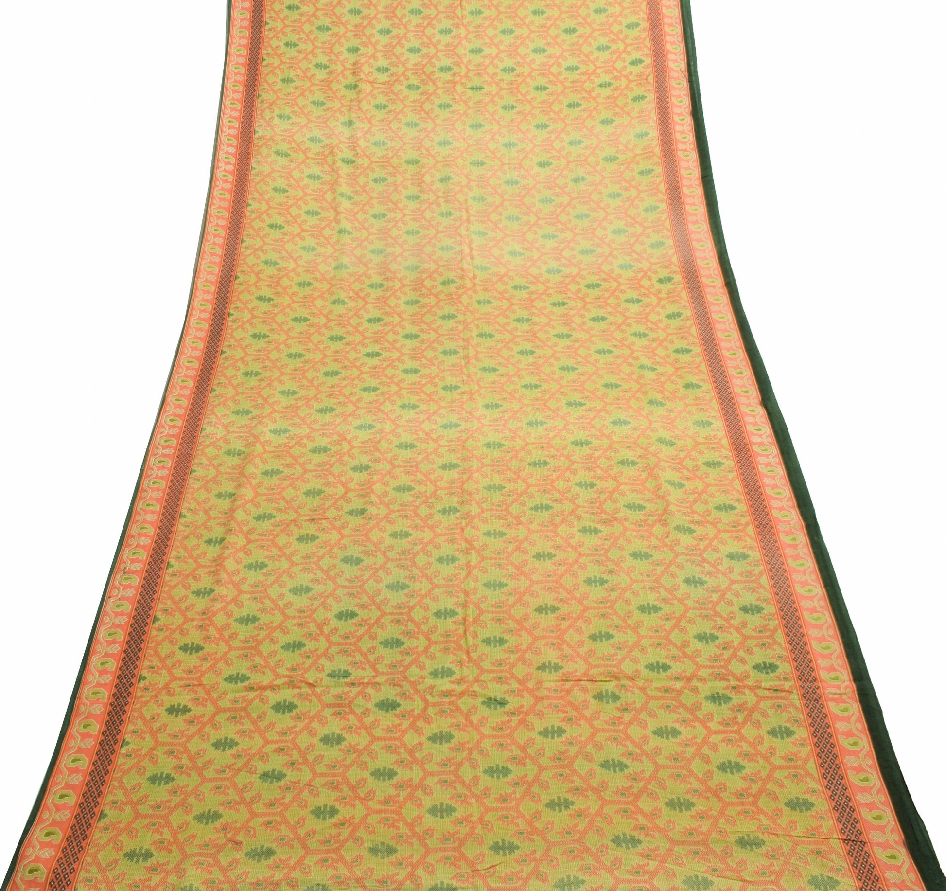 Sushila Vintage Floral Green Saree 100% Pure Cotton Printed Soft Craft Fabric