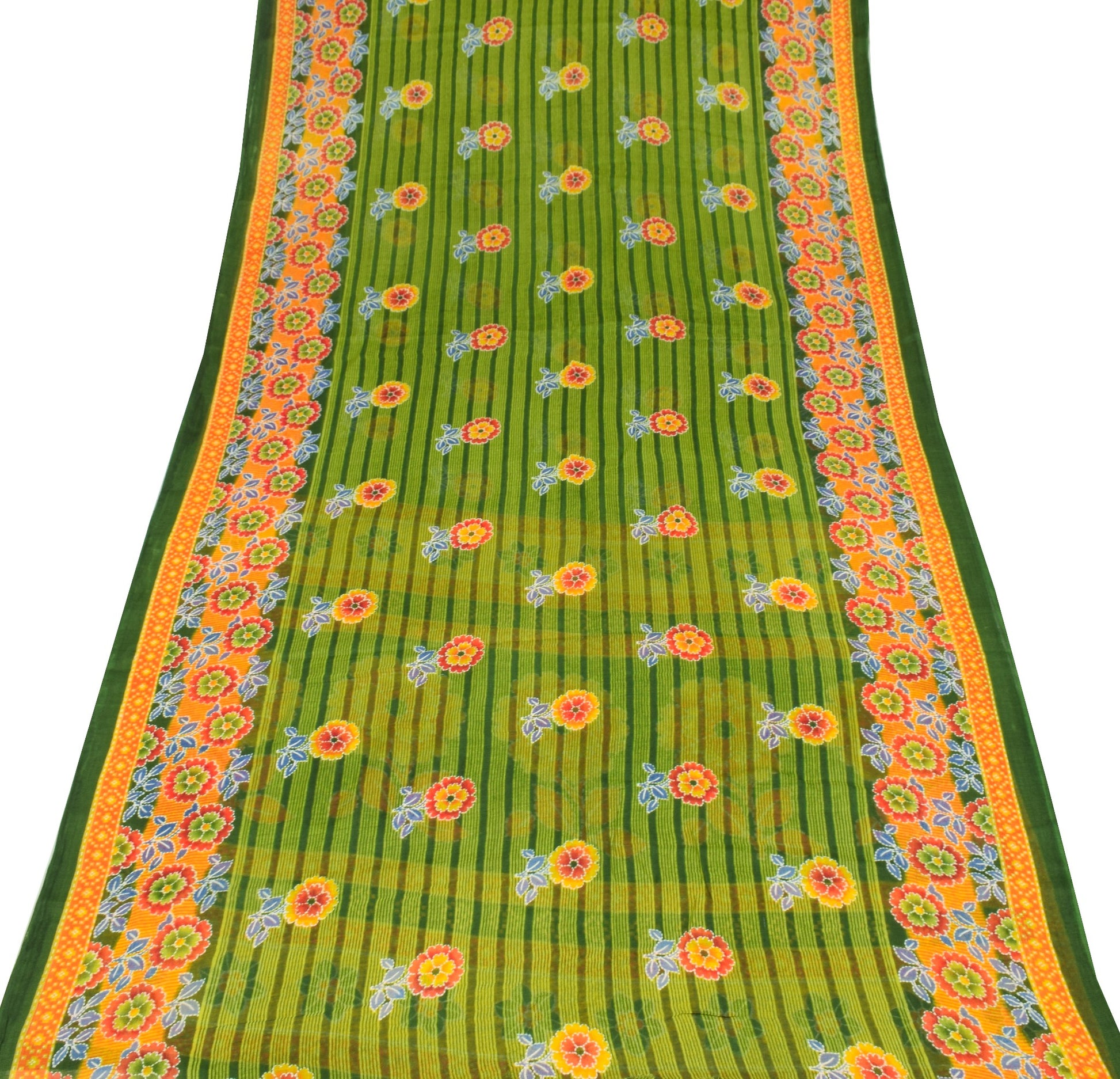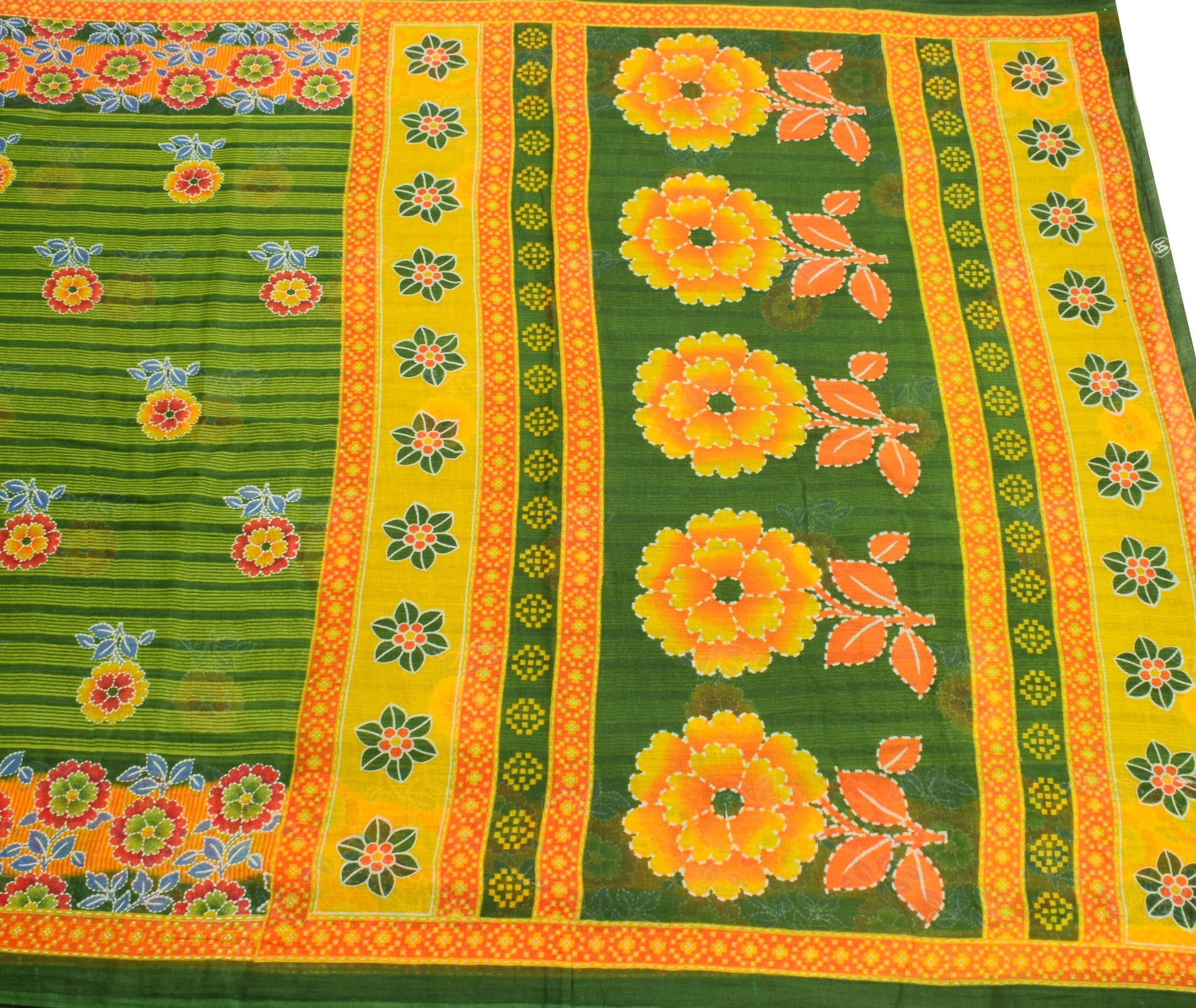Sushila Vintage Floral Green Saree 100% Pure Cotton Printed Soft Craft Fabric