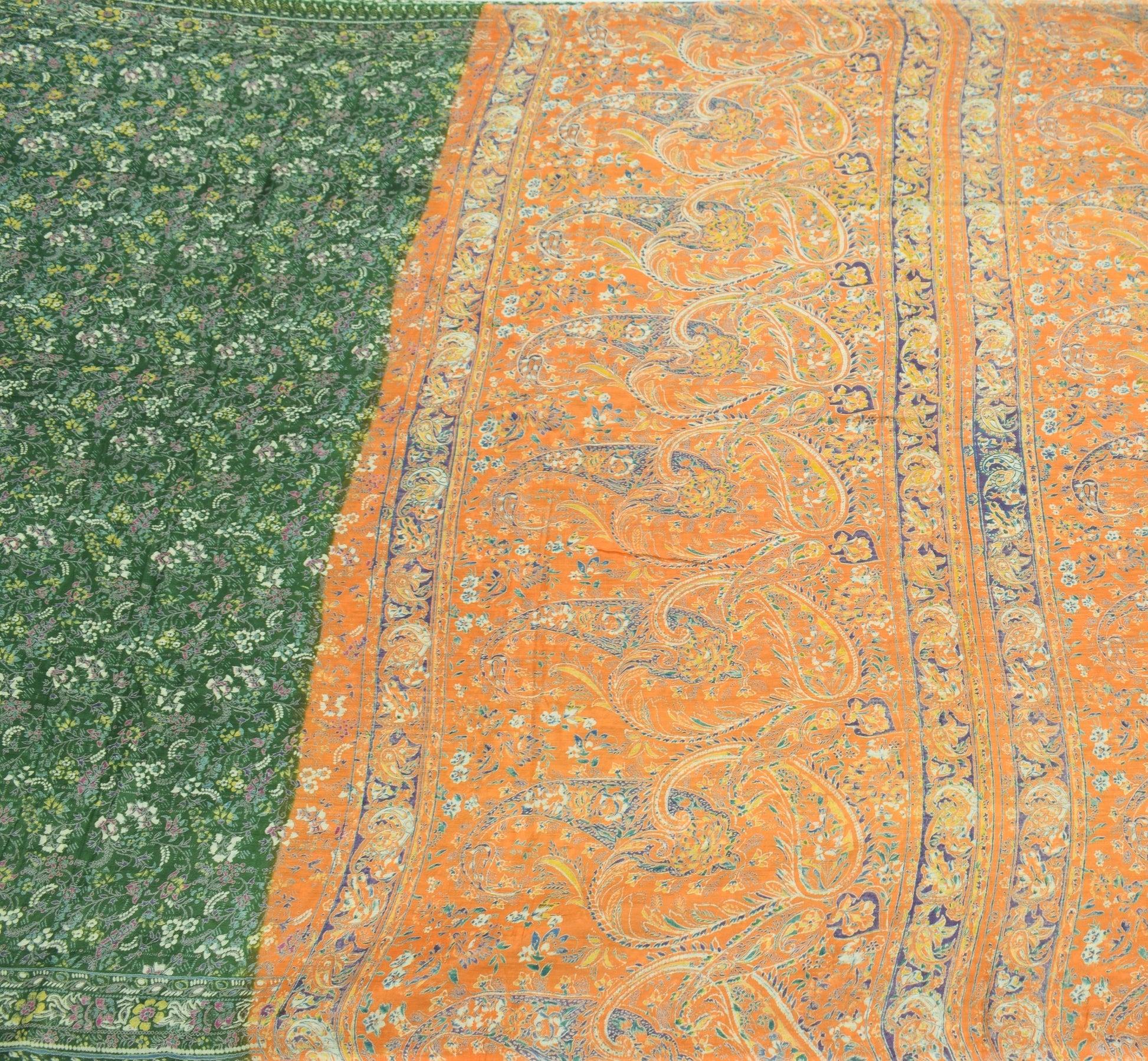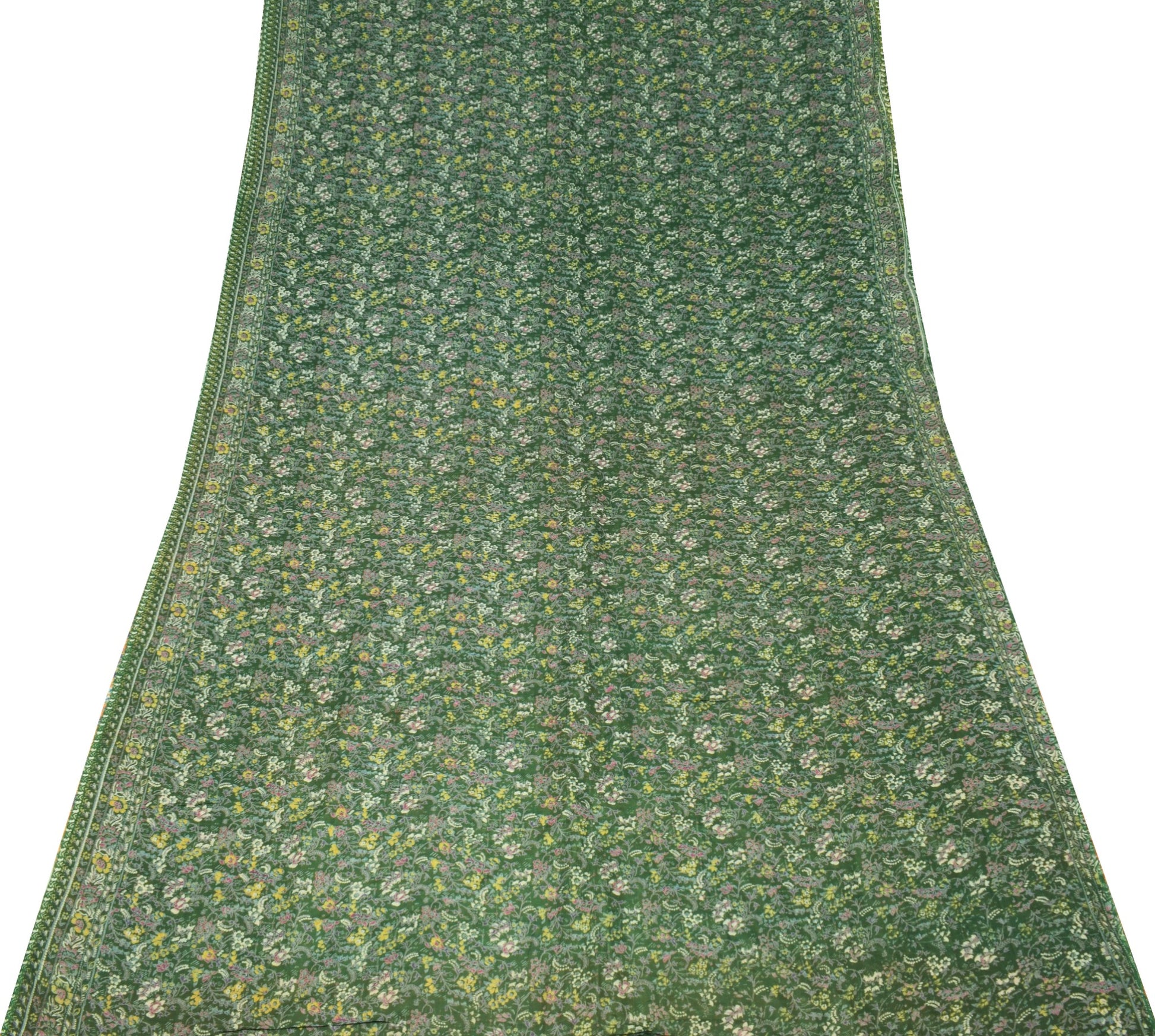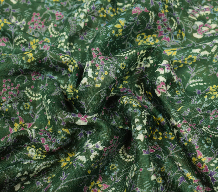 Sushila Vintage Floral Green Saree 100% Pure Silk Printed Soft 4 YD Craft Fabric