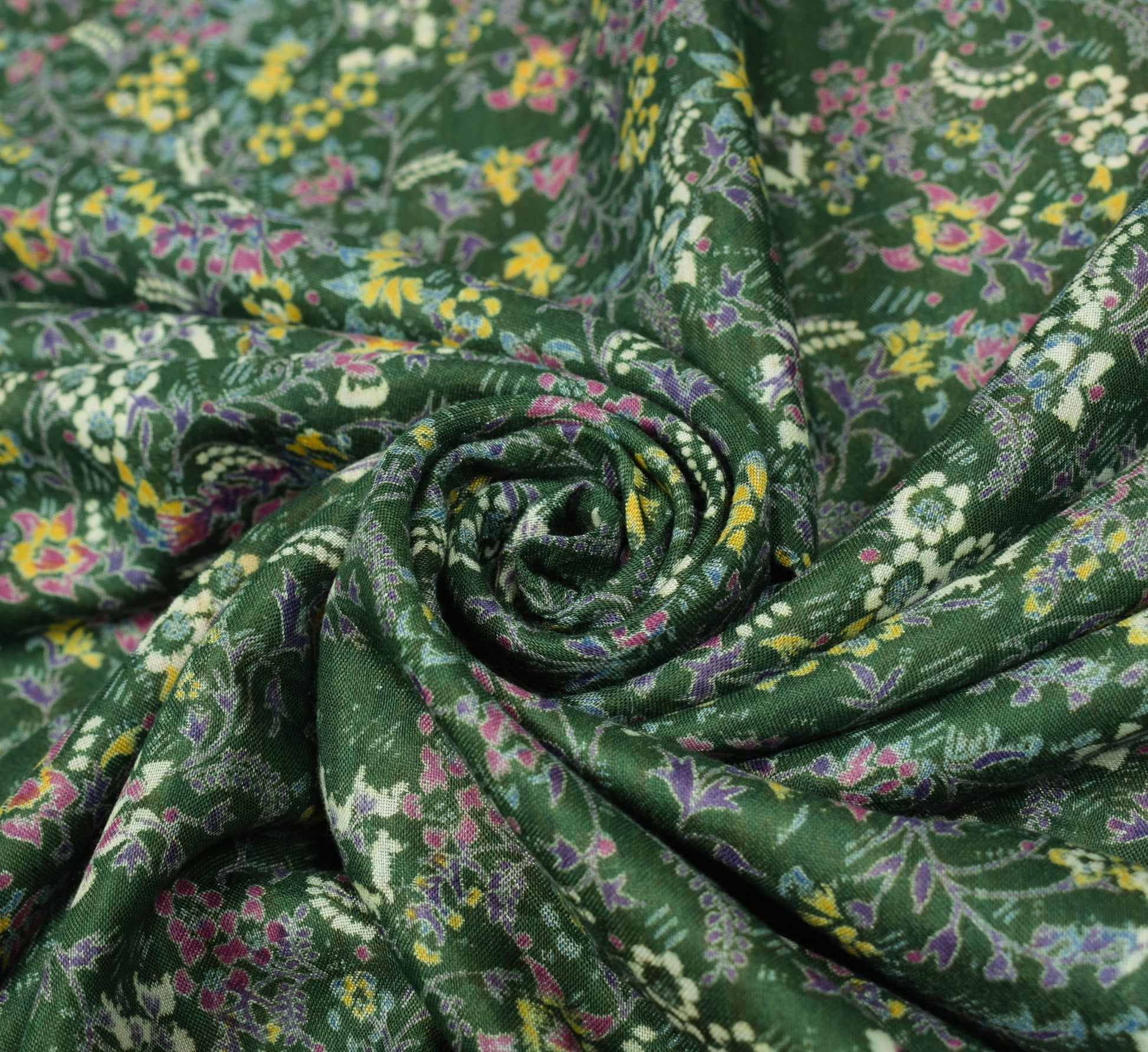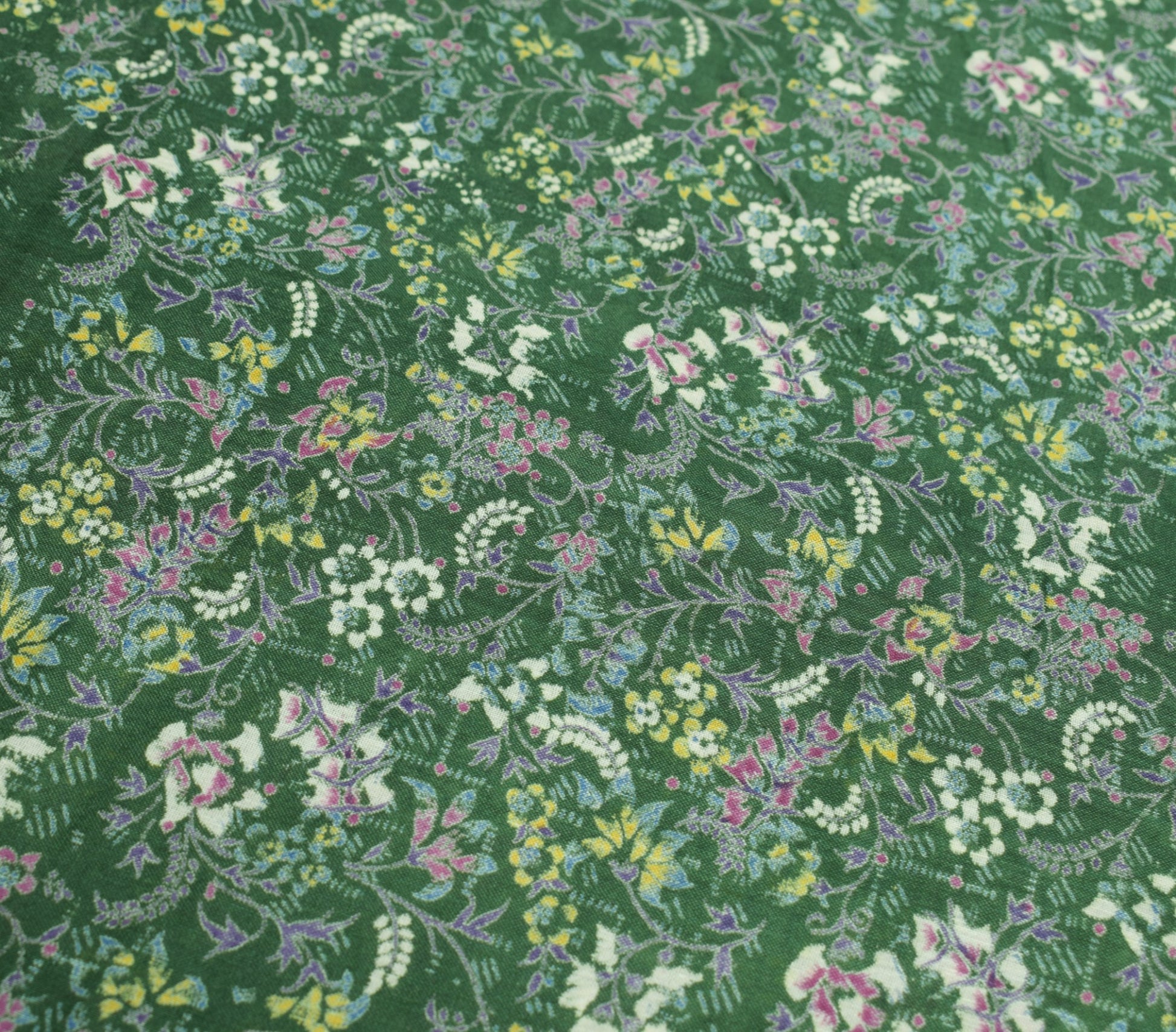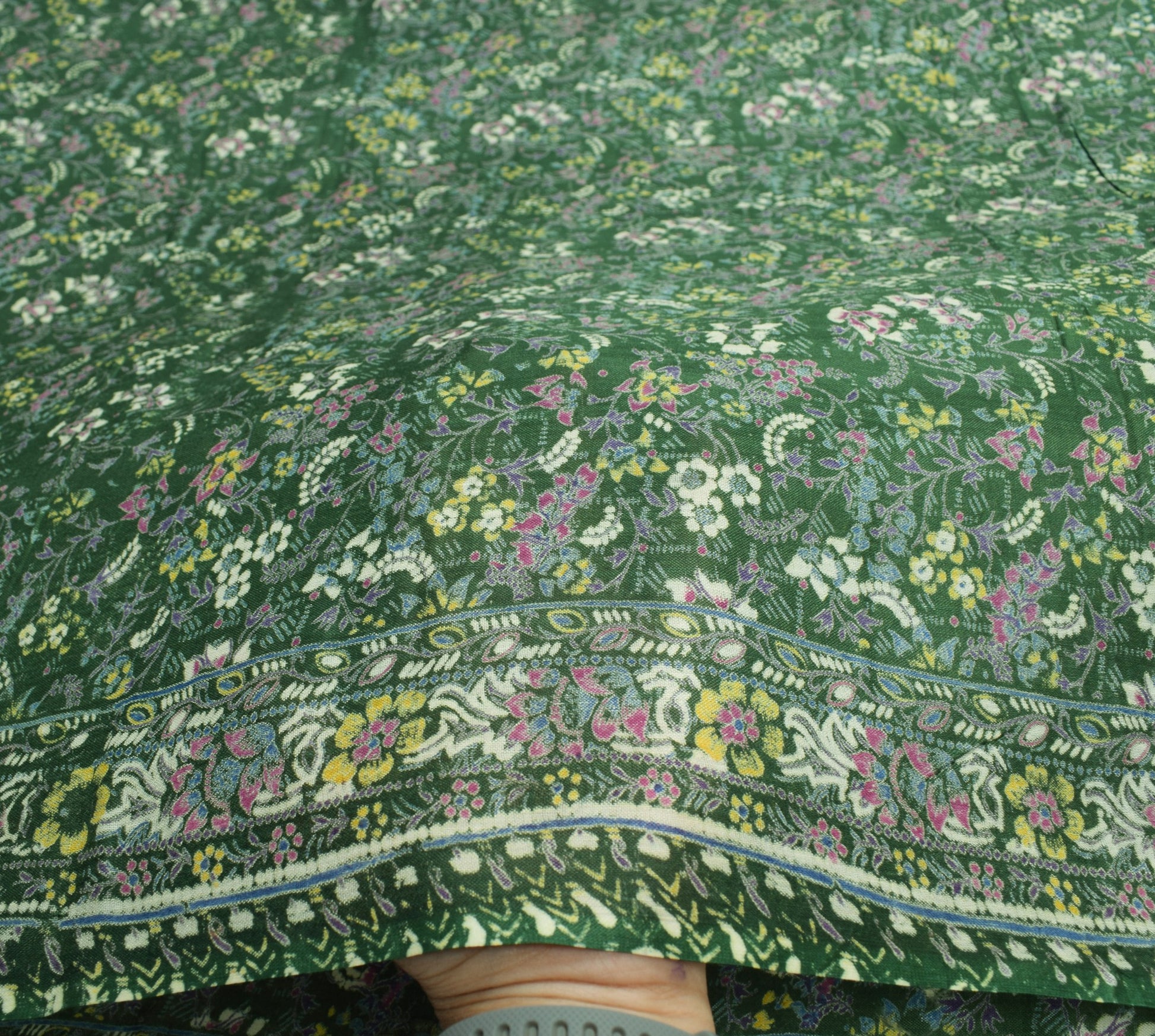 Sushila Vintage Floral Green Saree 100% Pure Silk Printed Soft 4 YD Craft Fabric