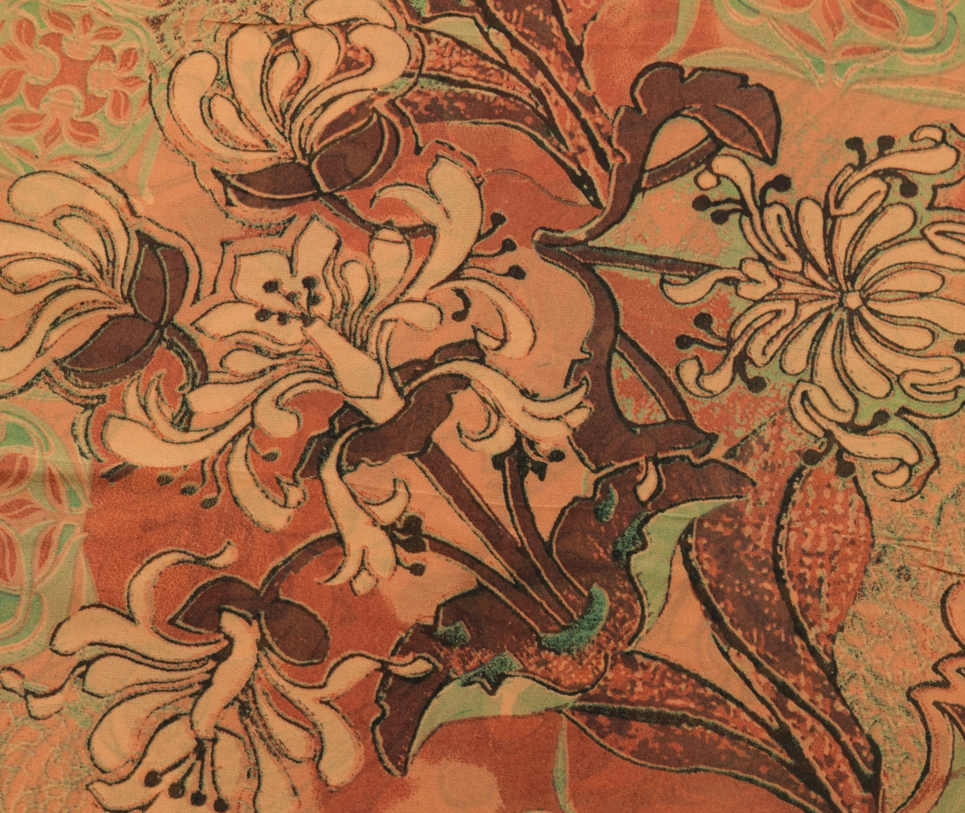 Sushila Vintage Floral Indian Saree 100%Pure Georgette Silk Printed Craft Fabric