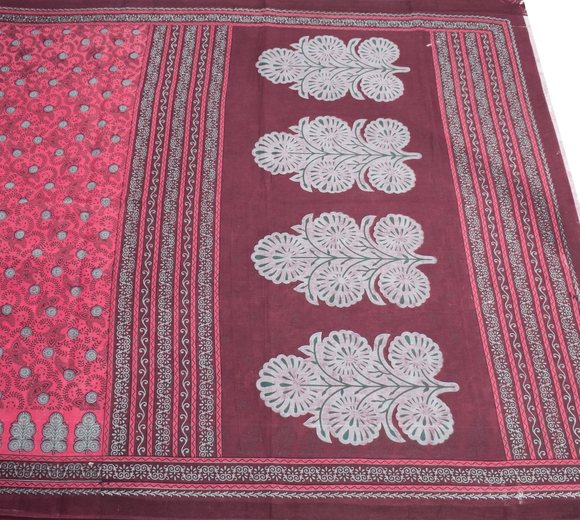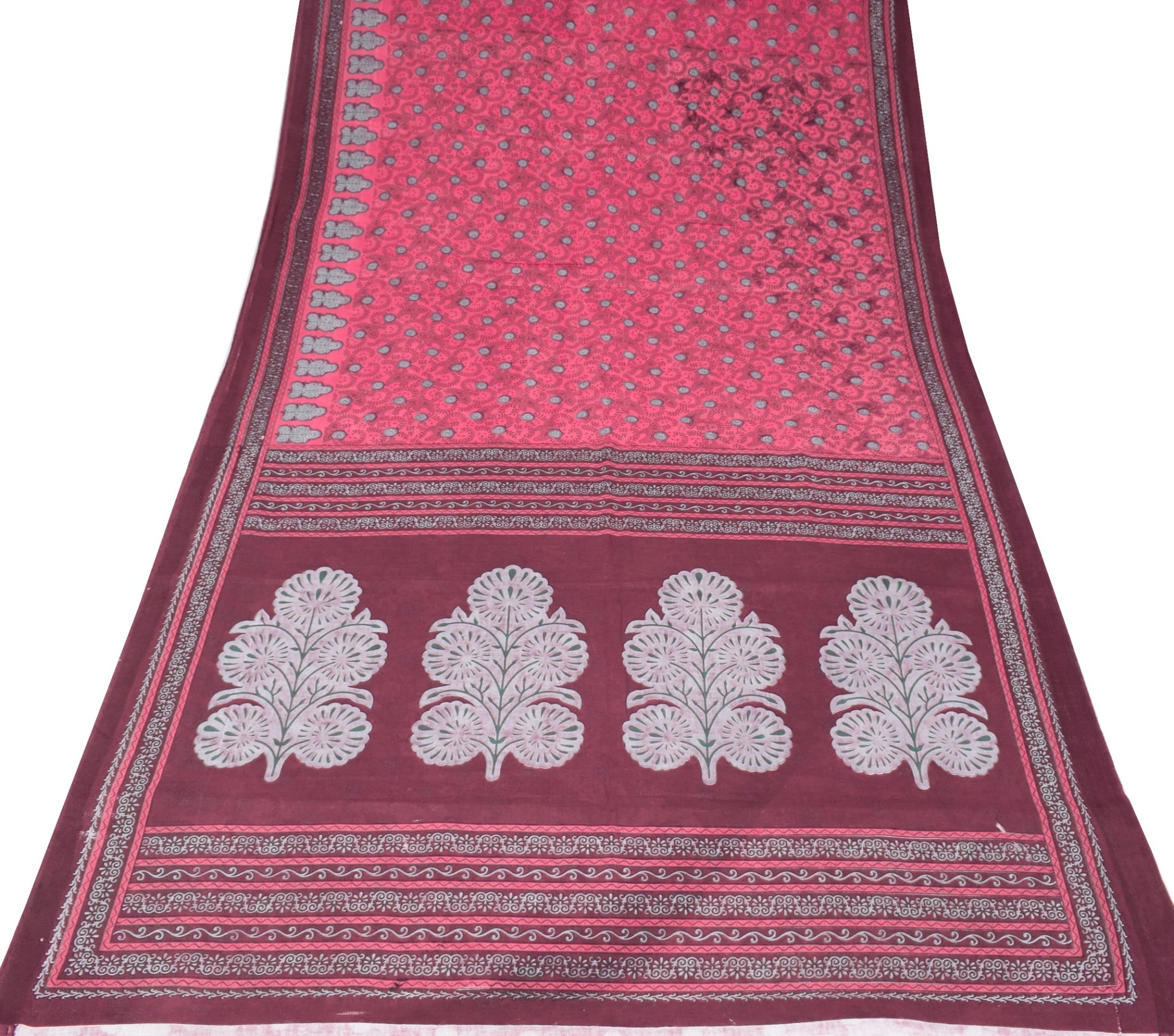Sushila Vintage Floral Magenta Saree 100% Pure Cotton Printed Soft Craft Fabric