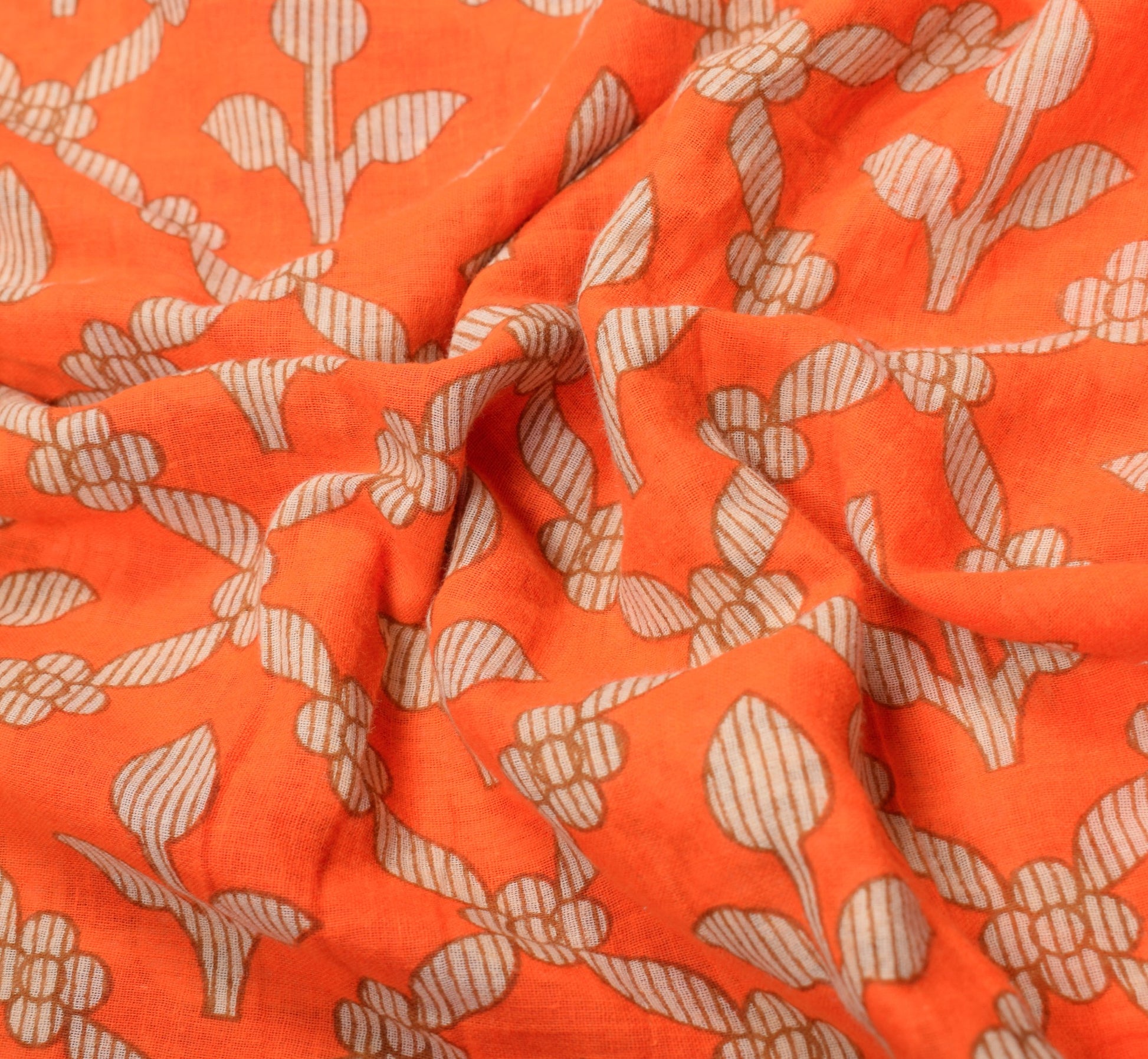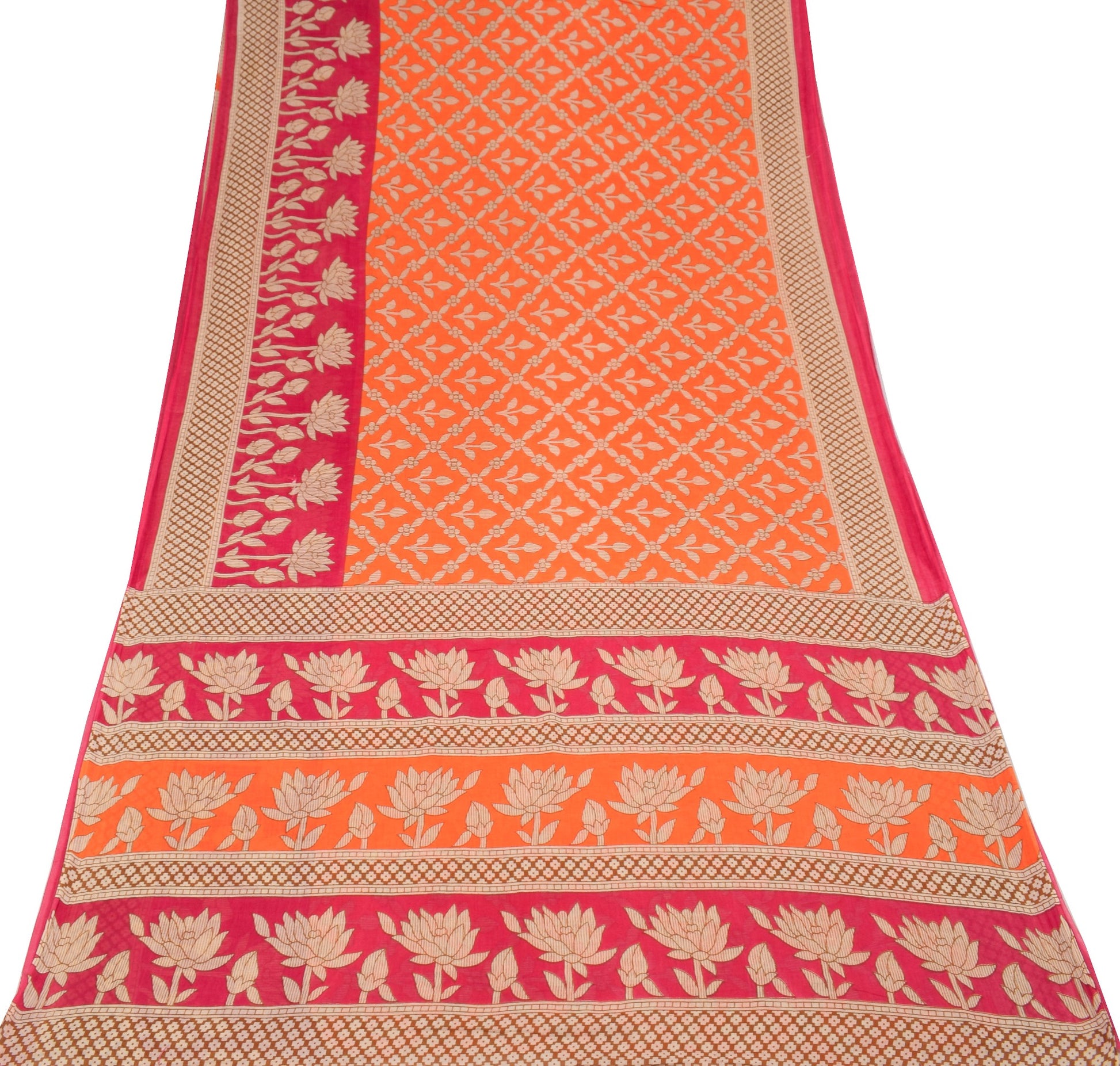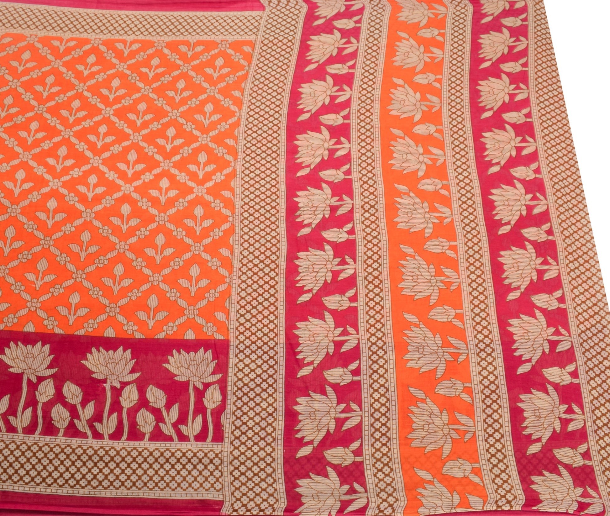 Sushila Vintage Floral Orange Saree 100% Pure Cotton Printed Soft Craft Fabric