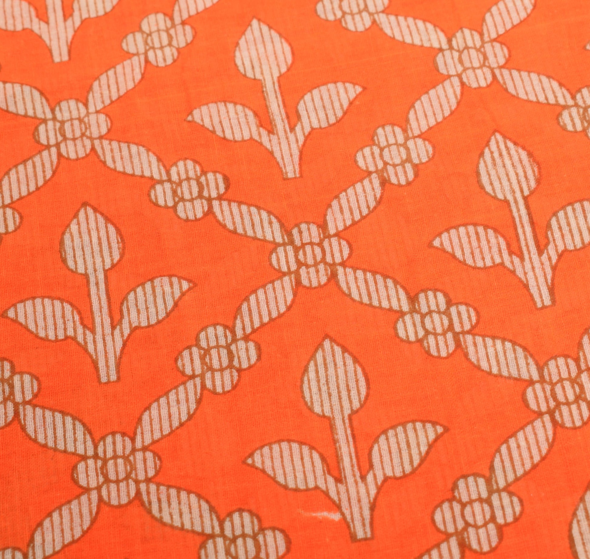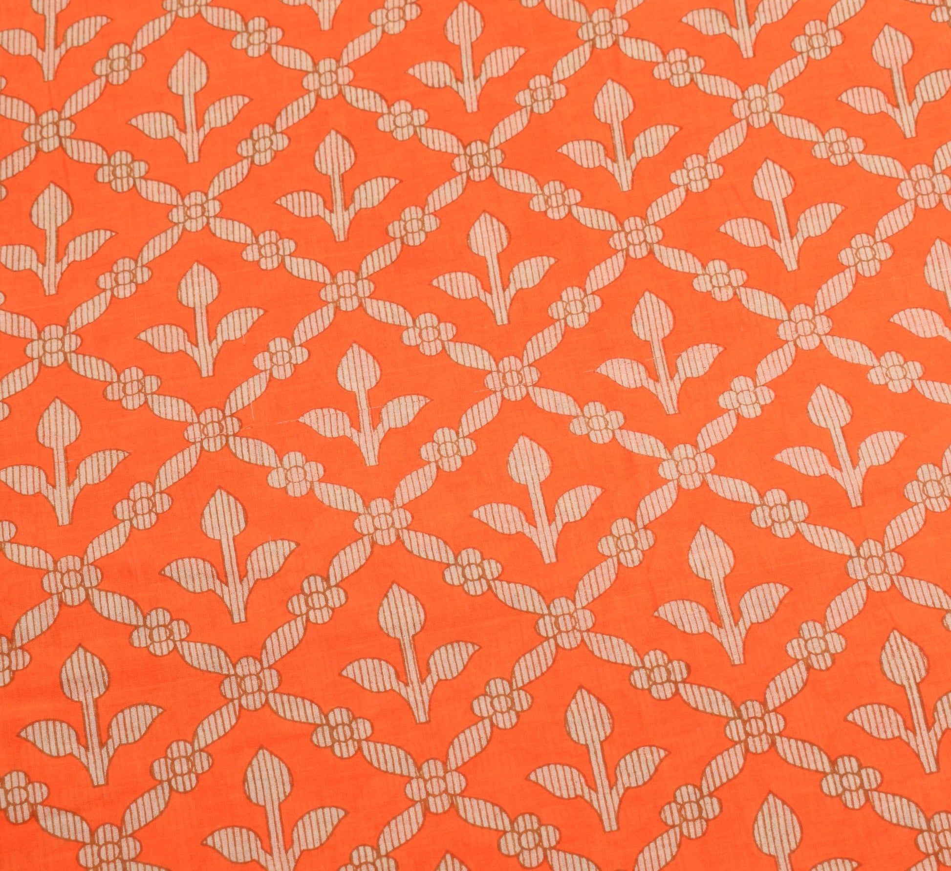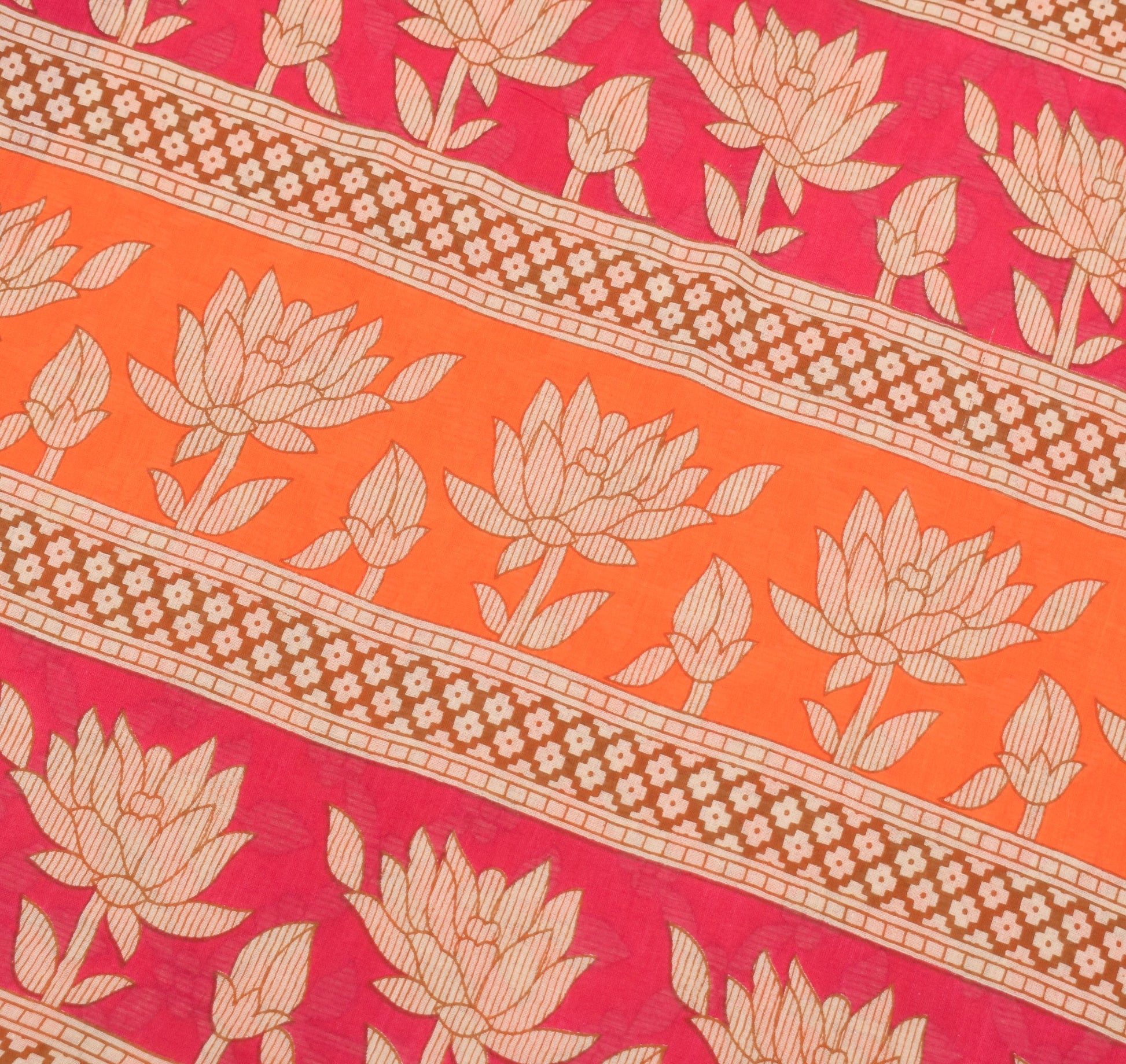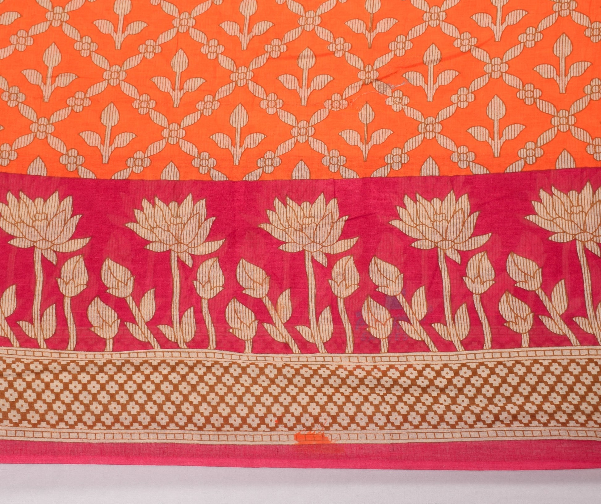 Sushila Vintage Floral Orange Saree 100% Pure Cotton Printed Soft Craft Fabric