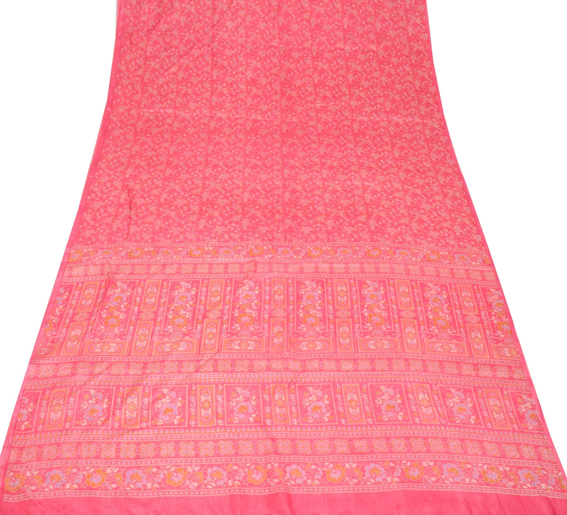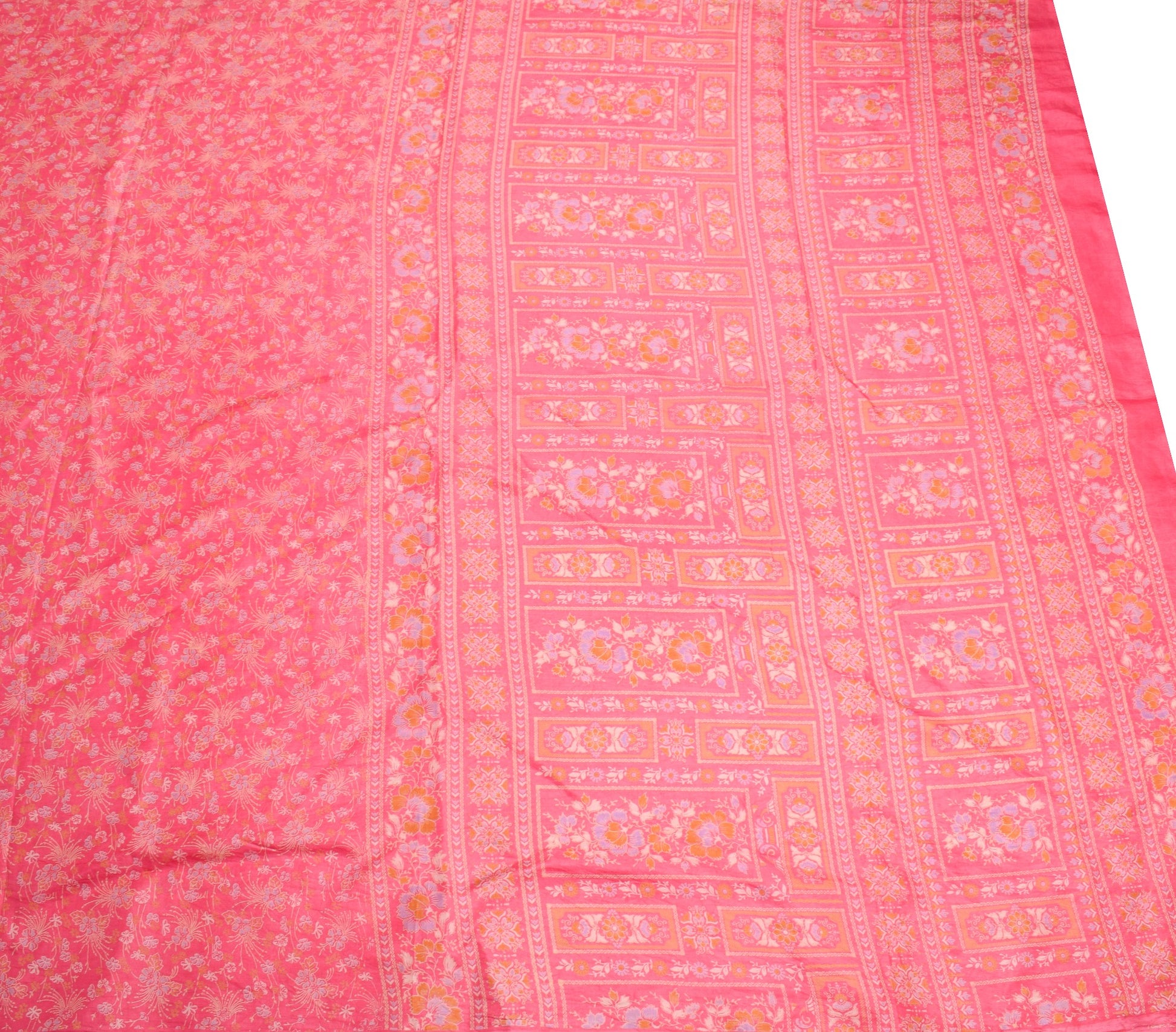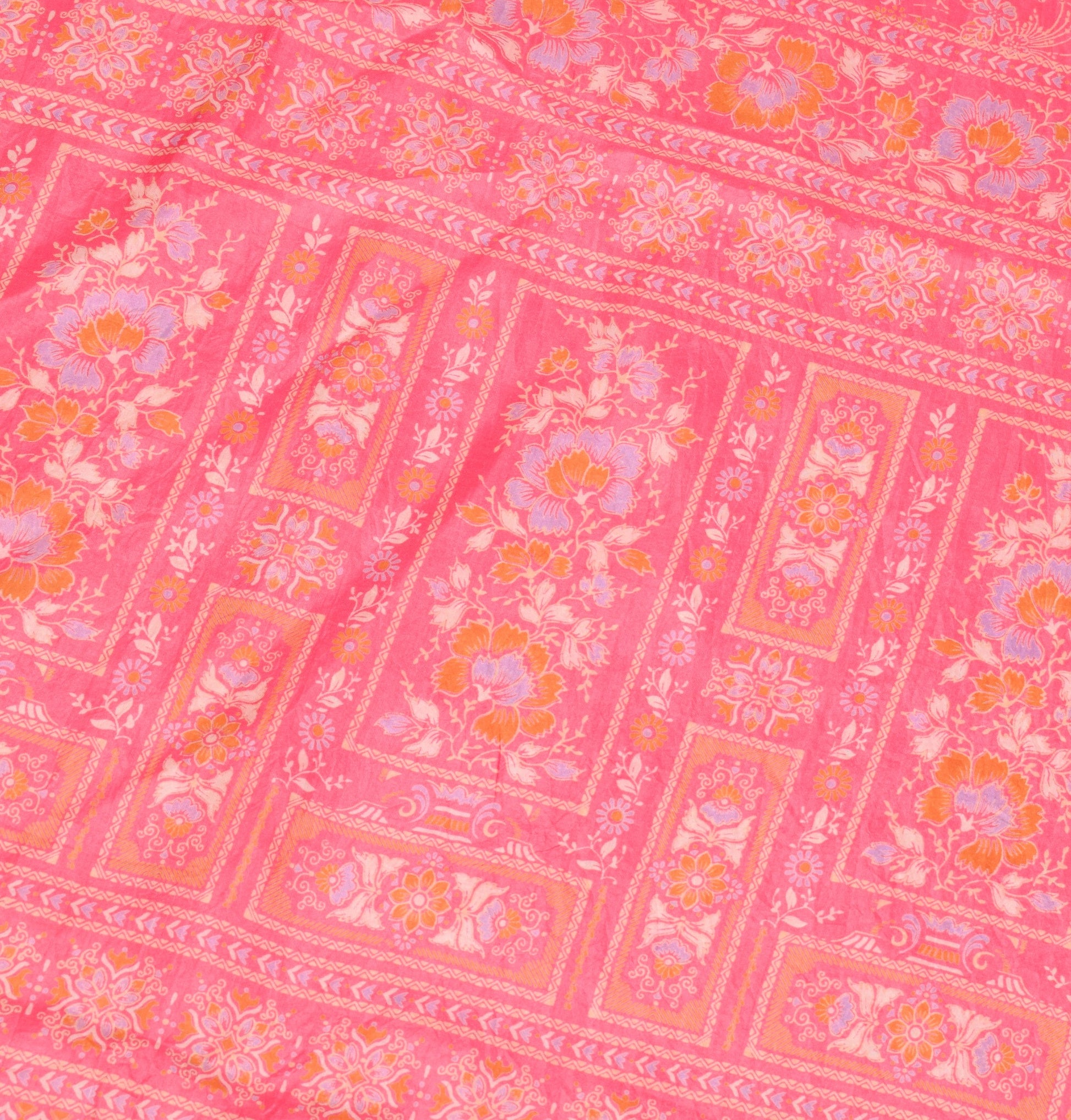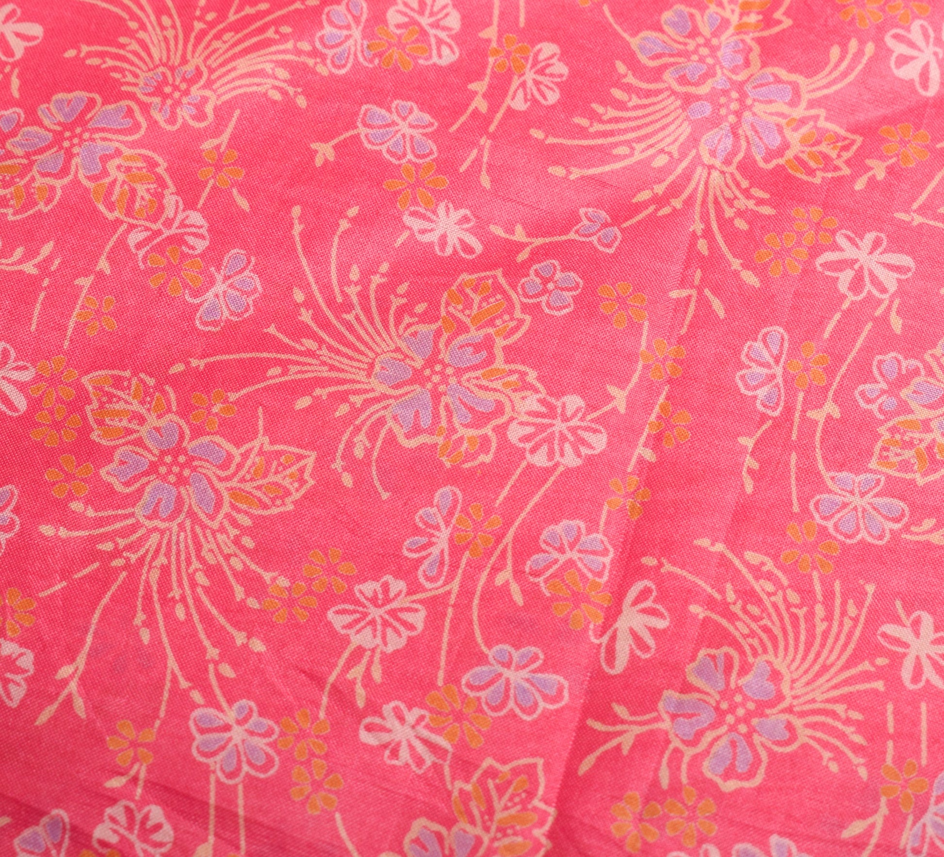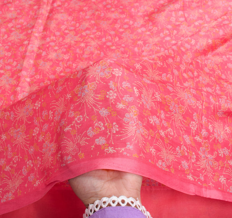 Sushila Vintage Floral Pink Saree Pure Silk Printed Soft Indian Craft Fabric