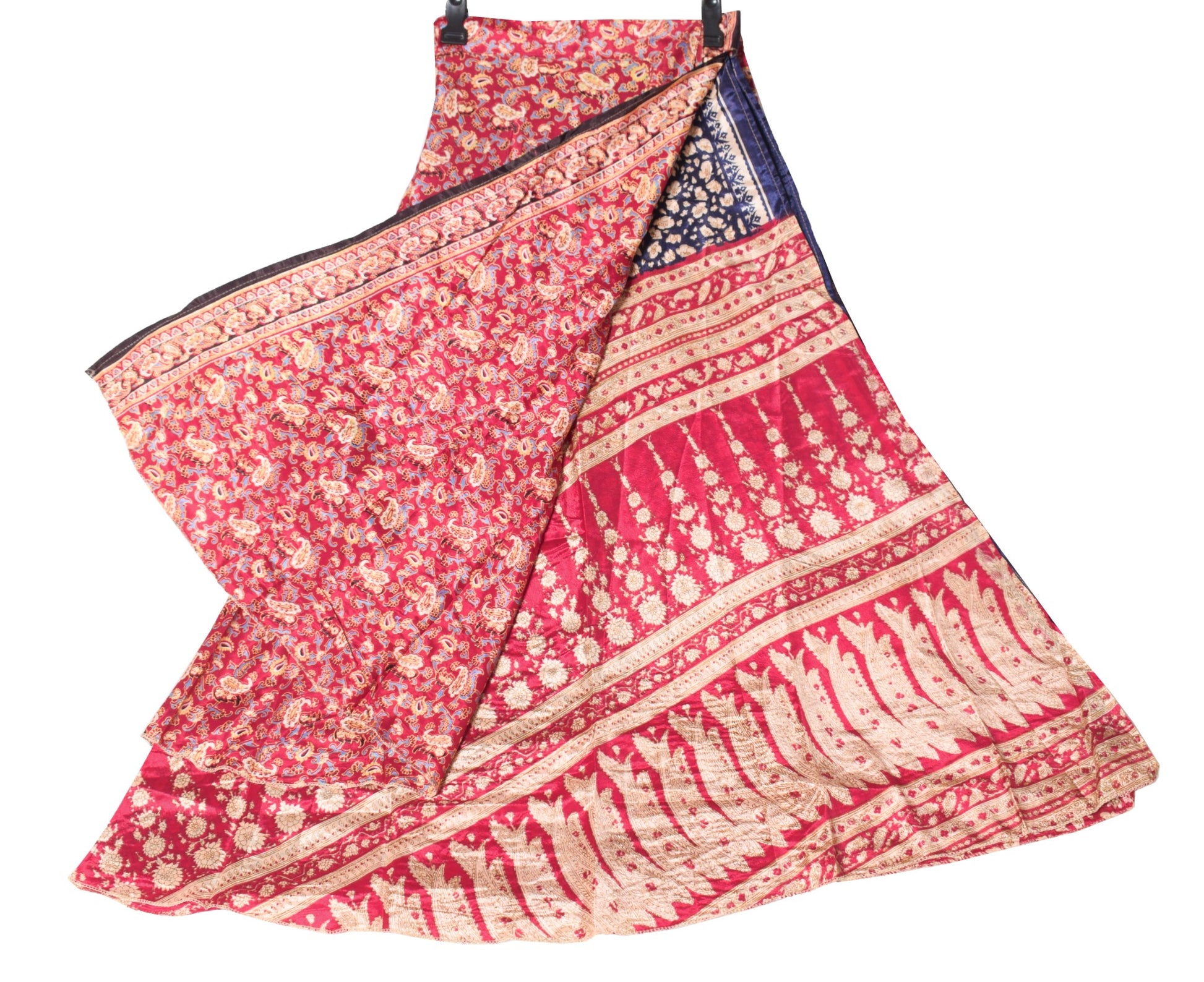 Sushila Vintage Floral Pink Silk Saree Magic Wrap Reversible Skirt Beach Dress