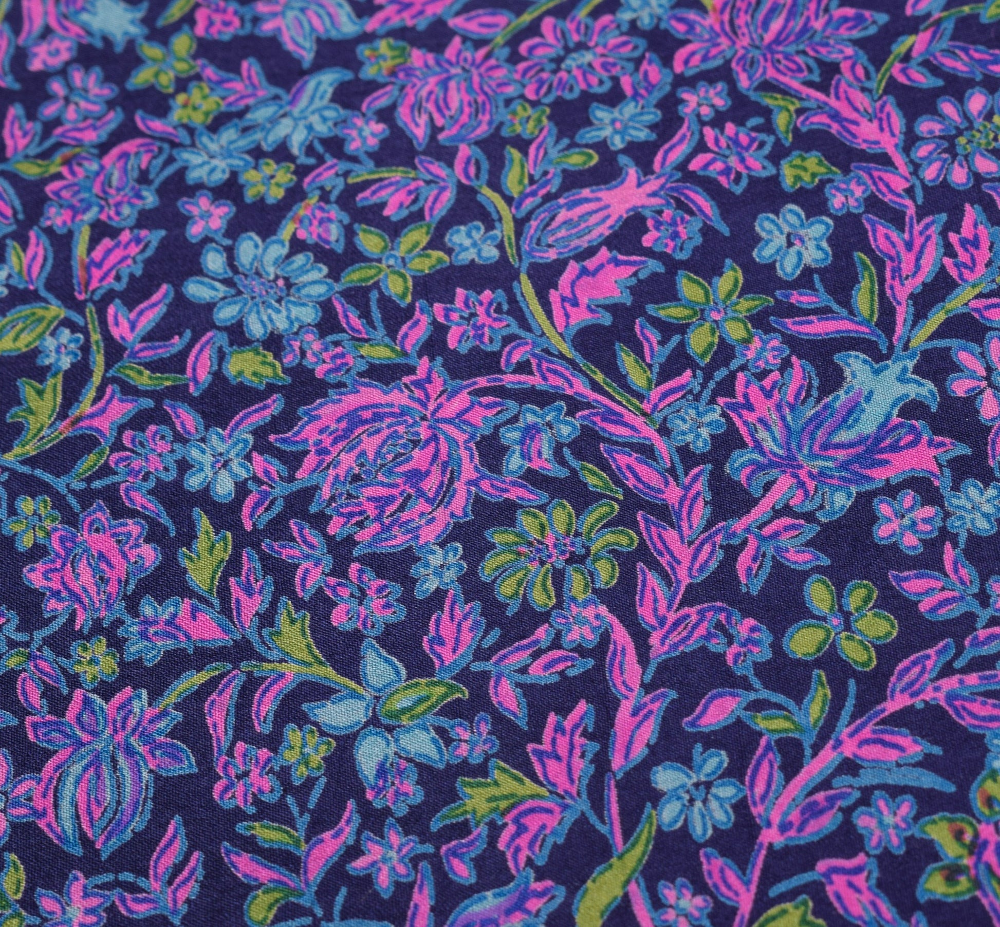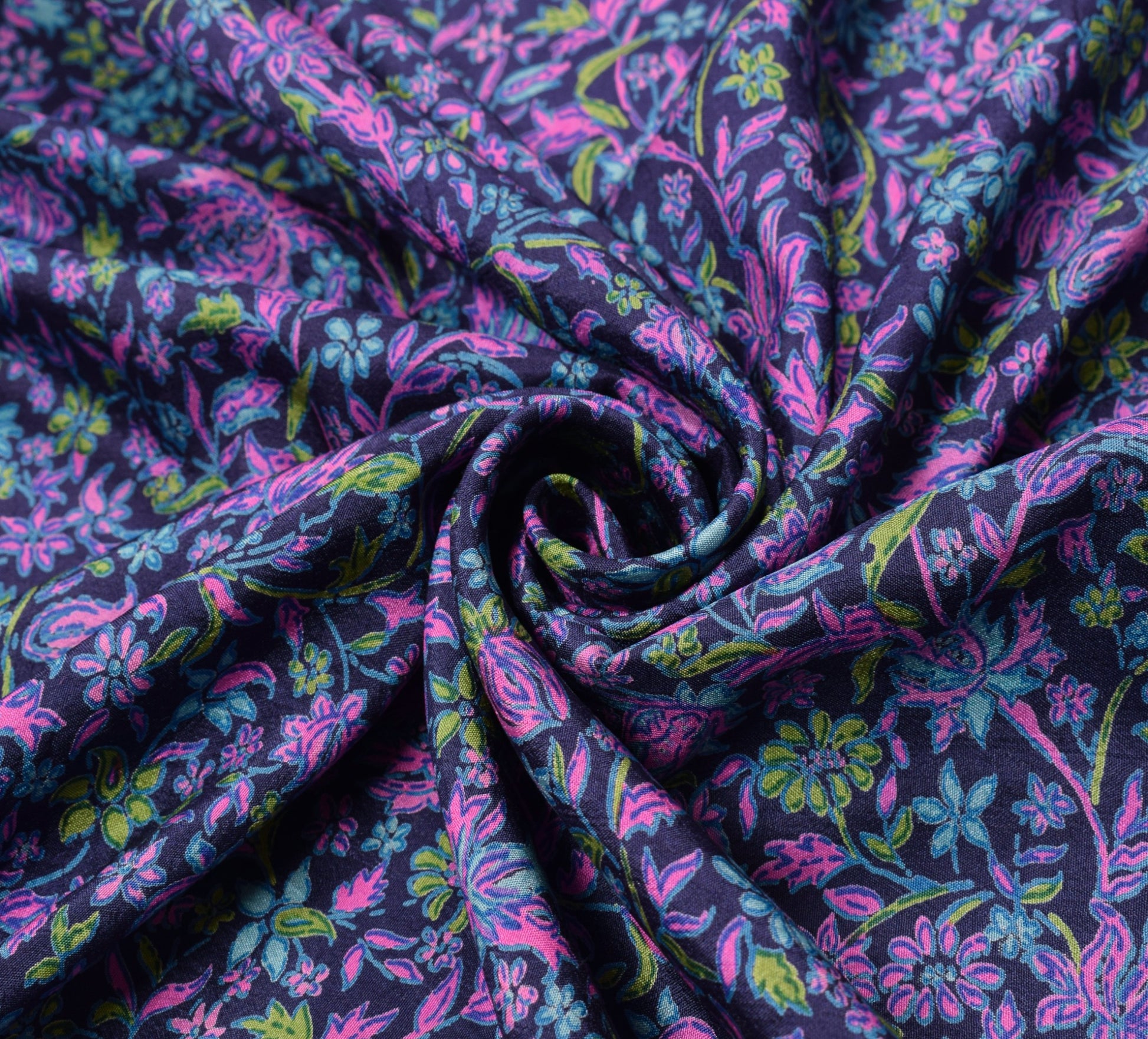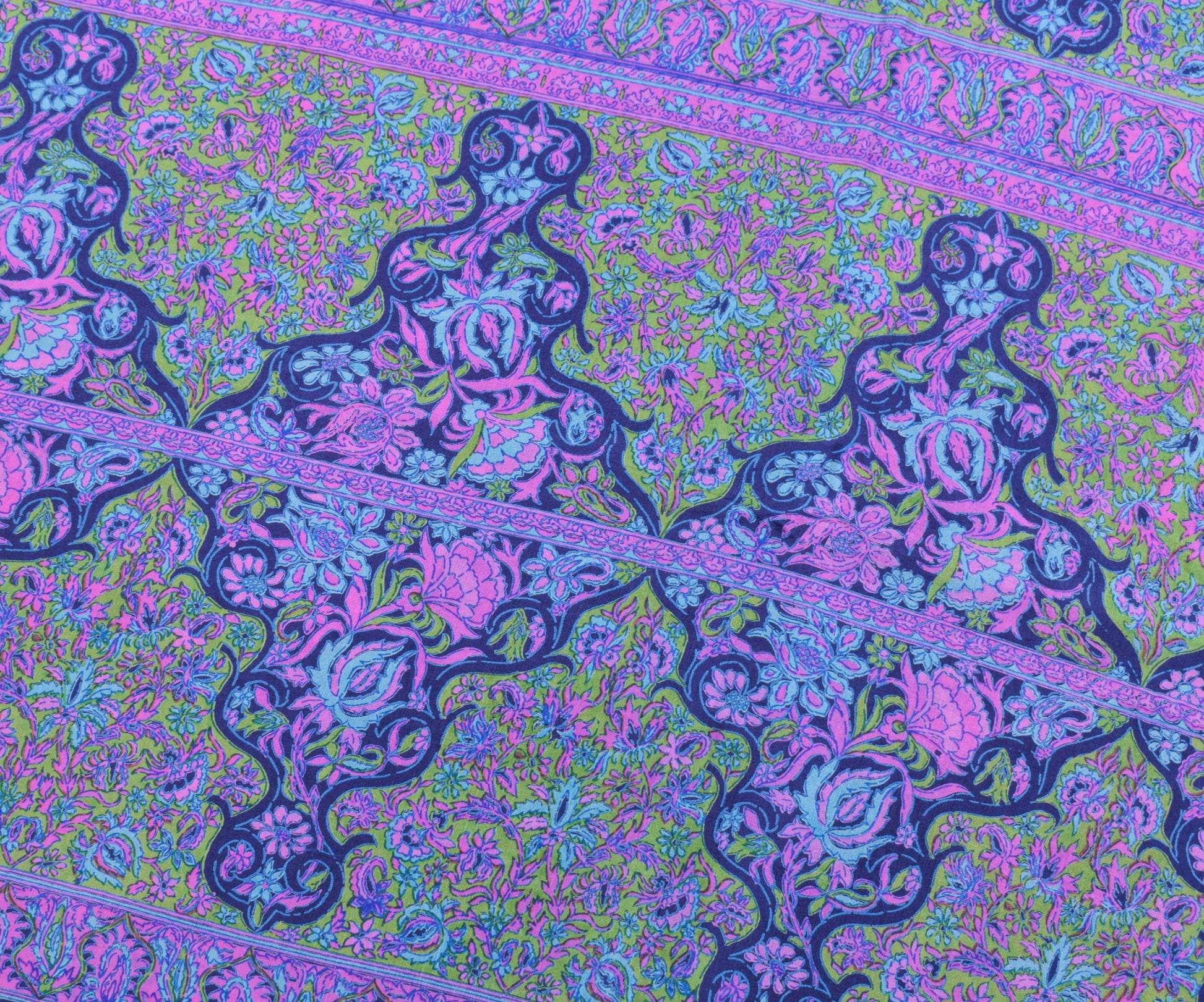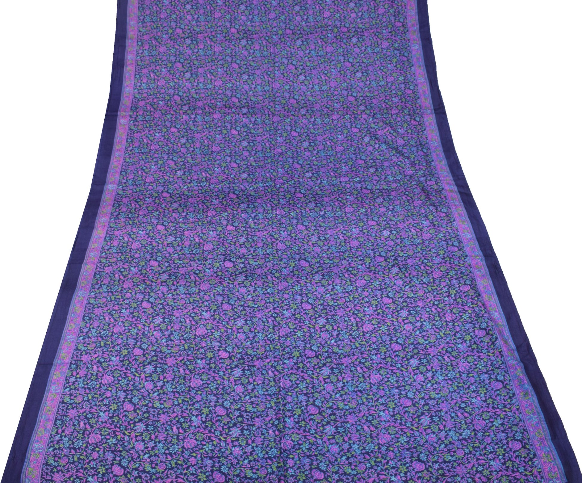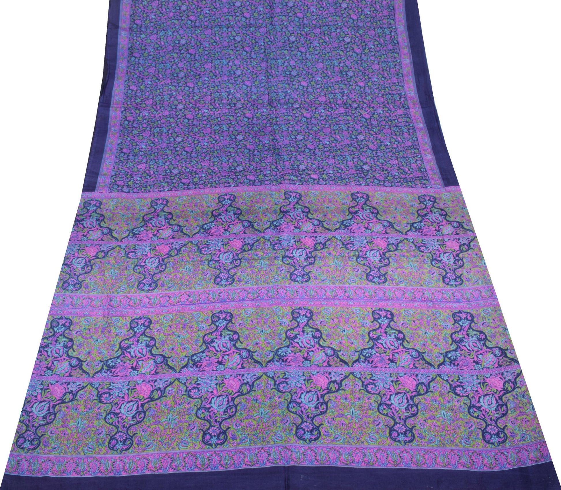 Sushila Vintage Floral Saree 100% Pure Silk Printed Blue Sari Soft Craft Fabric