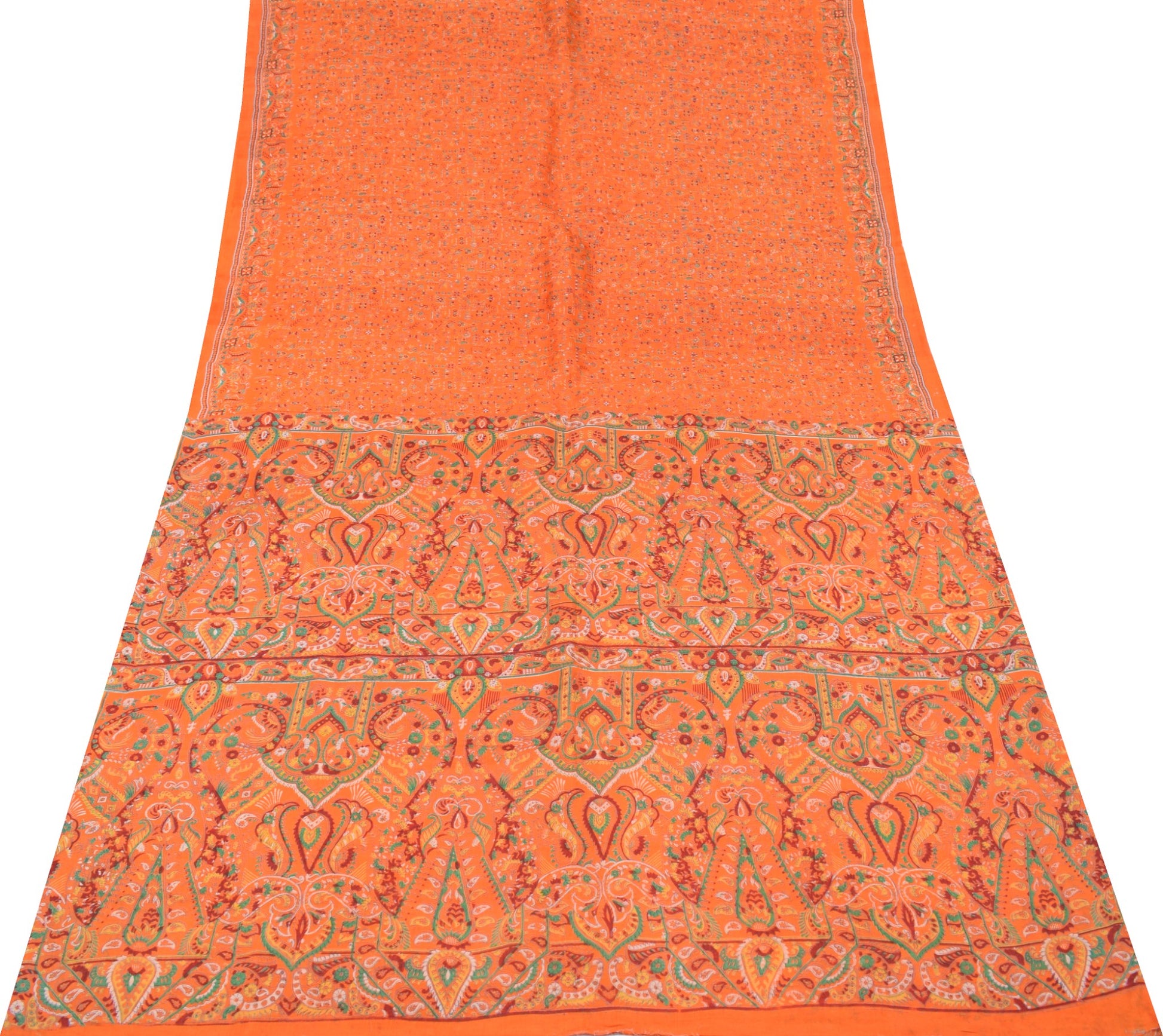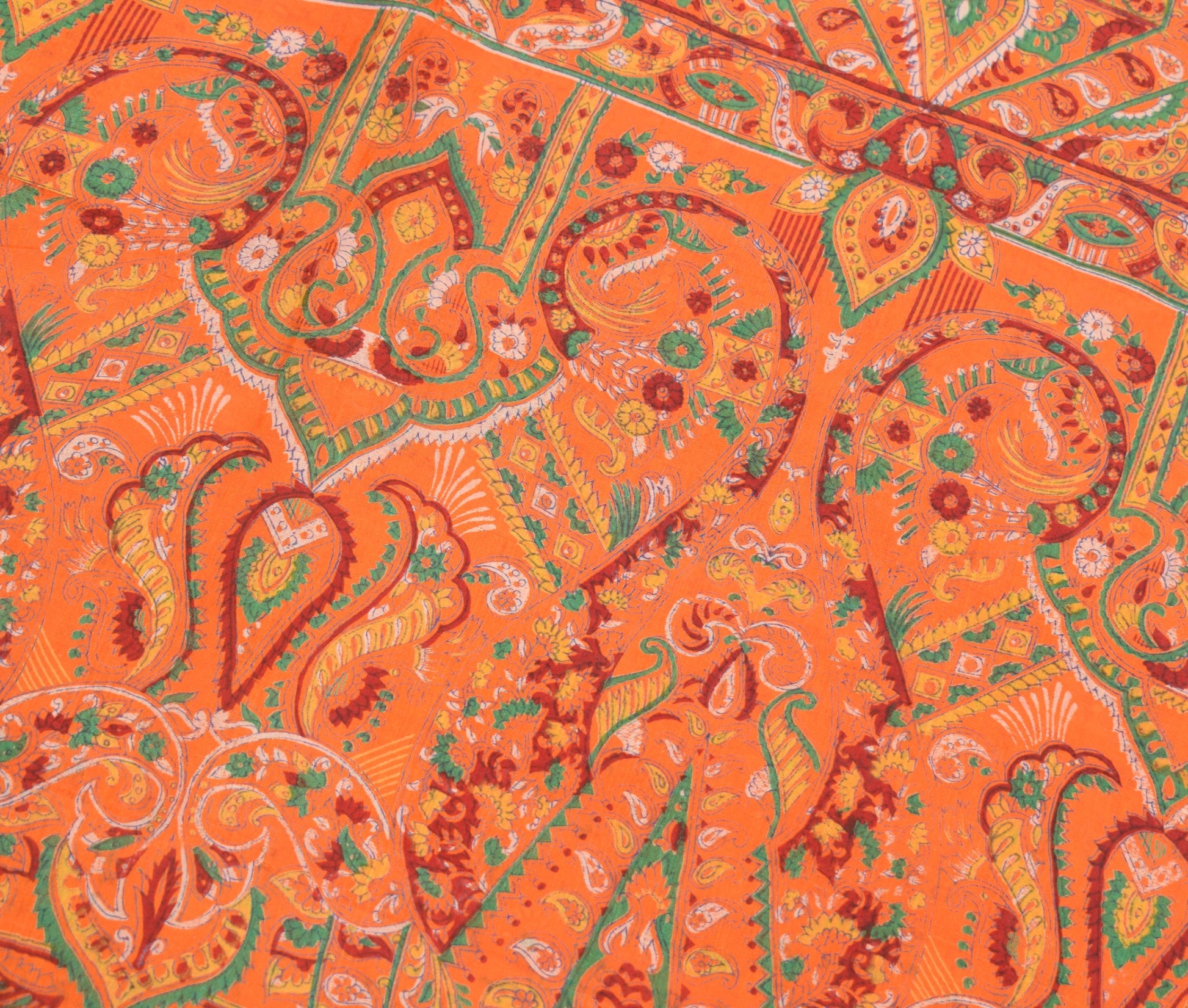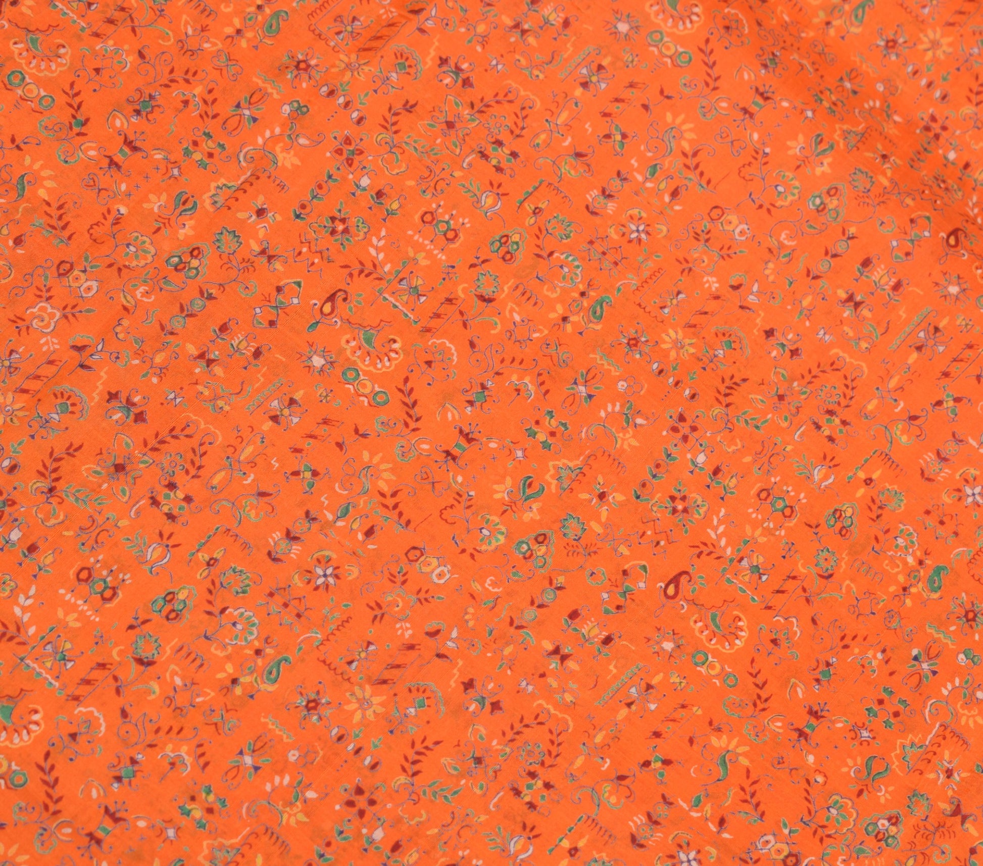Sushila Vintage Floral Saree 100% Pure Silk Printed Soft Craft Orange Fabric