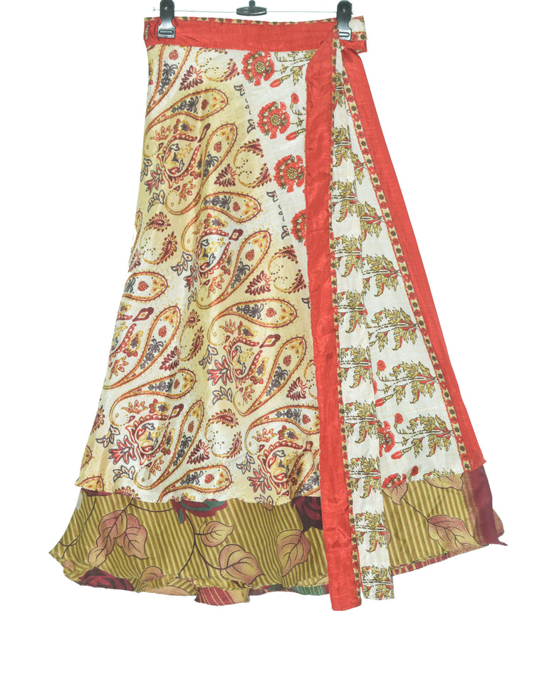 This reversible 2‑Layer Magic Wrap Skirt is crafted from pre‑owned vintage Art or Artificial Silk saree fabric, showcasing a charming as per images floral pattern for a perfect blend of style and sustainability. Ideal for beach outings, casual wear, or versatile styling, these skirts are lightweight, comfortable, and uniquely patterned. The vibrant designs and flowing fabric make them ideal for pairing with shirts, T‑shirts, or Kurtis. These skirts can be styled in multiple ways, offering endless possibilities for fashion enthusiasts. For styling ideas, simply search for "magic wrap skirt tutorial" on YouTube.