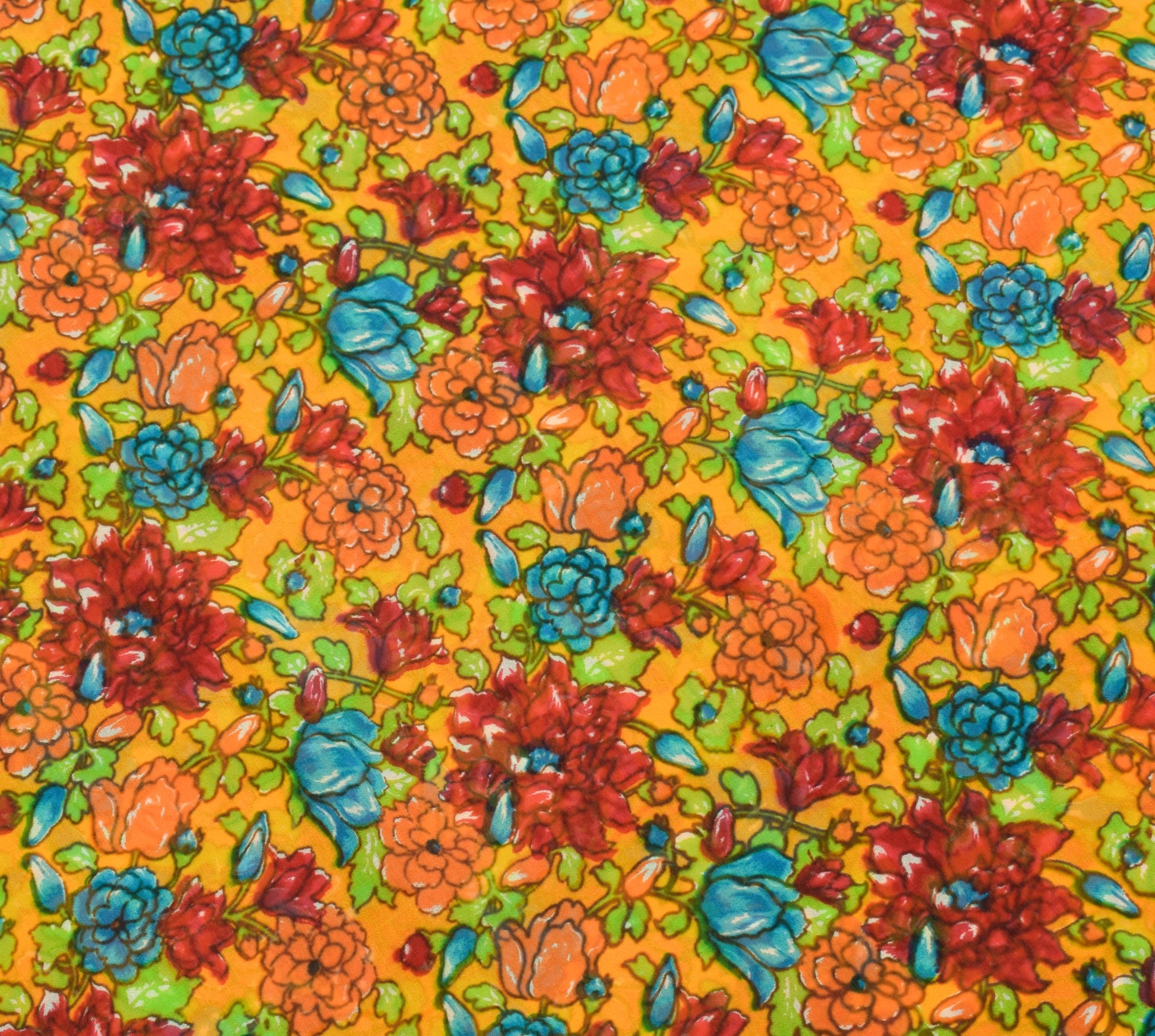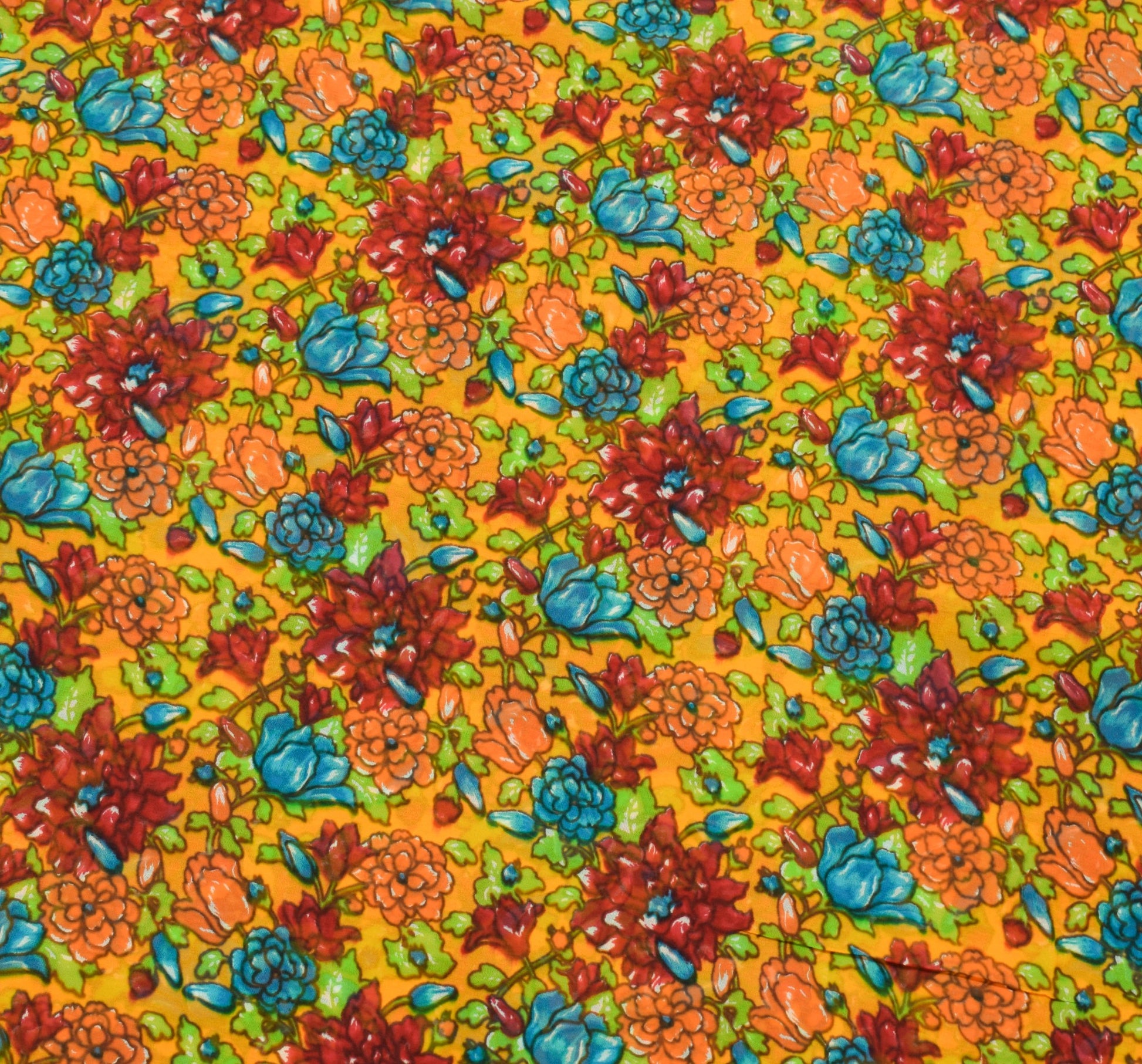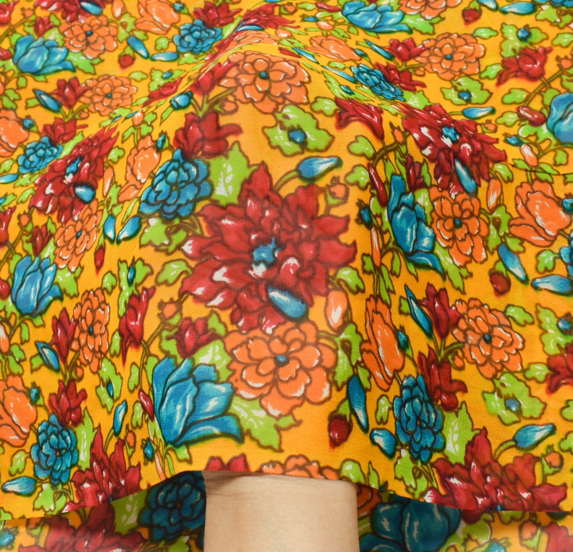 Sushila Vintage Floral Yellow Saree 100%Pure Georgette Silk Printed Craft Fabric