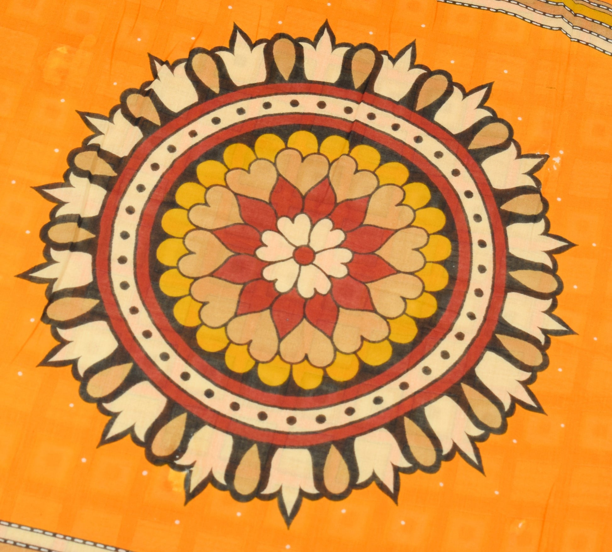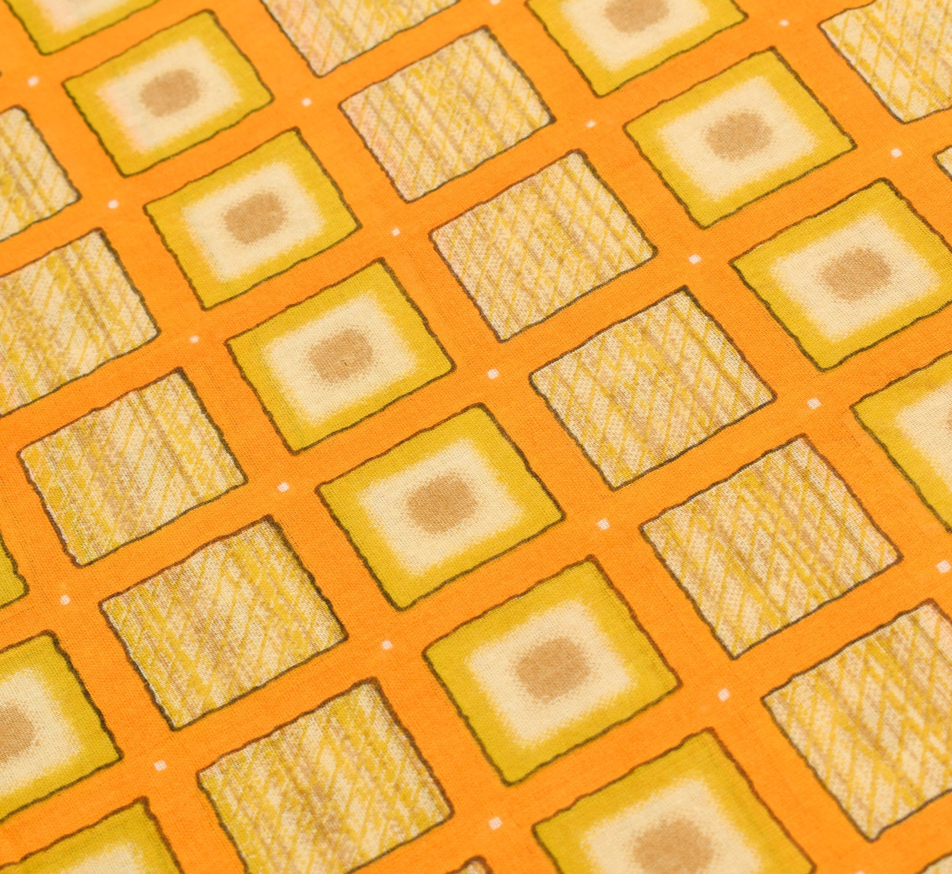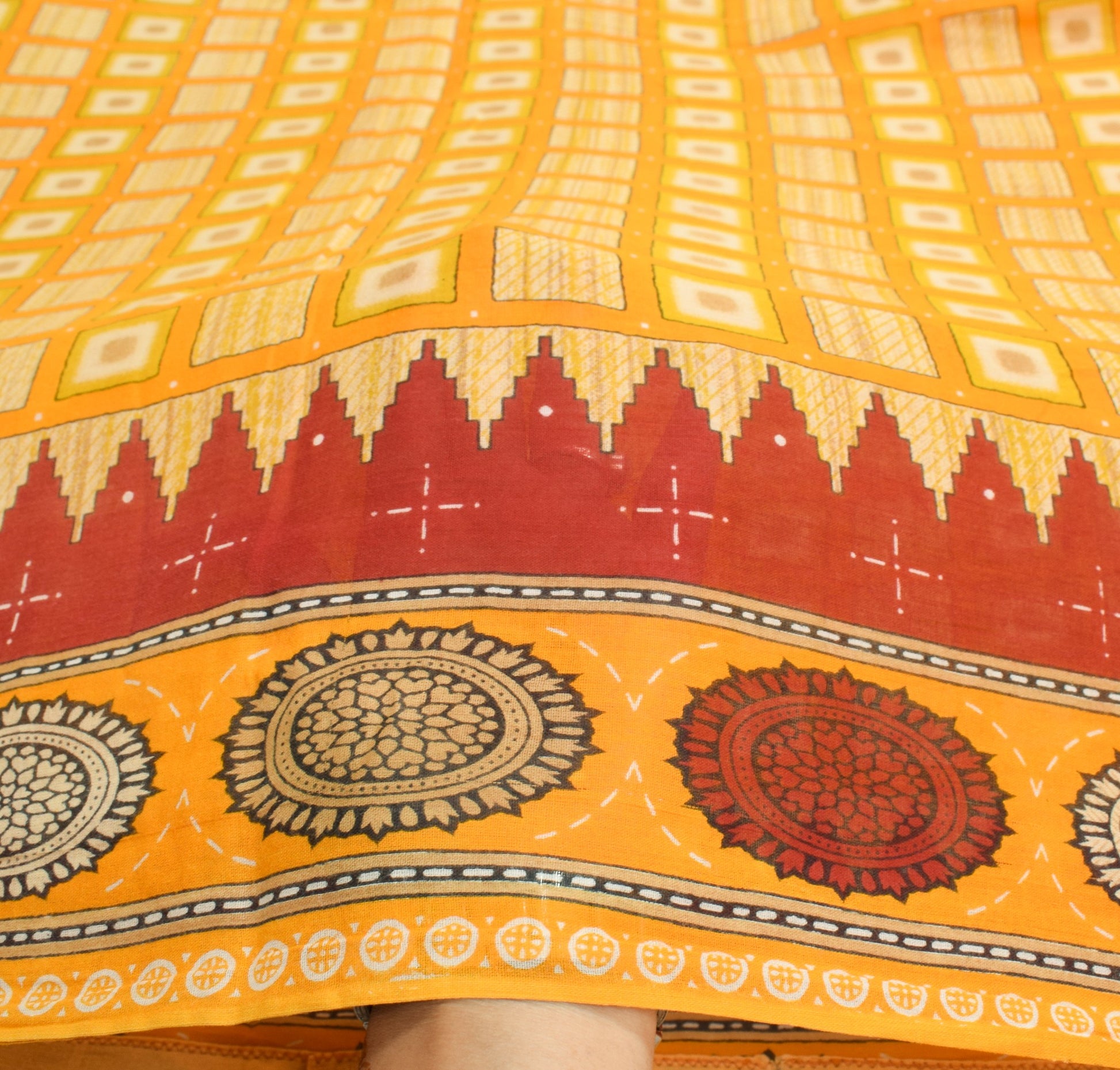 Sushila Vintage Geometric Yellow Saree 100%Pure Cotton Printed Soft Craft Fabric