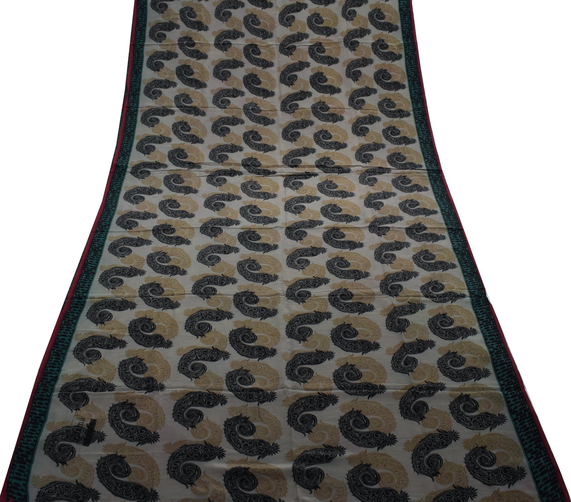 Sushila Vintage Gray Branded Saree 100% Pure Crepe Silk Printed Paisley Fabric