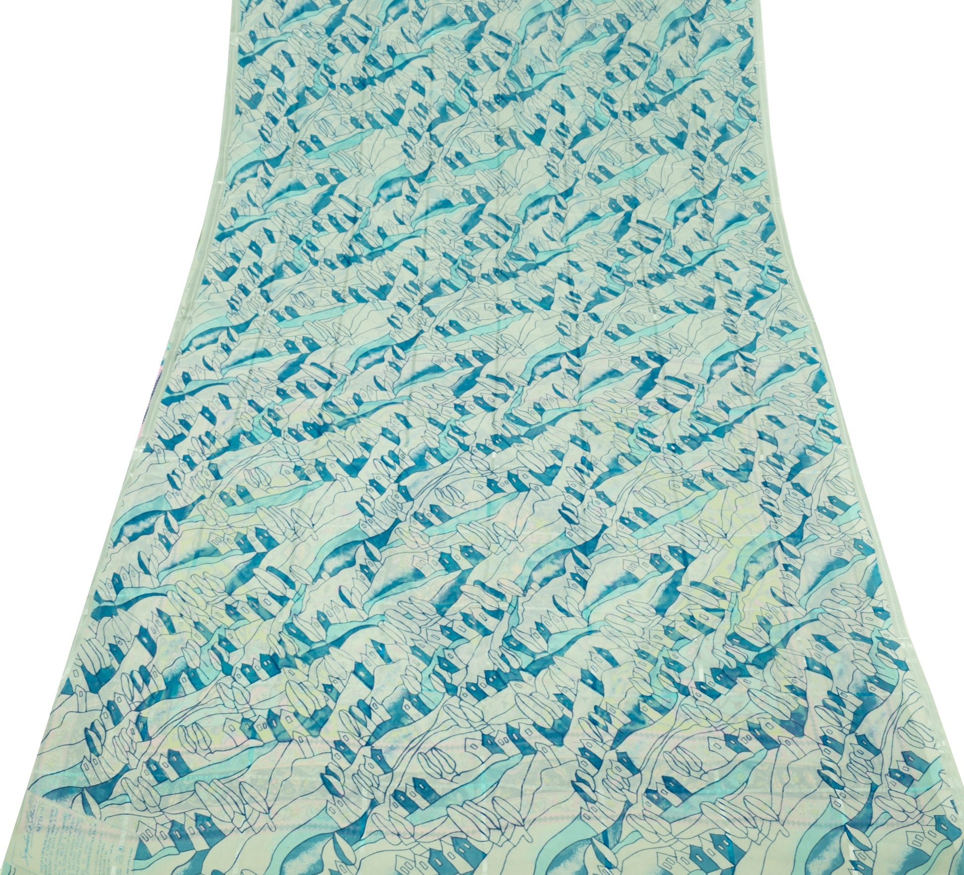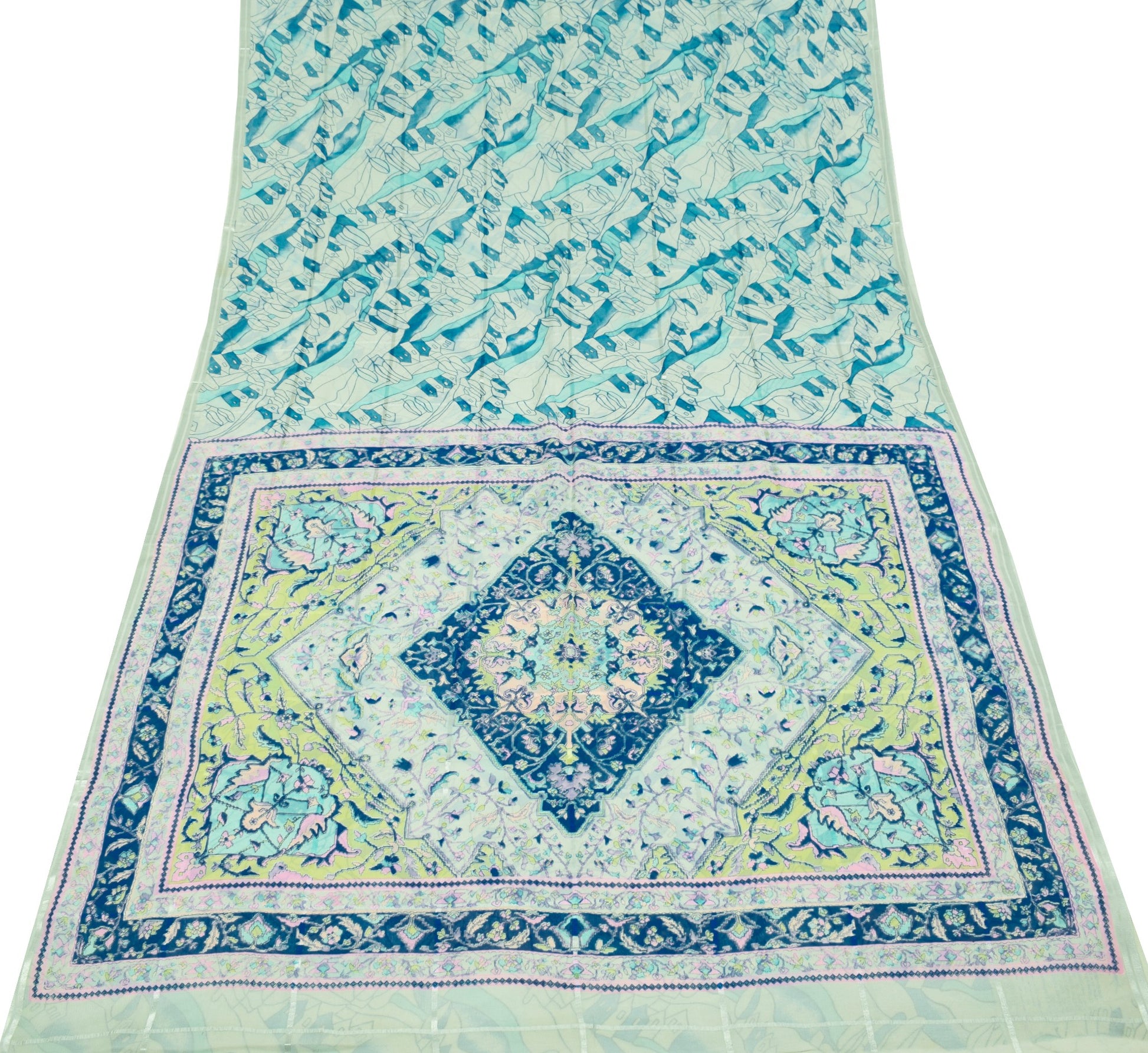 Sushila Vintage Gray BRANDED Saree Printed 100% Pure Chiffon Soft Craft Fabric