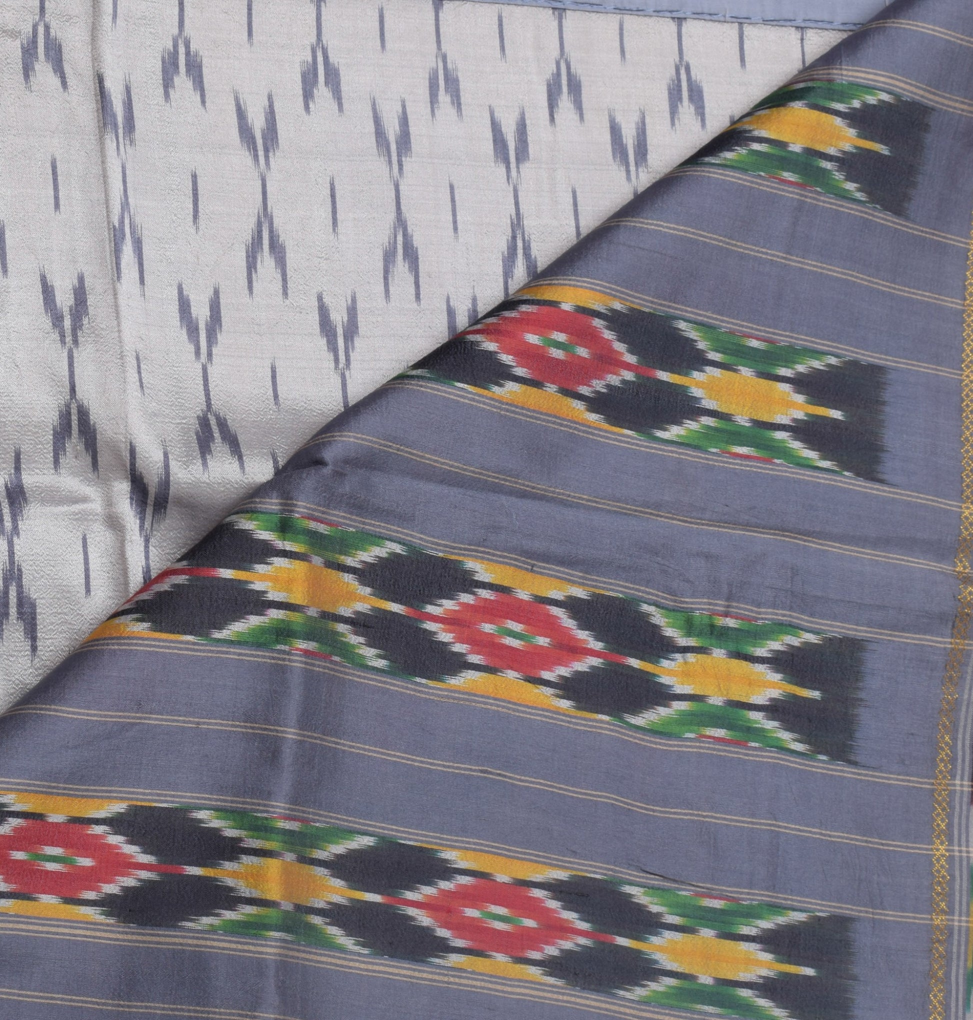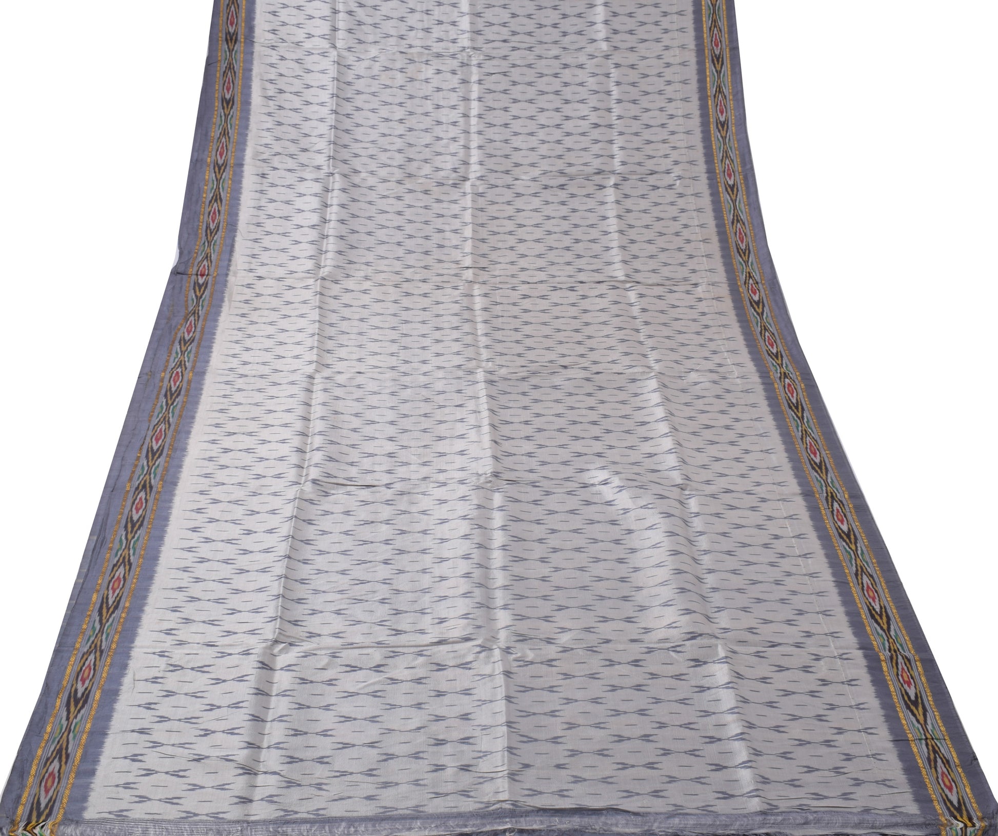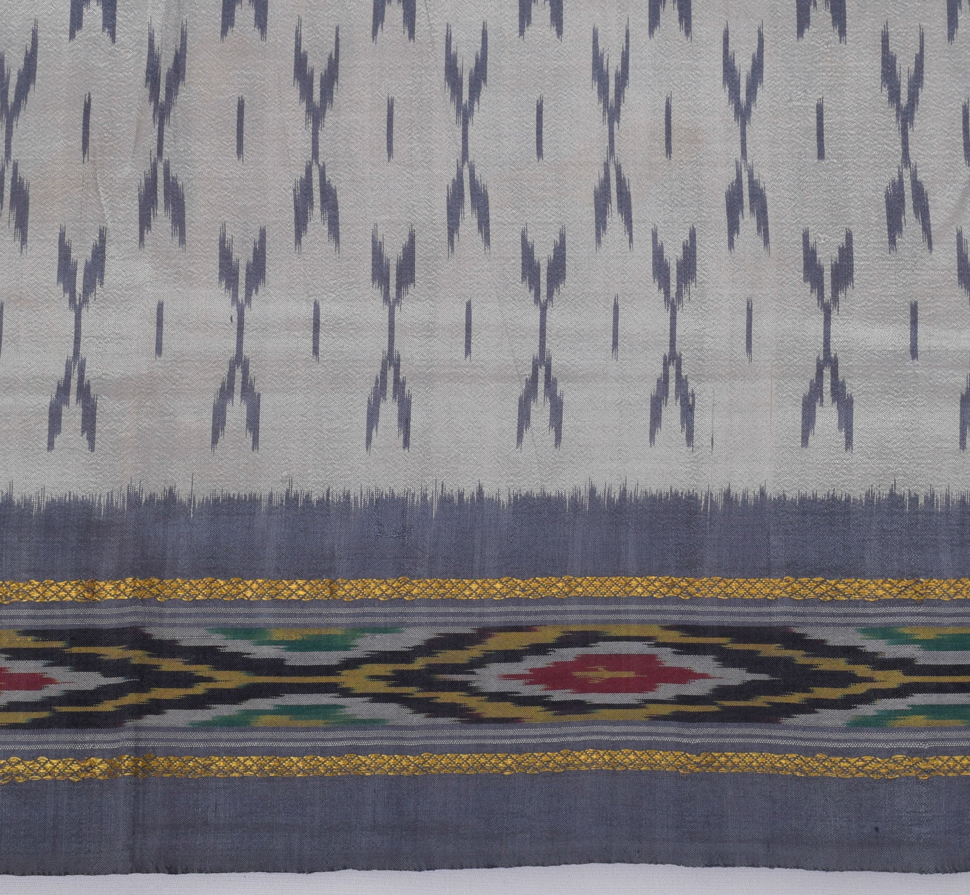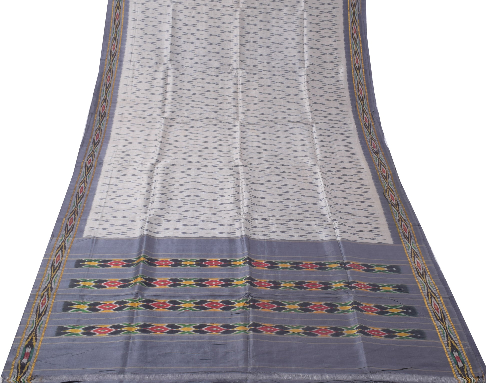 Sushila Vintage Gray Indian Saree 100% Pure Silk Woven Ikkat Patola Sari Fabric