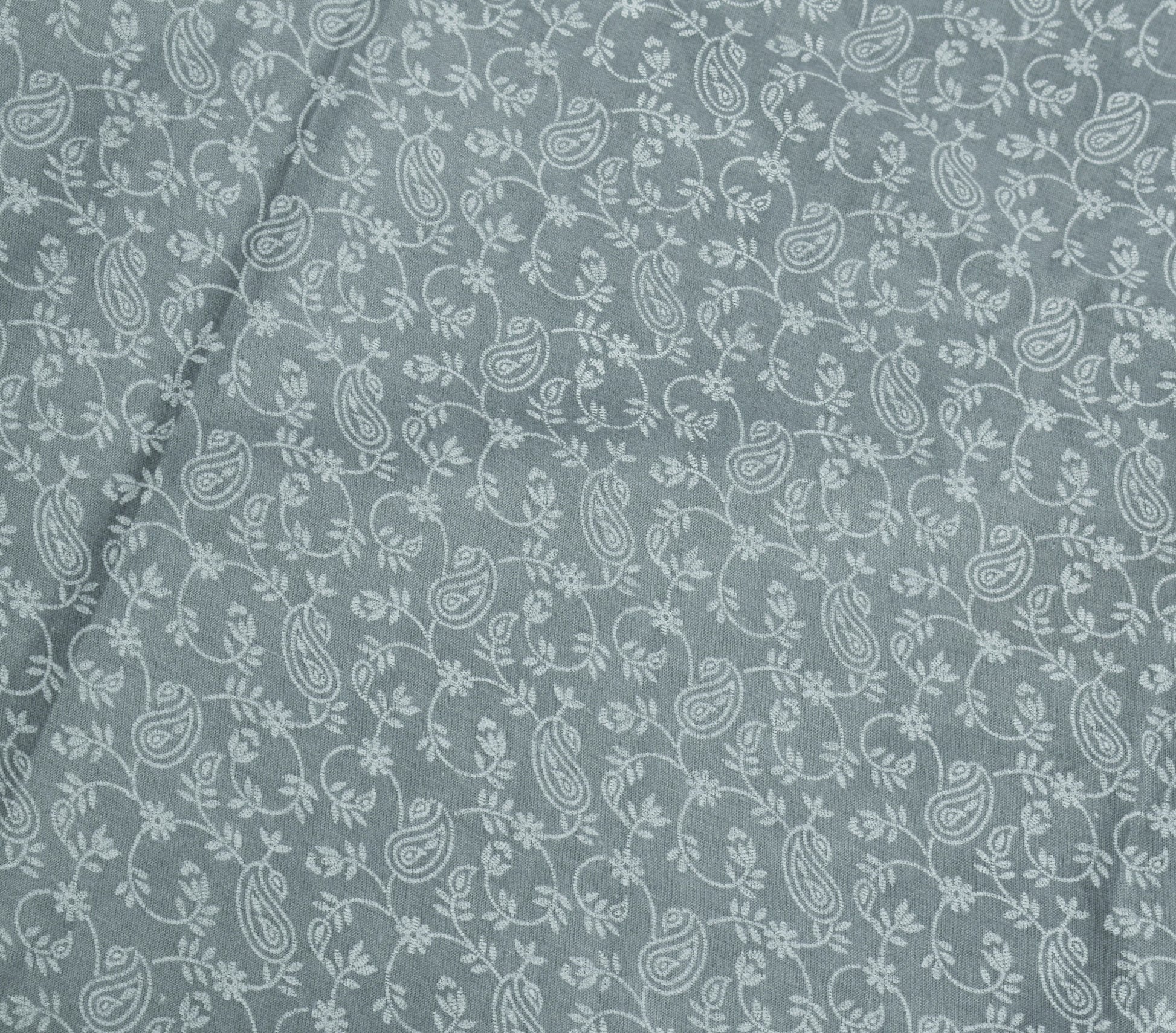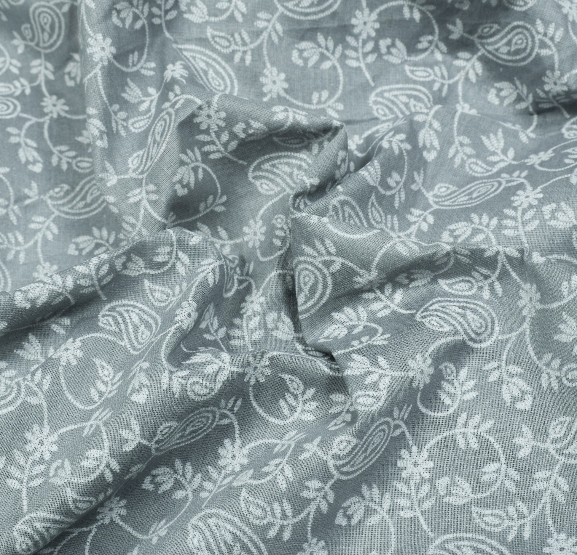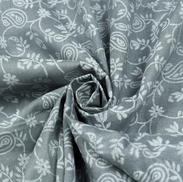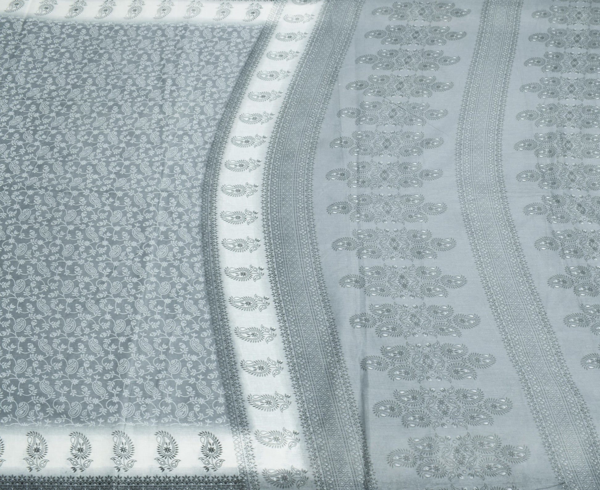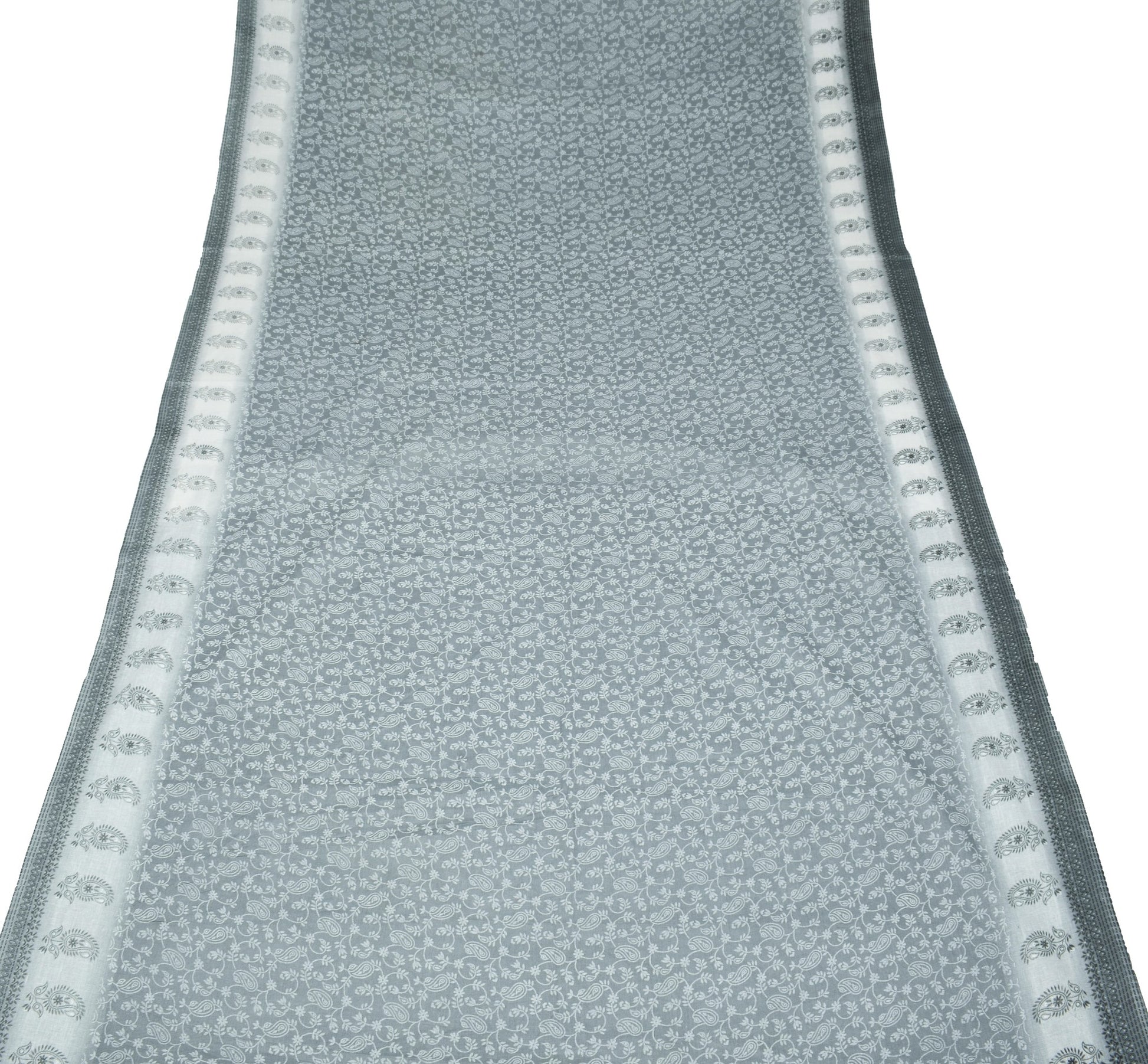 Sushila Vintage Gray Saree 100%Pure Cotton Floral & Paisley Printed Craft Fabric