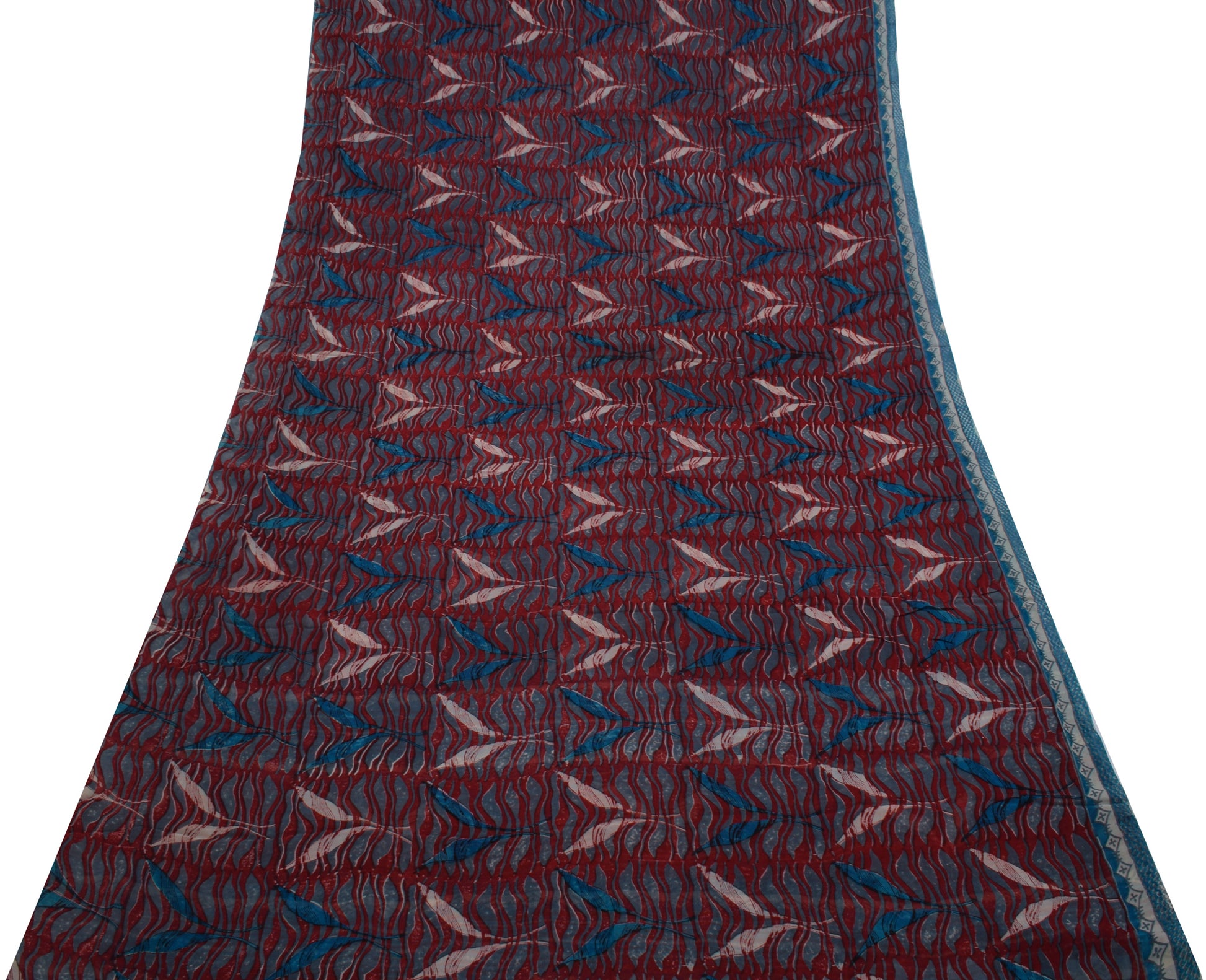 Sushila Vintage Gray Saree 100% Pure Georgette Silk Printed 5 Yard Craft Fabric