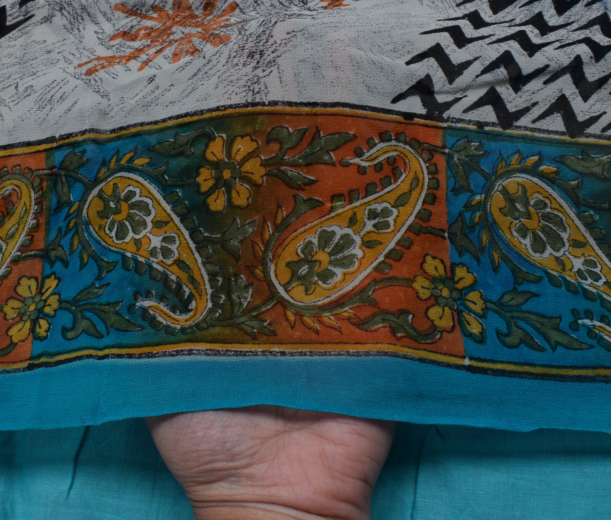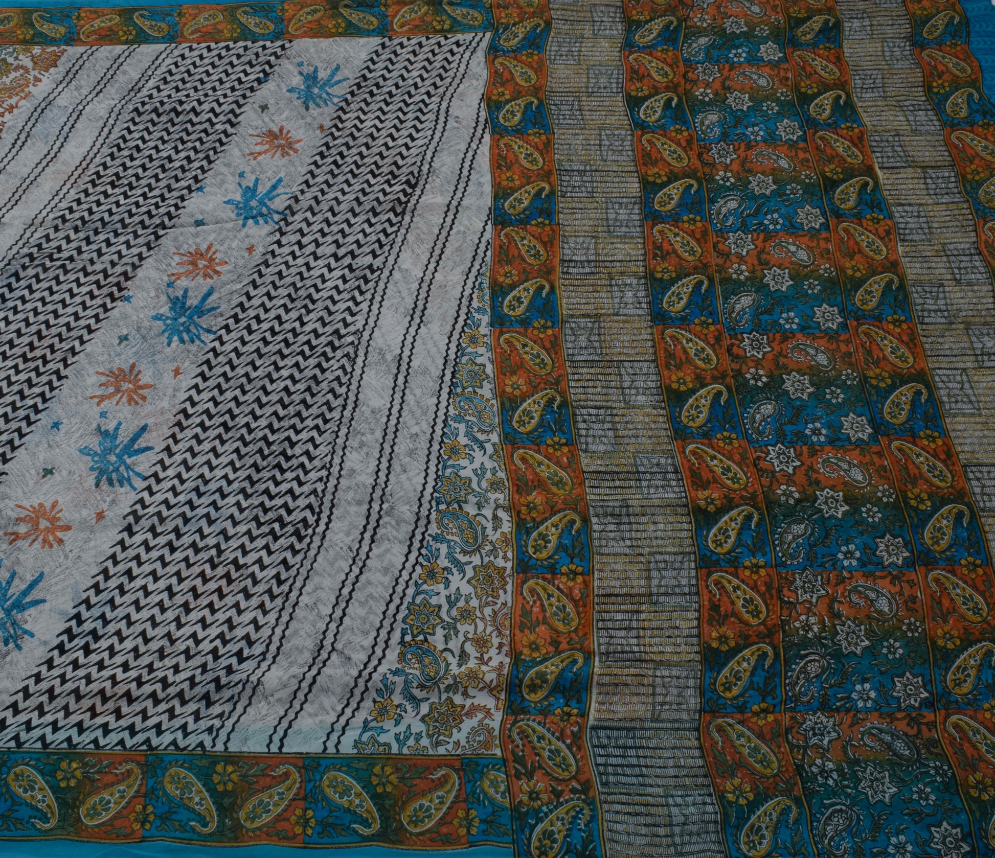 Sushila Vintage Gray Saree 100% Pure Georgette Silk Printed Floral Craft Fabric