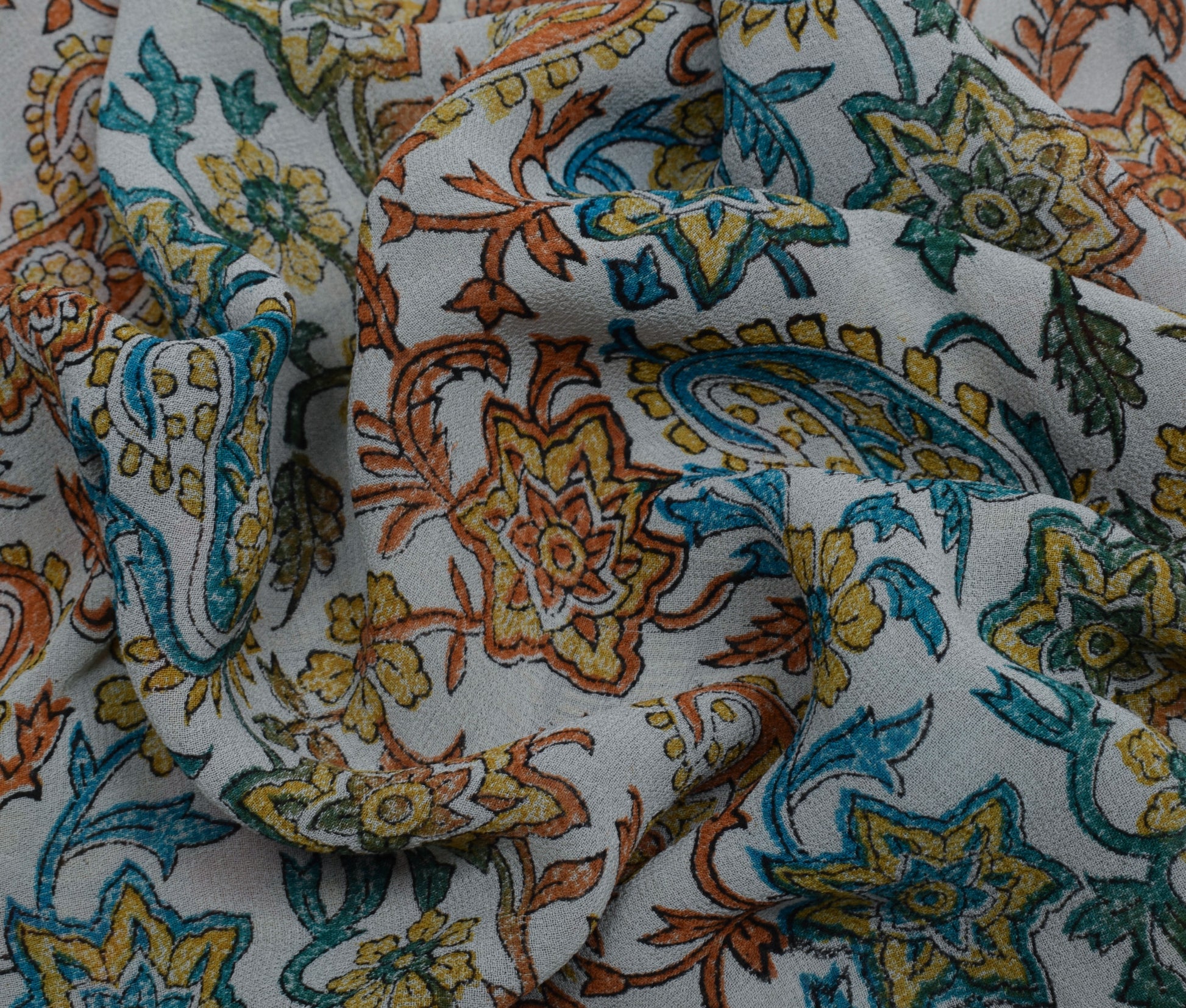 - Base Material/Fabric: 100% Pure Georgette Silk