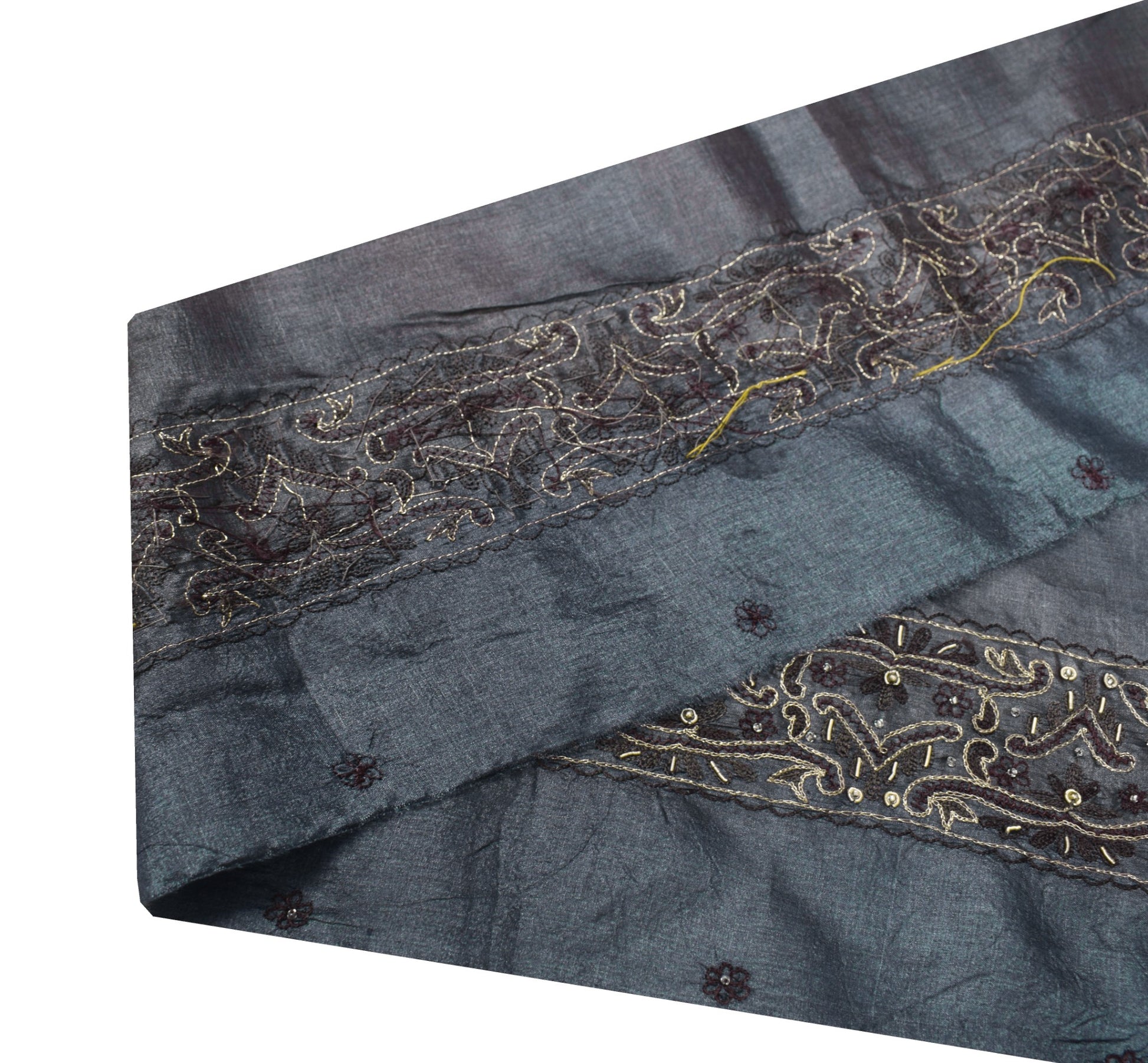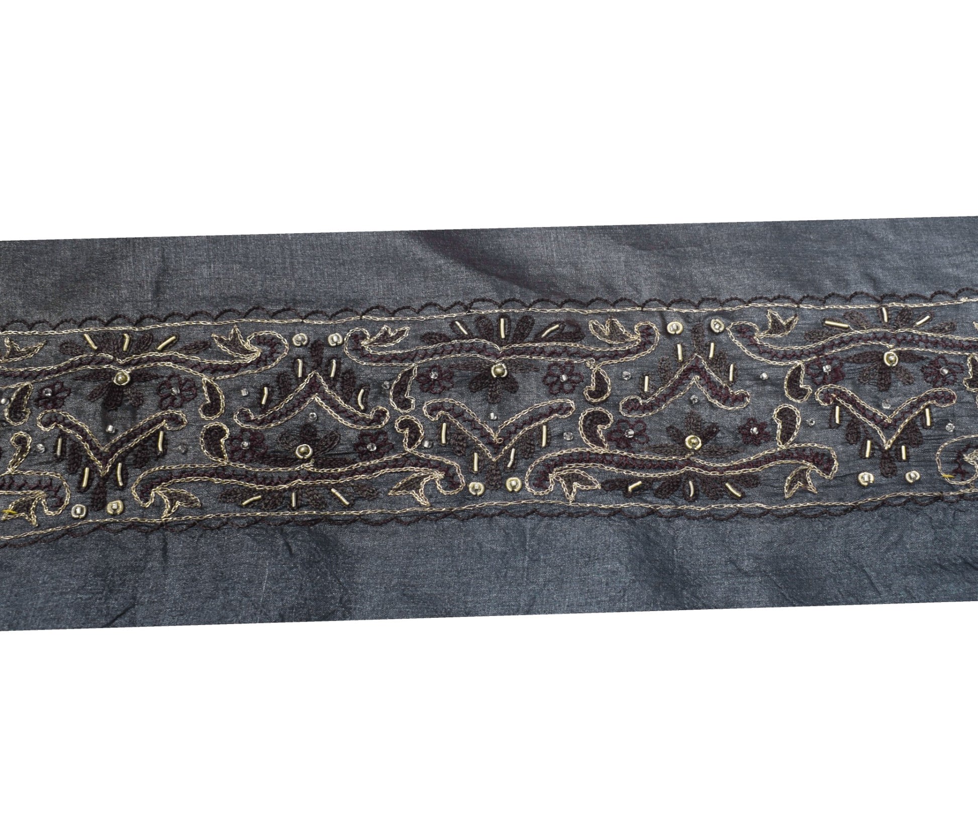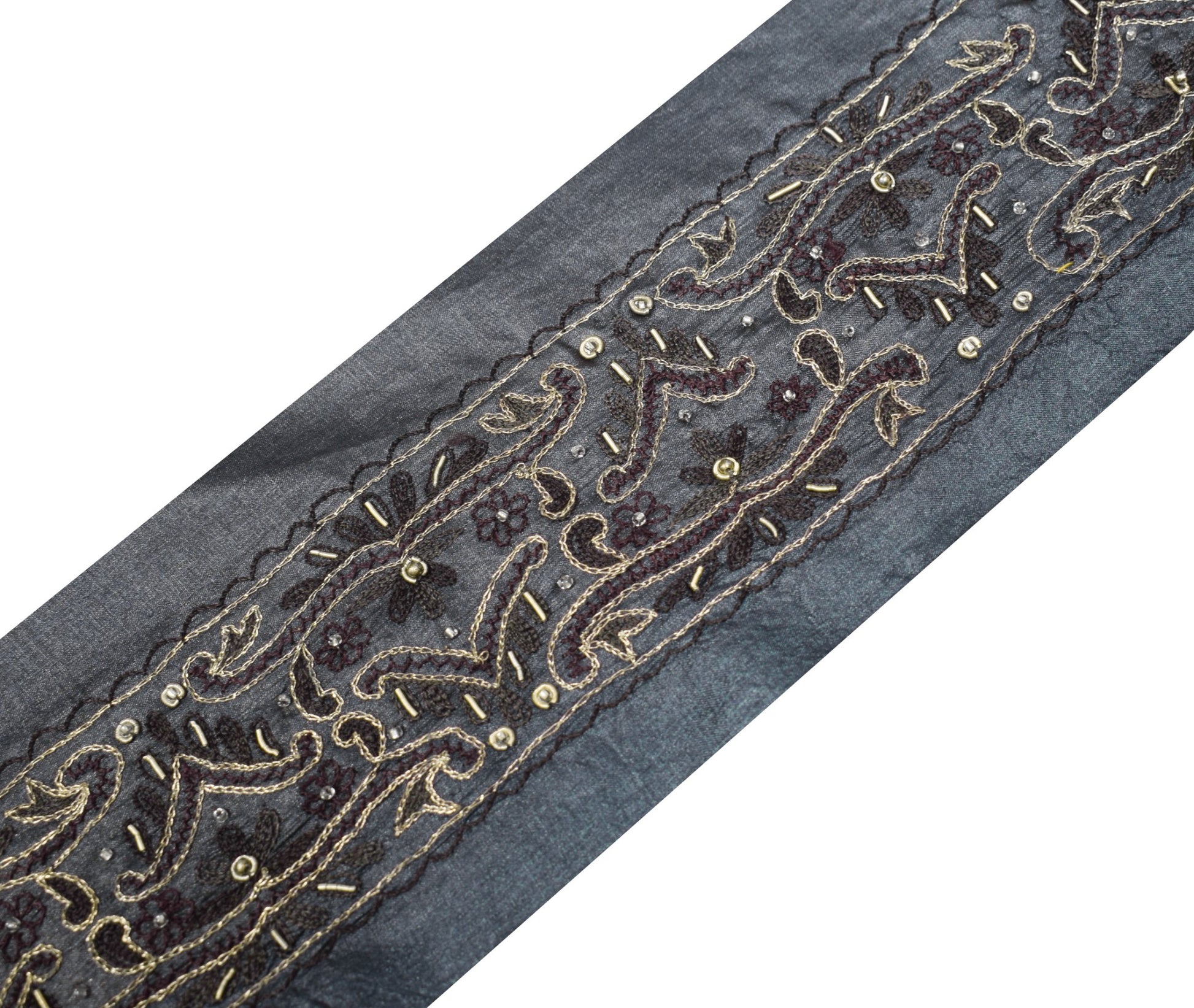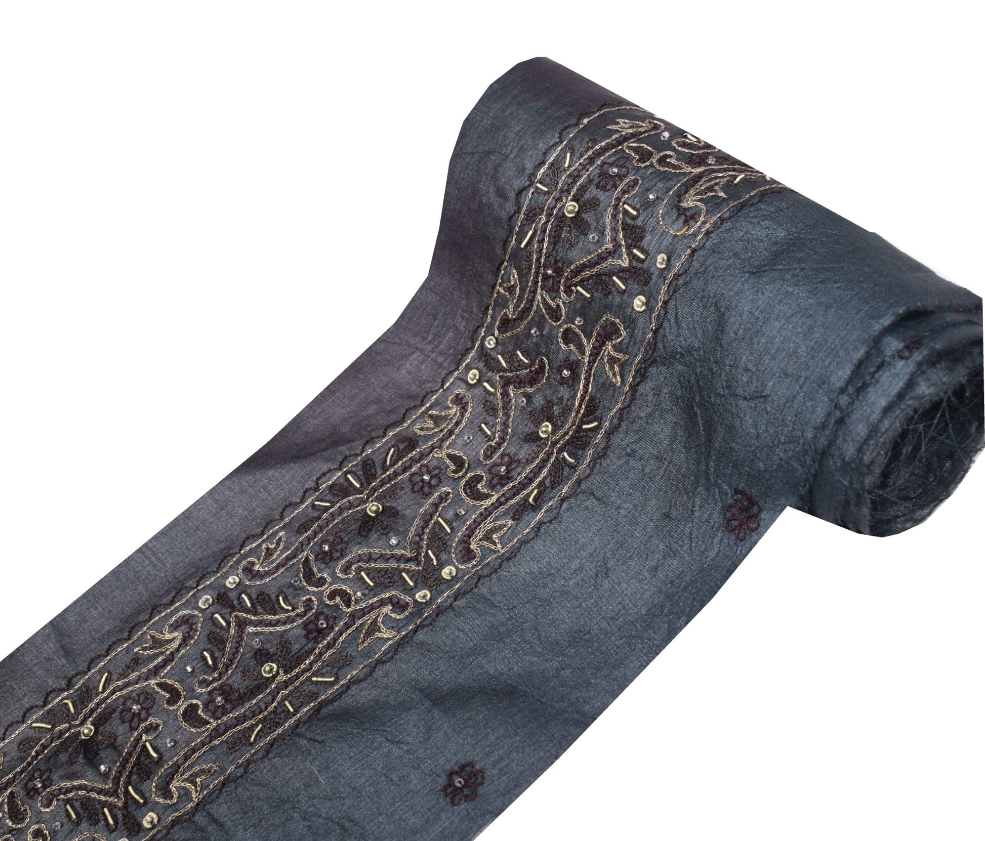 Sushila Vintage Gray Saree Border Pure Tussar Craft Sewing Trim Embroidery Lace