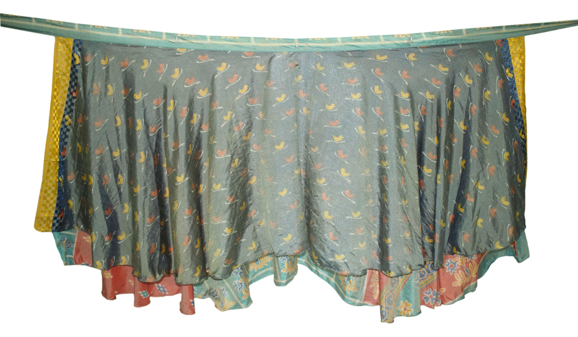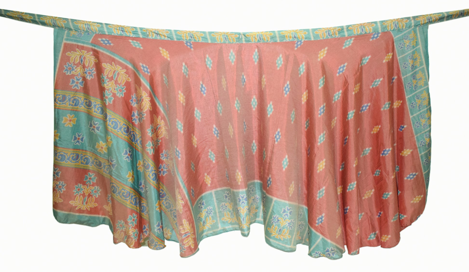 This reversible 2‑Layer Magic Wrap Skirt is crafted from pre‑owned vintage Art or Artificial Silk saree fabric, showcasing a charming gray as per images pattern for a perfect blend of style and sustainability. Ideal for beach outings, casual wear, or versatile styling, these skirts are lightweight, comfortable, and uniquely patterned. The vibrant designs and flowing fabric make them ideal for pairing with shirts, T‑shirts, or Kurtis. These skirts can be styled in multiple ways, offering endless possibilities for fashion enthusiasts. For styling ideas, simply search for "magic wrap skirt tutorial" on YouTube.