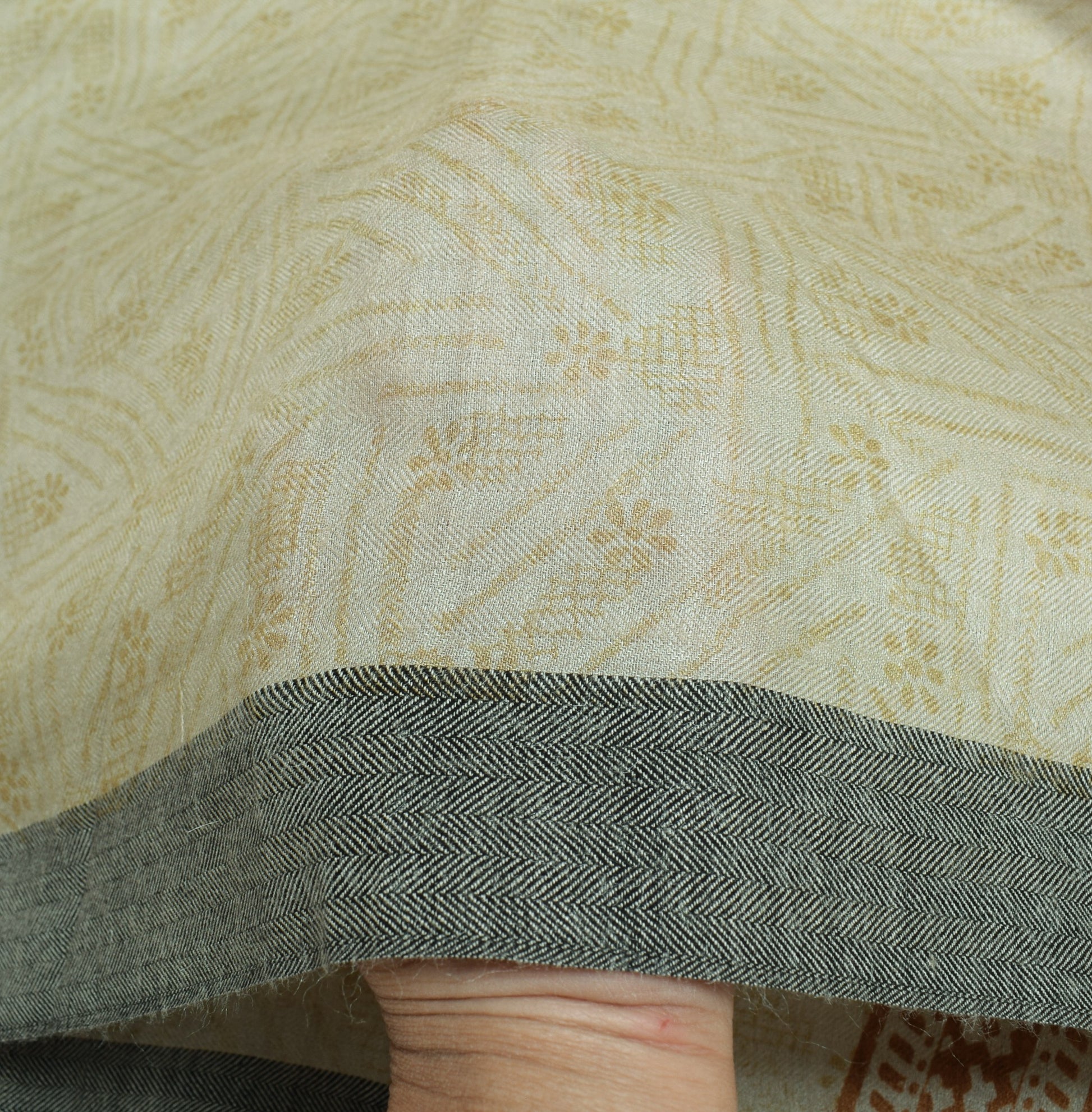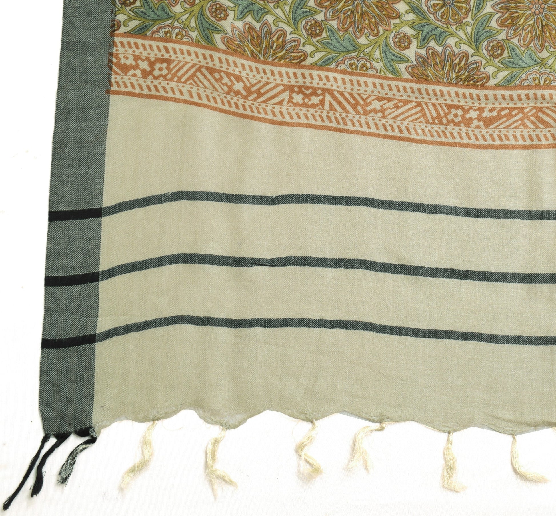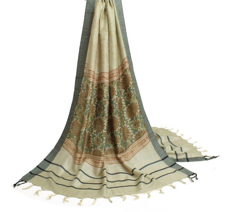 Sushila Vintage Gray Soft Dupatta Pure Woolen Printed Floral Long Stole Shawl
