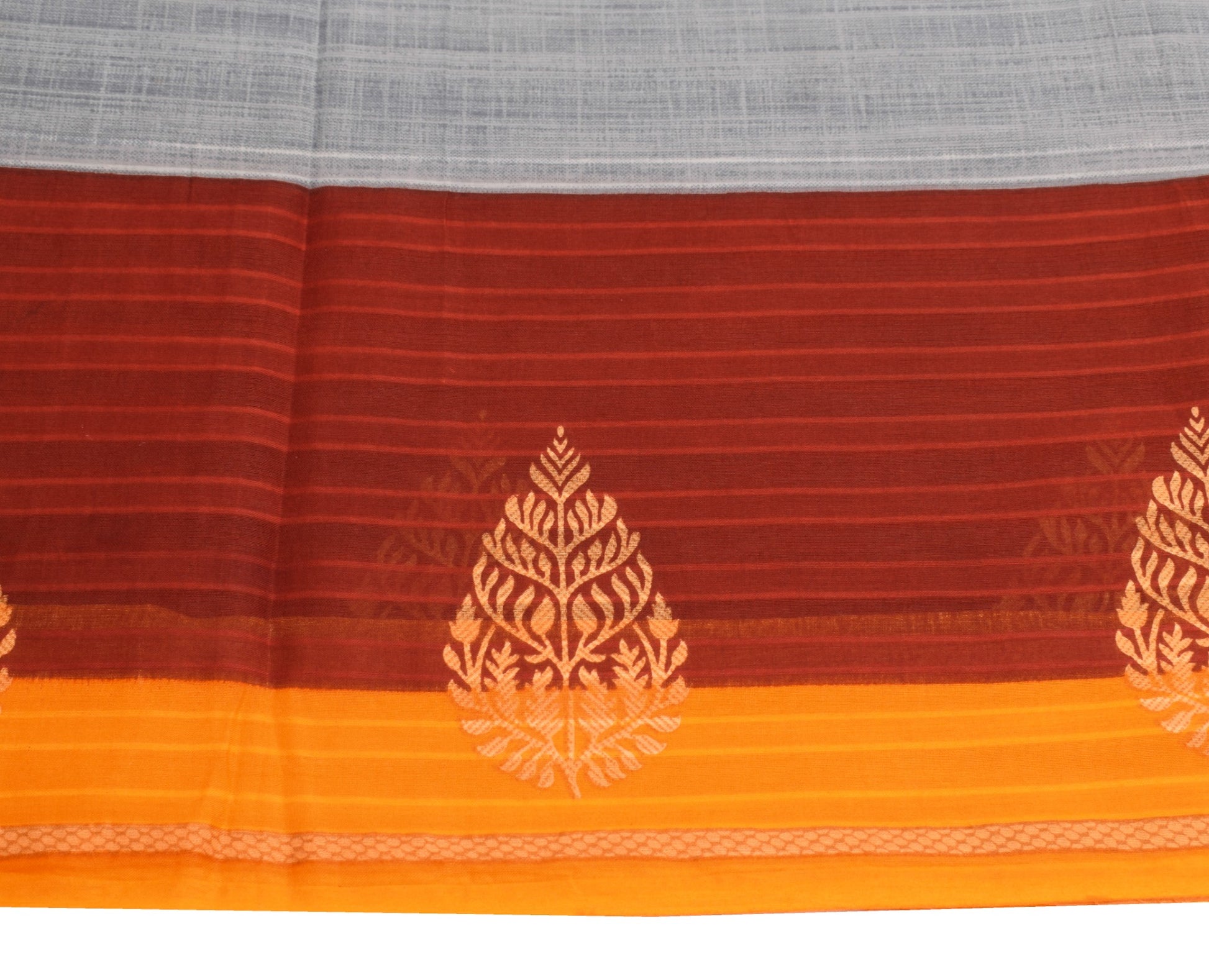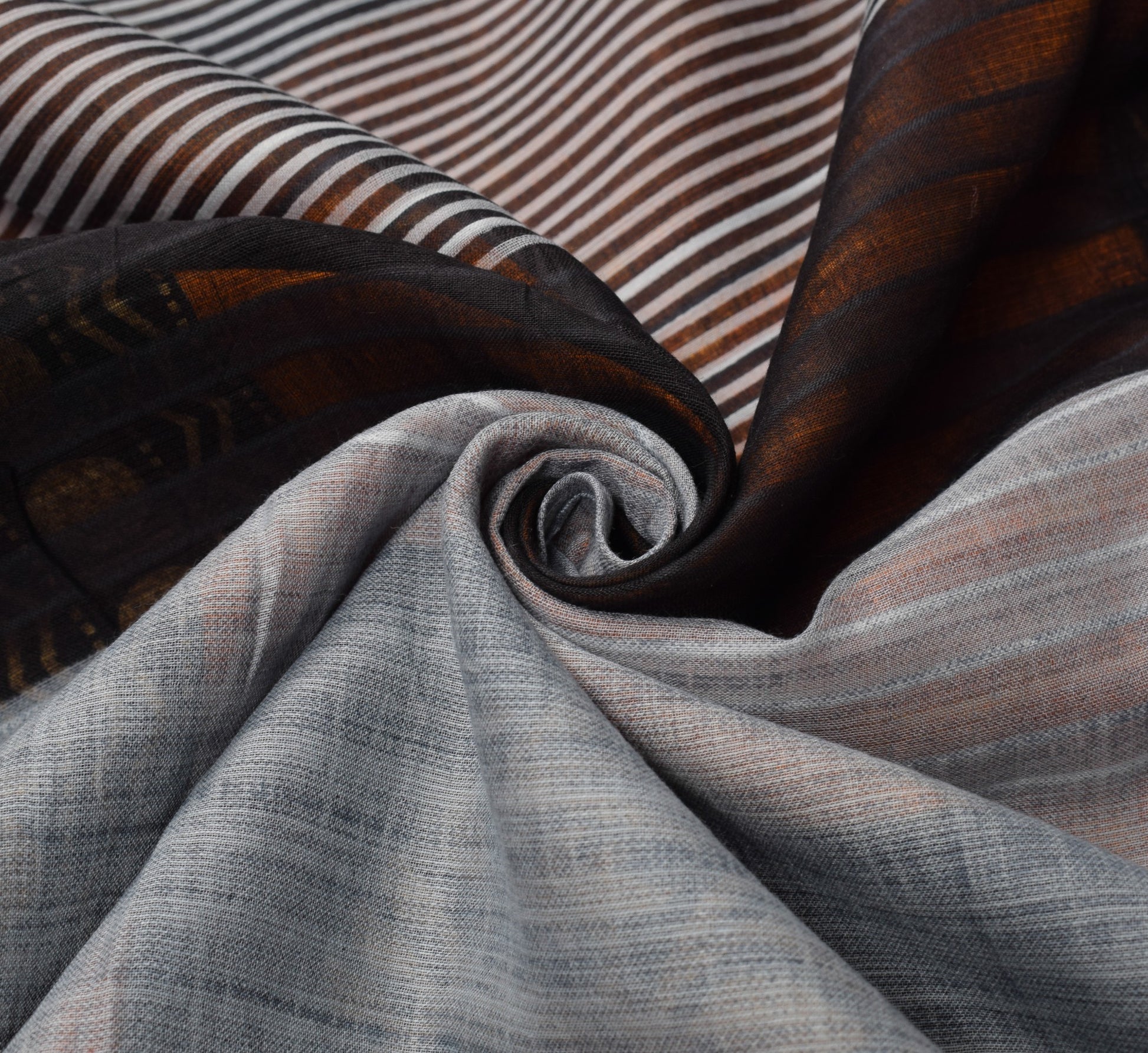 Sushila Vintage Gray Stripes Saree 100% Pure Cotton Printed Indian Craft Fabric