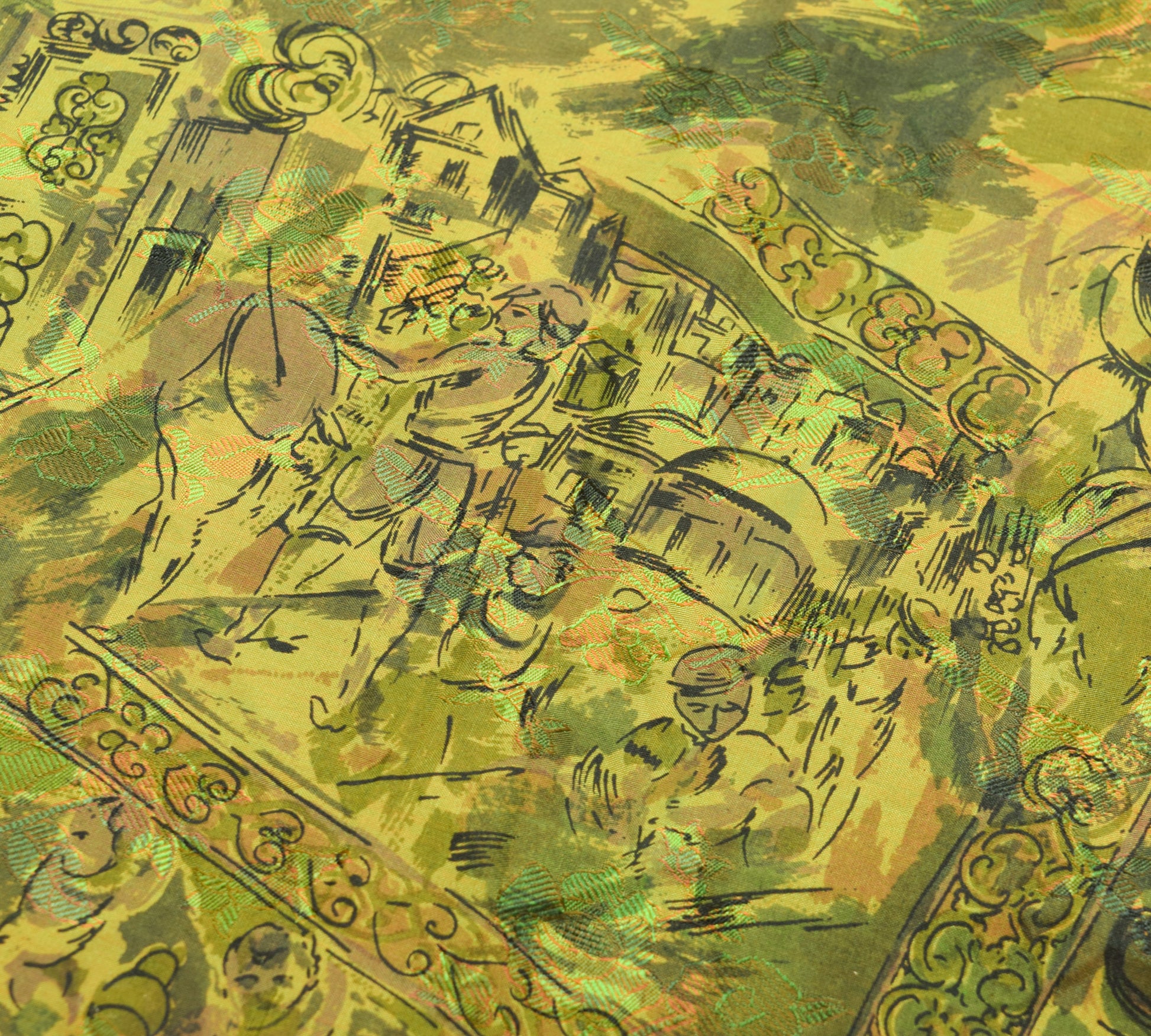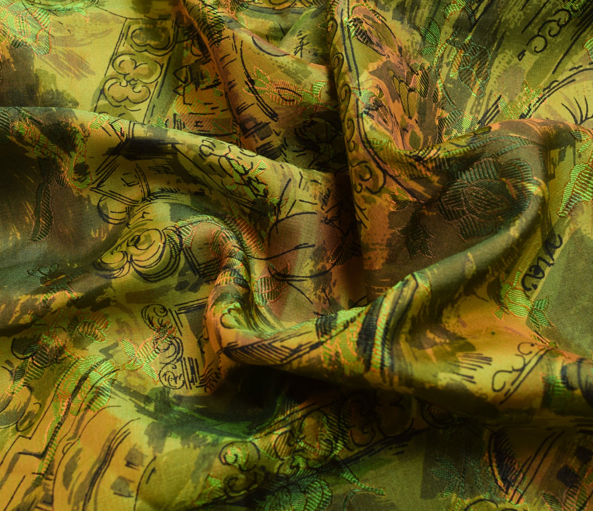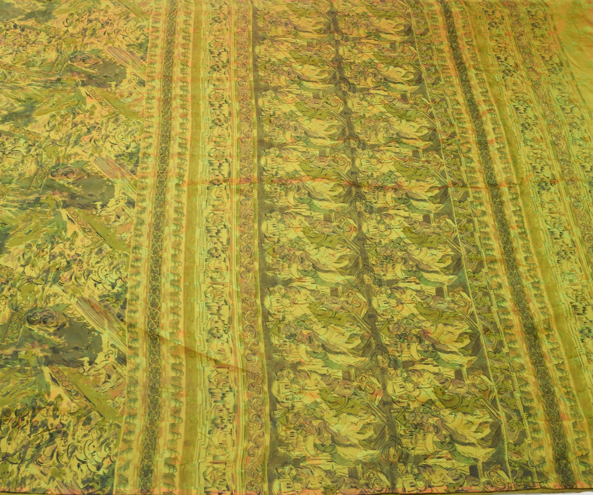 Sushila Vintage Green Antique Saree 100% Pure Silk Printed Soft Craft Fabric
