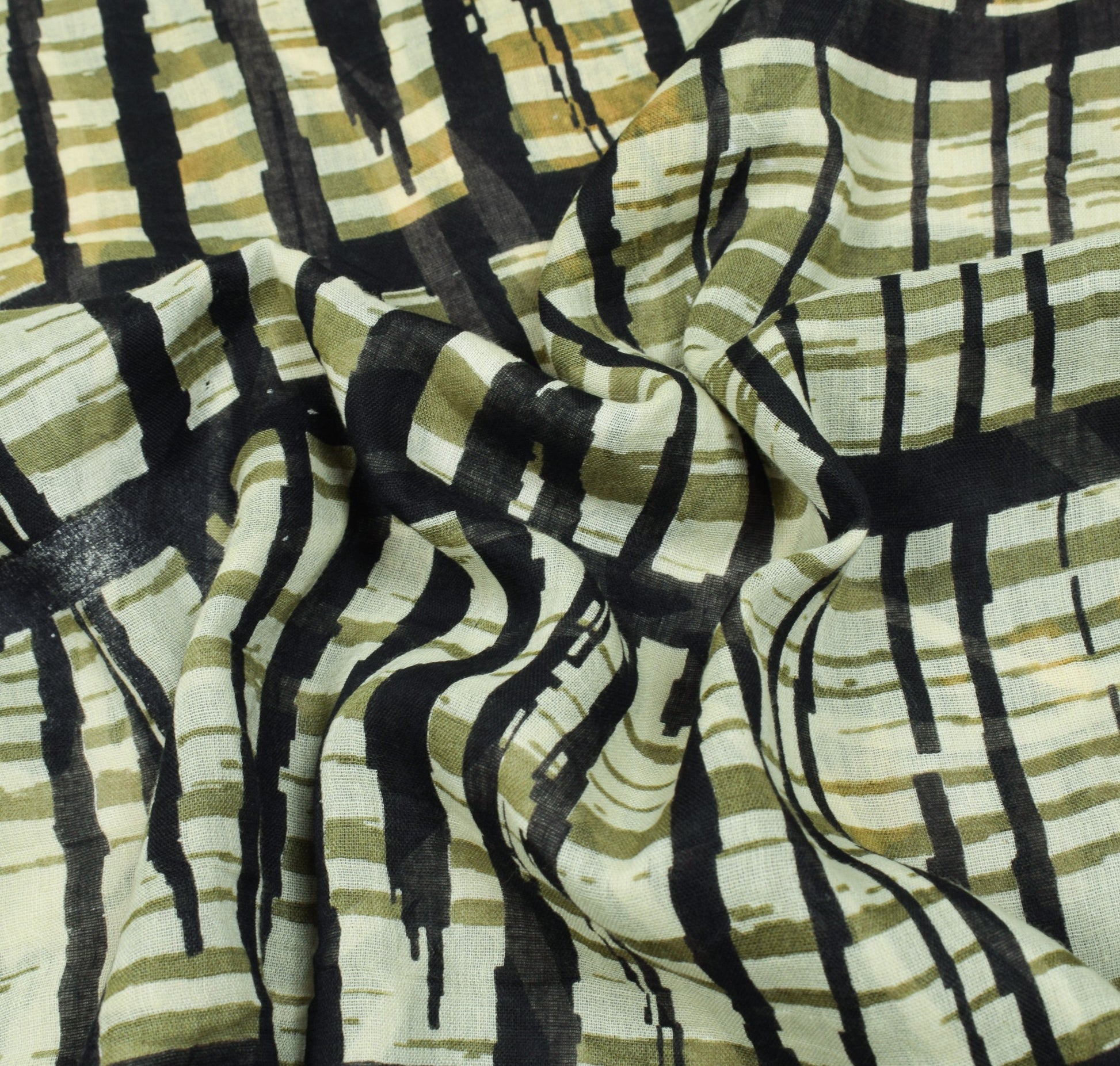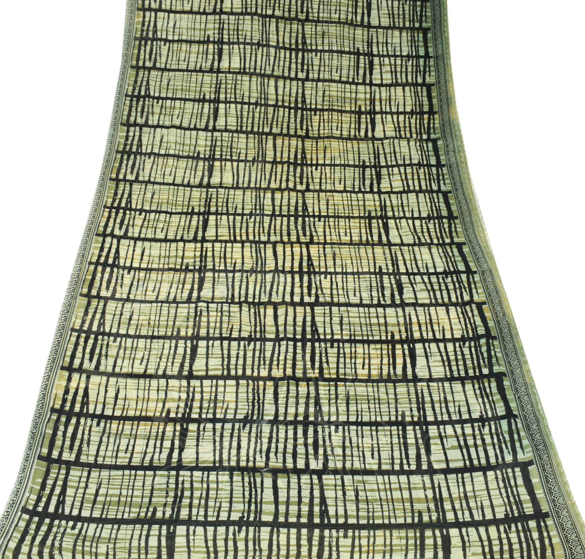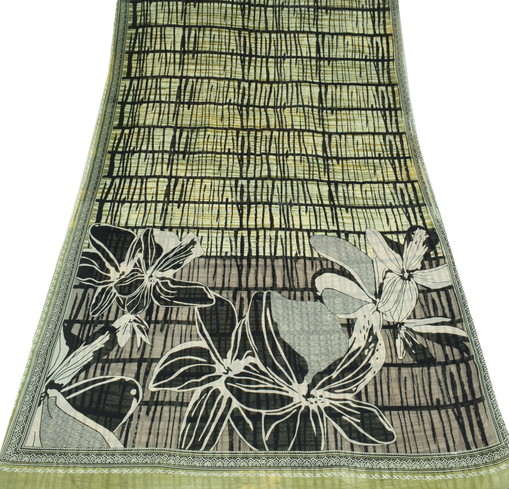 Sushila Vintage Green Black Saree Pure Cotton Printed Indian Soft Craft Fabric