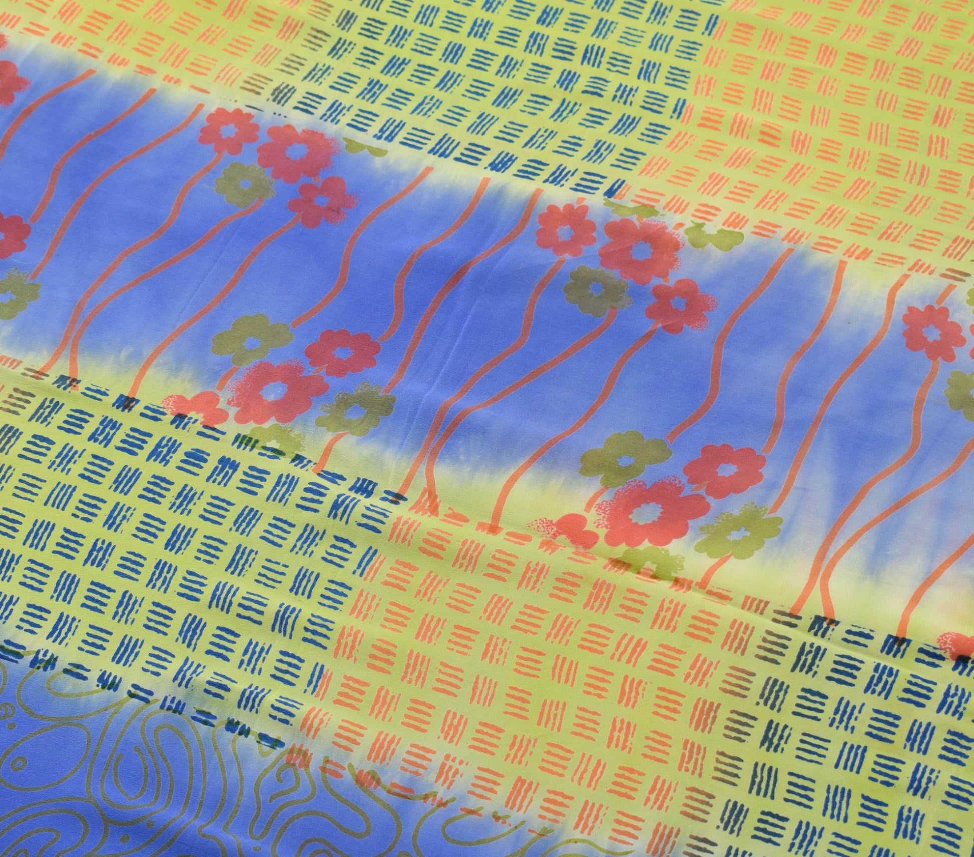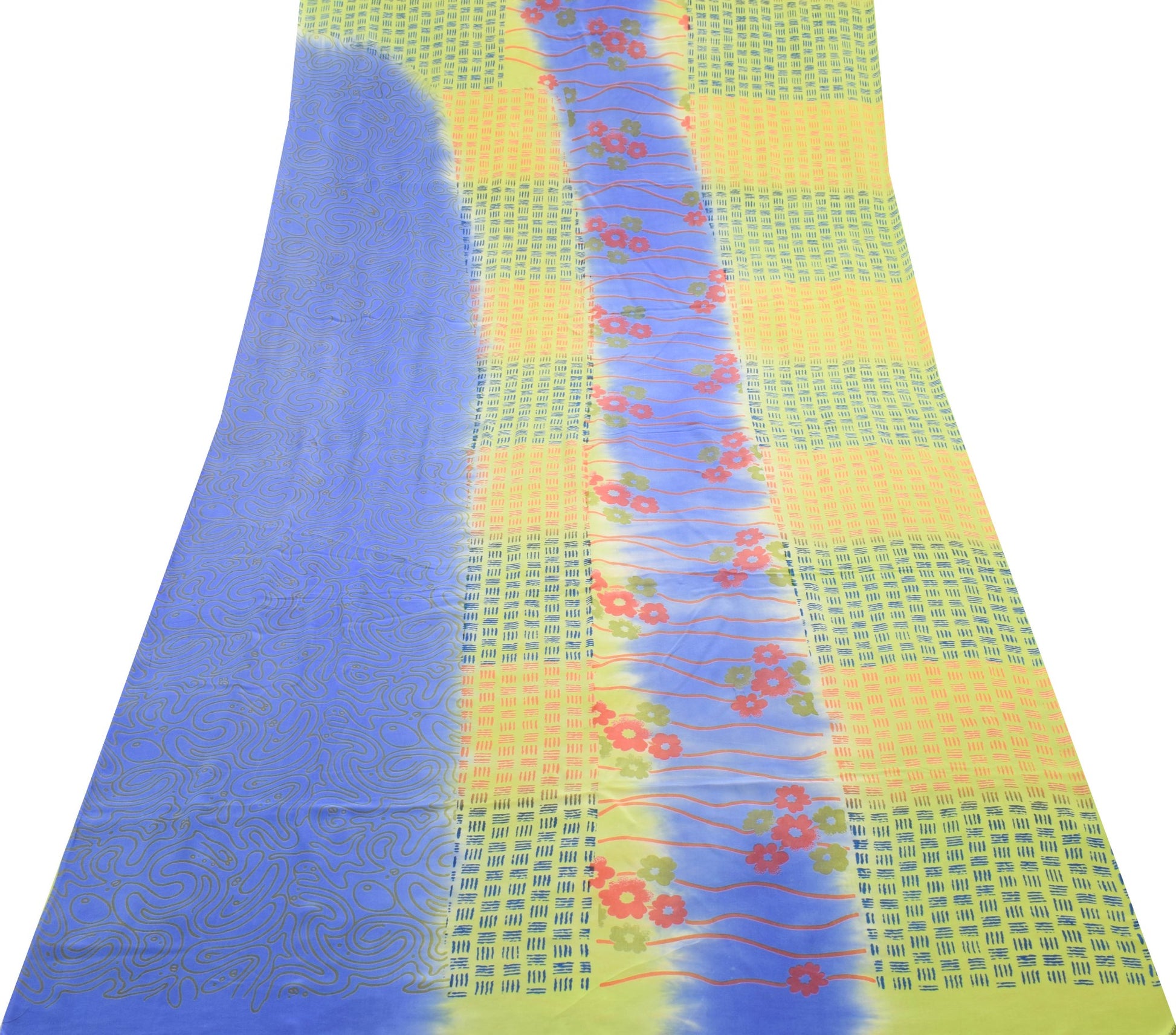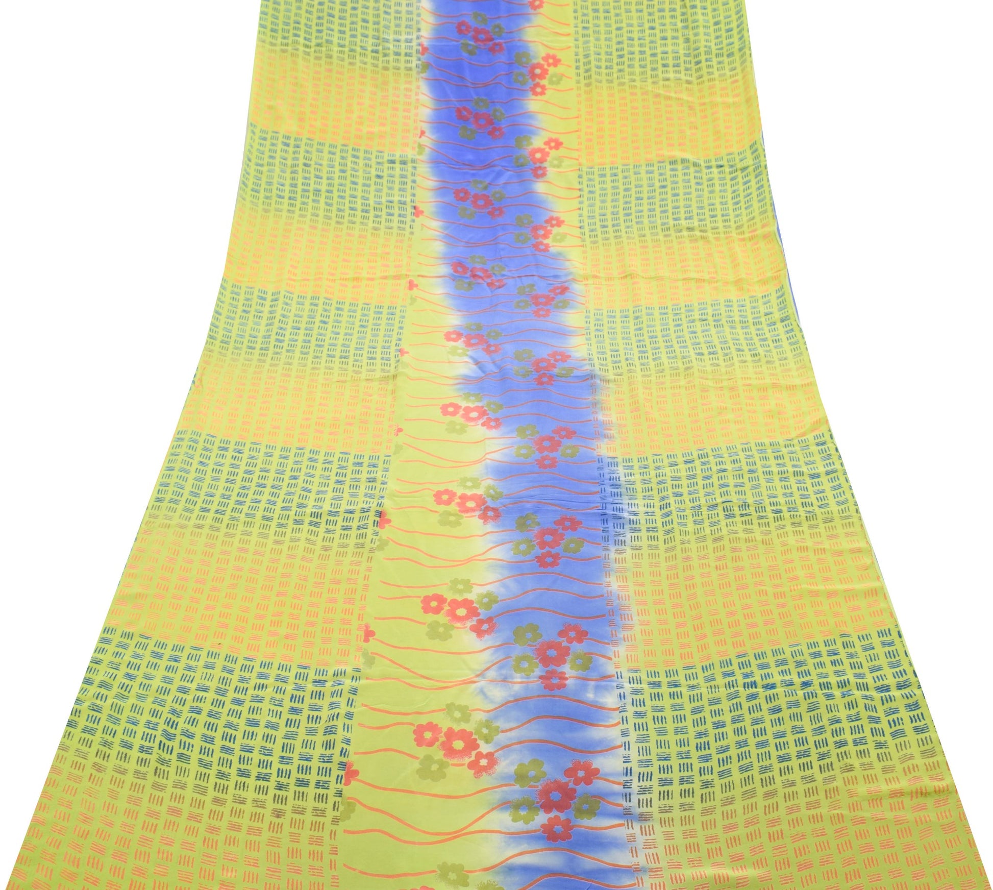 Sushila Vintage Green&Blue Saree 100%Pure Crepe Silk Printed Floral Soft Fabric