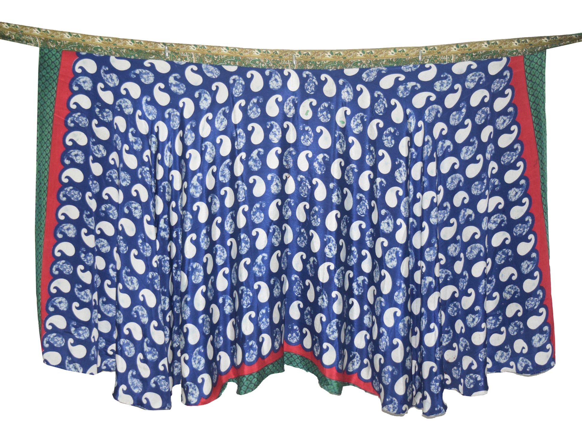 This reversible 2‑Layer Magic Wrap Skirt is crafted from pre‑owned vintage Art or Artificial Silk saree fabric, showcasing a charming green & blue paisley pattern for a perfect blend of style and sustainability. Ideal for beach outings, casual wear, or versatile styling, these skirts are lightweight, comfortable, and uniquely patterned. The vibrant designs and flowing fabric make them ideal for pairing with shirts, T‑shirts, or Kurtis. These skirts can be styled in multiple ways, offering endless possibilities for fashion enthusiasts. For styling ideas, simply search for "magic wrap skirt tutorial" on YouTube.