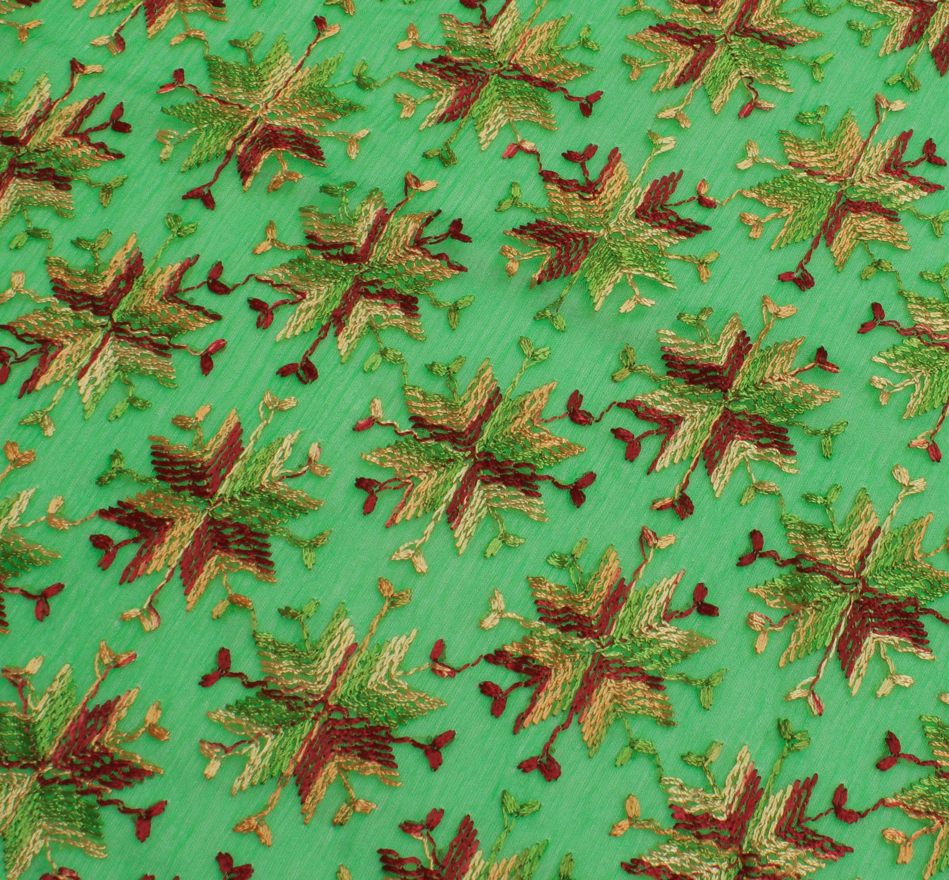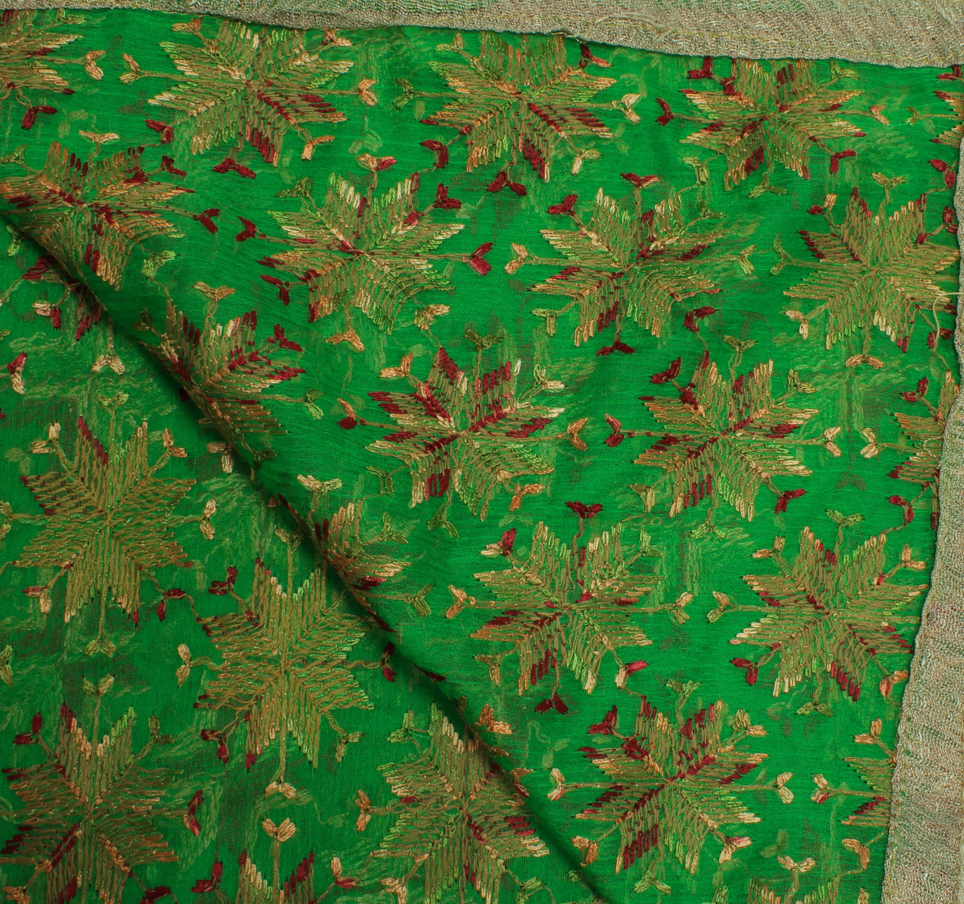 Sushila Vintage Green Dupatta Blend Chiffon Silk Phulkari Embroidered Long Stole